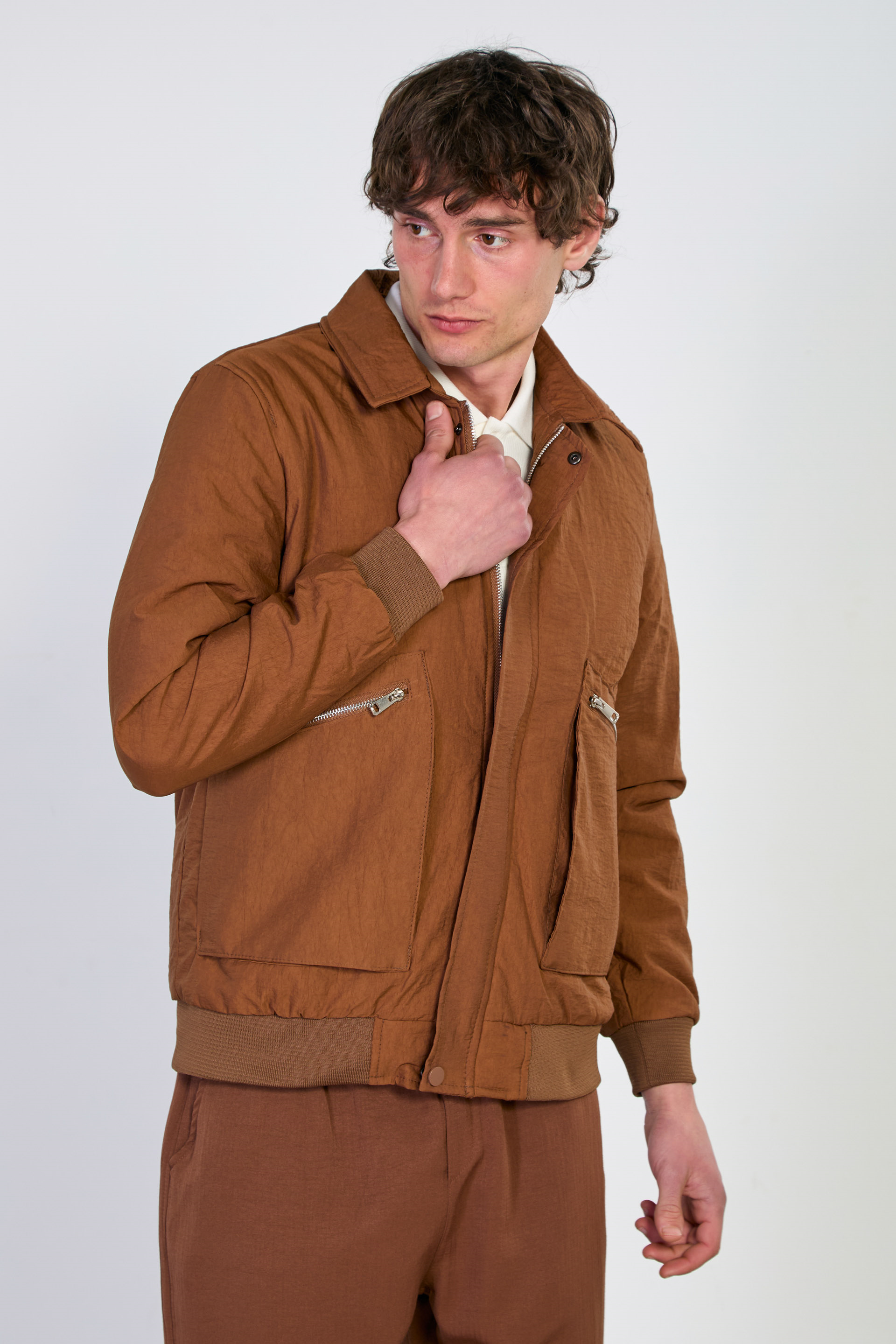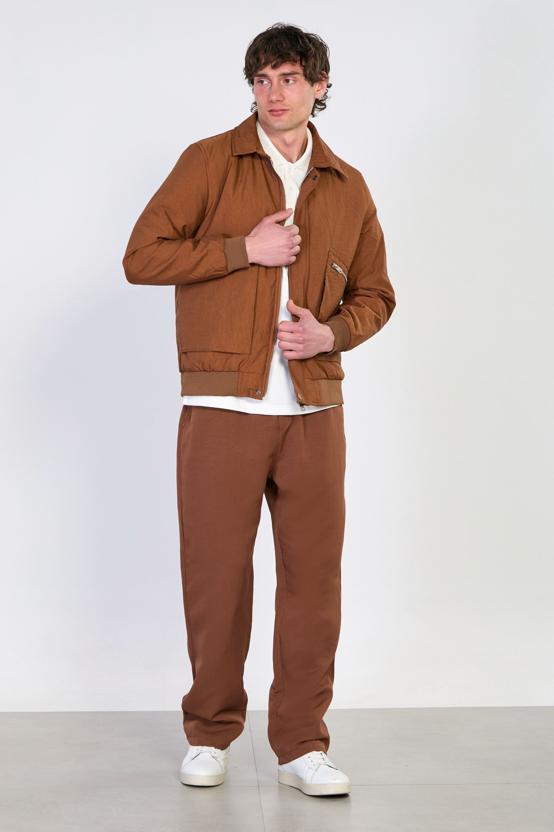Erkek Torba Cep Fermuarlı Mont - Kahve