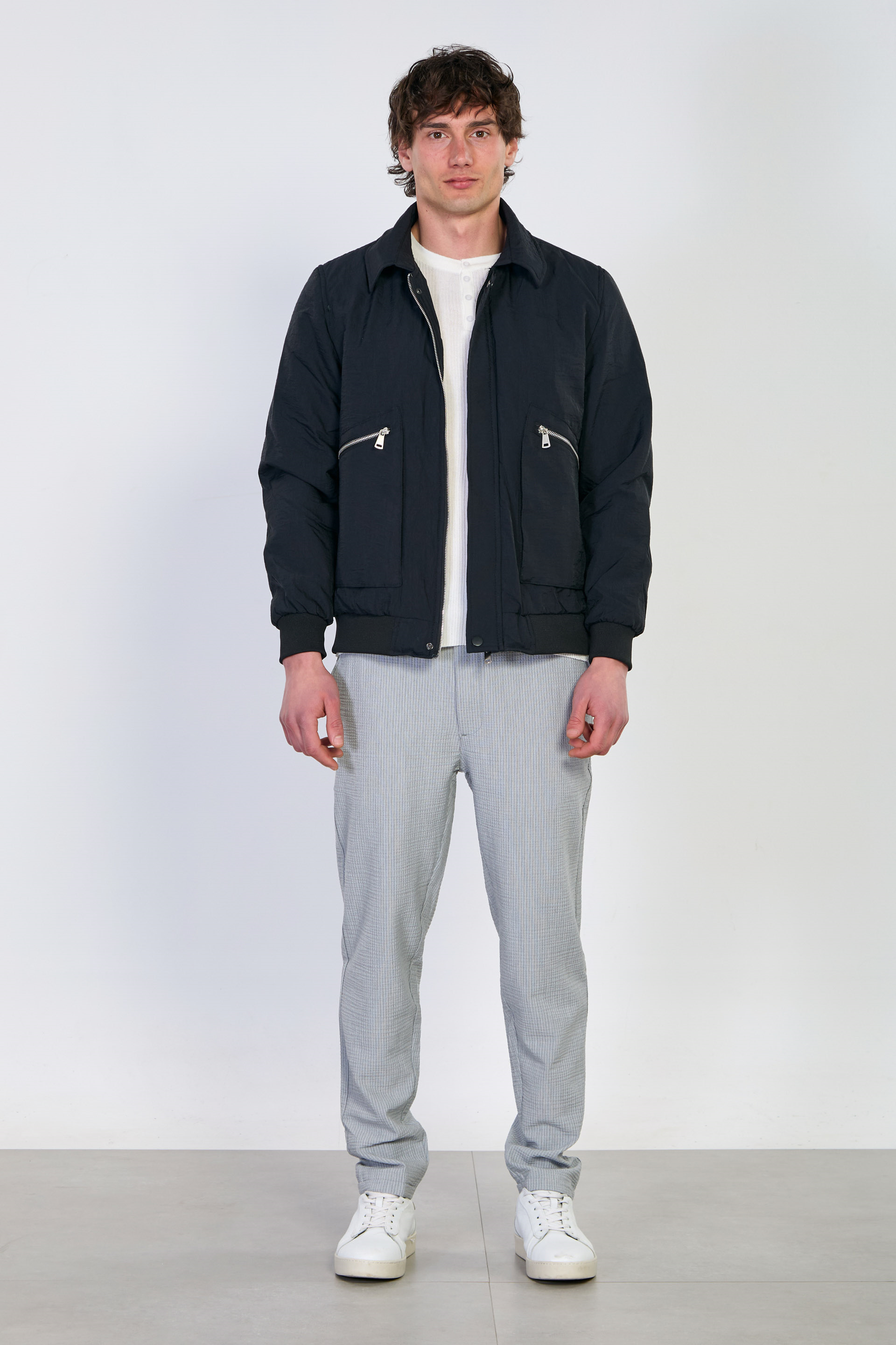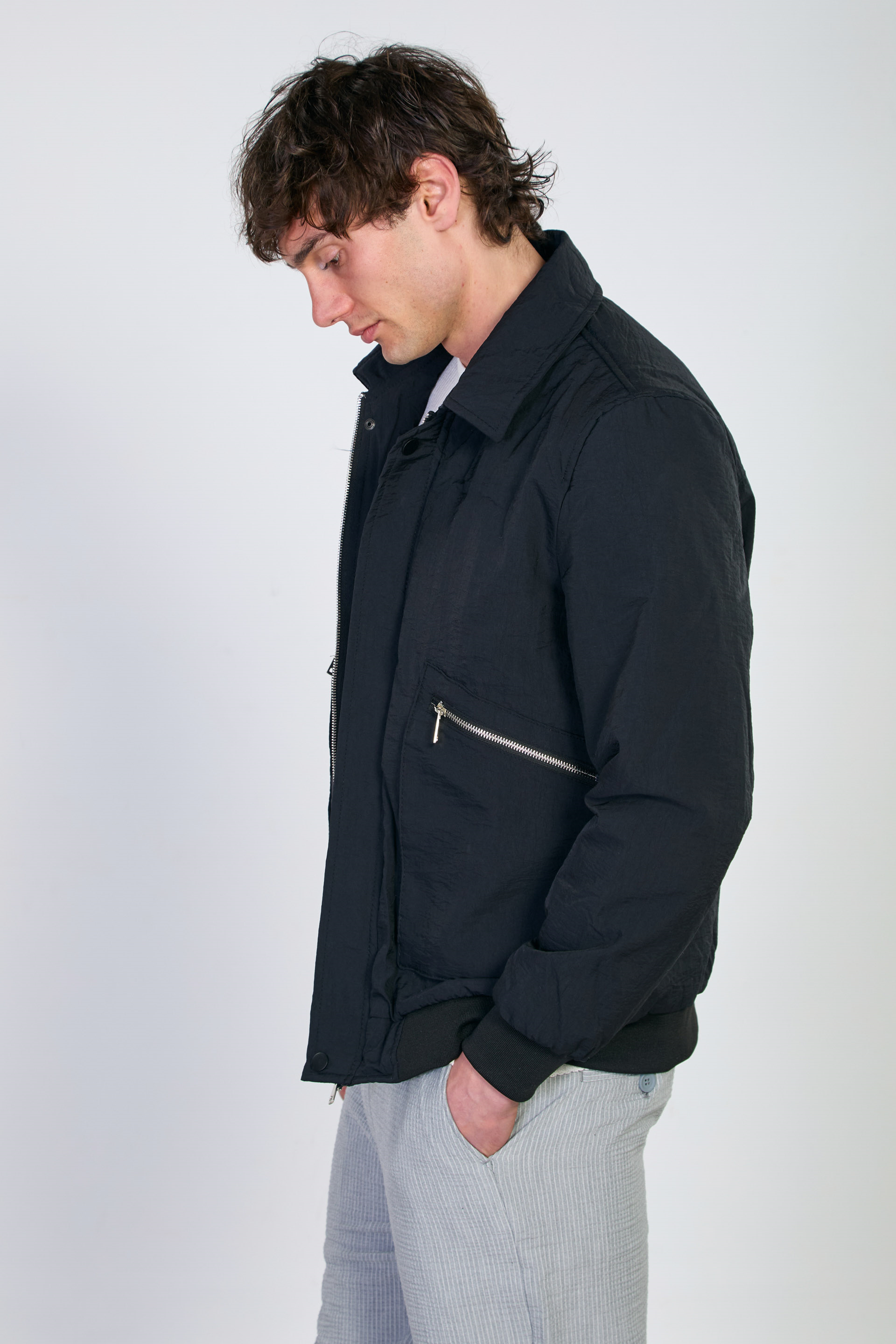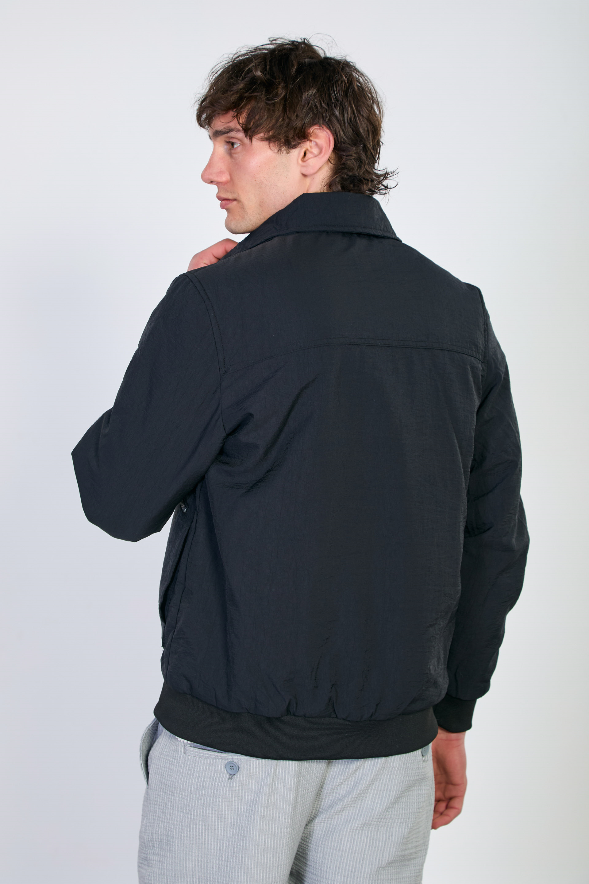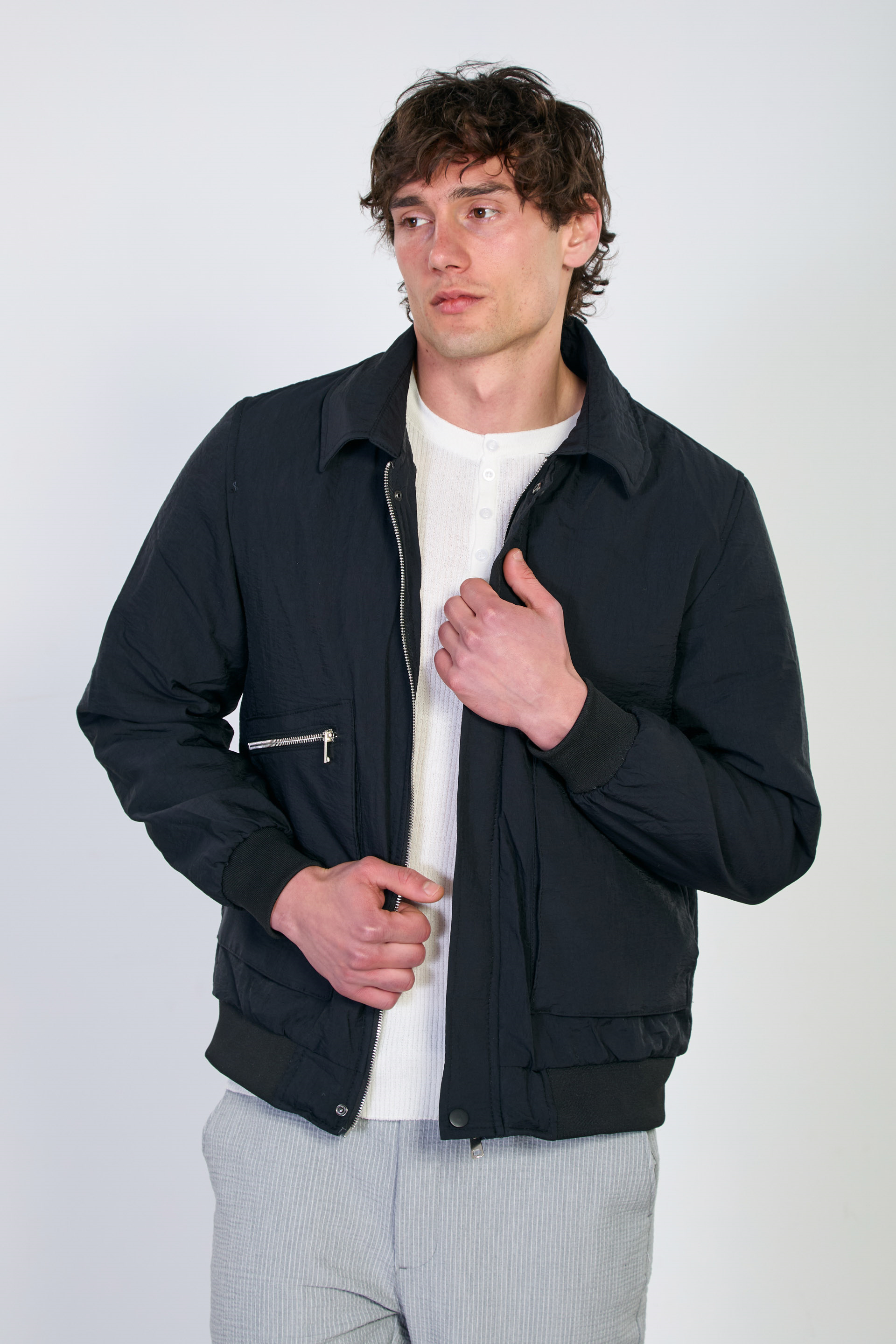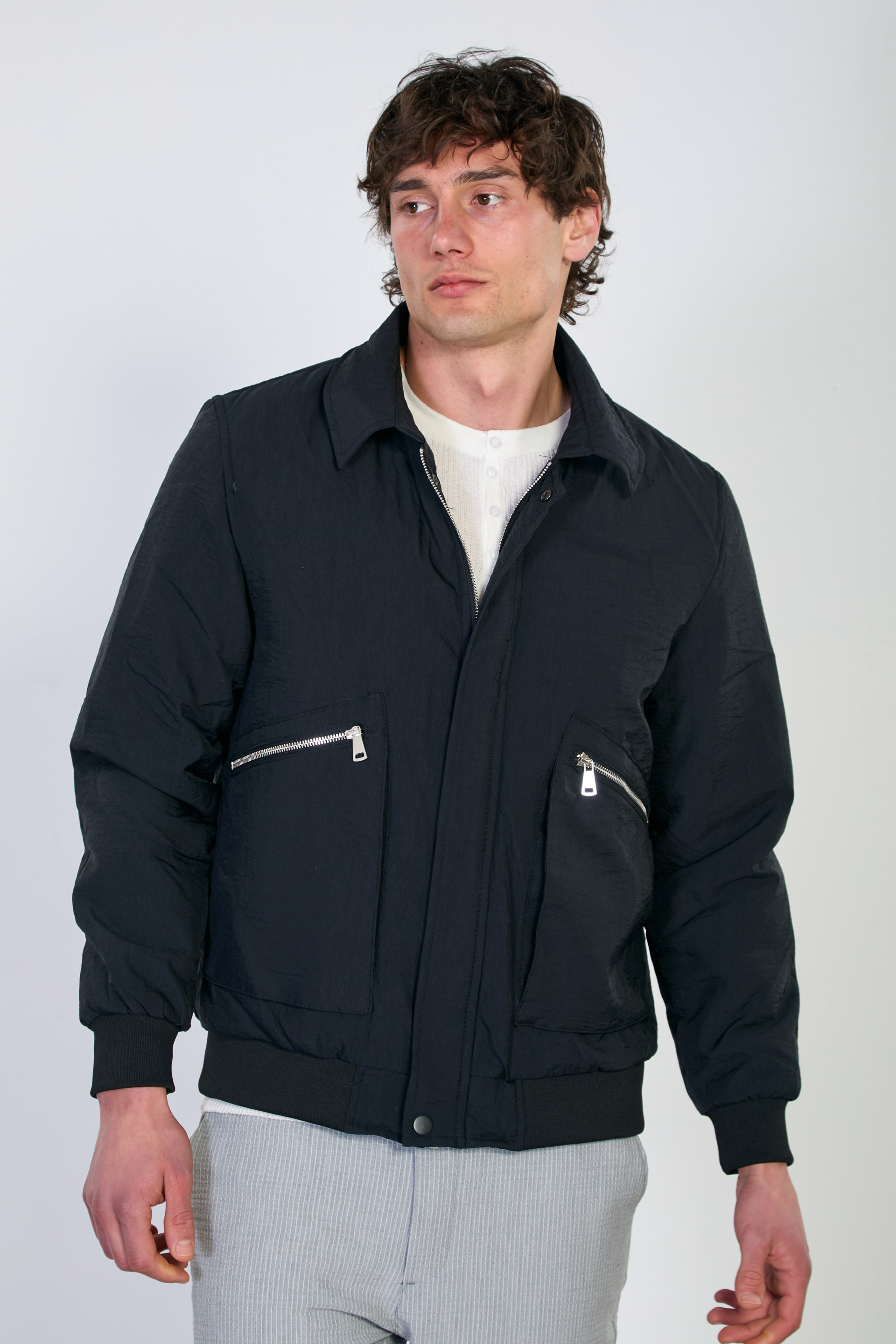 Erkek Torba Cep Fermuarlı Mont - Siyah