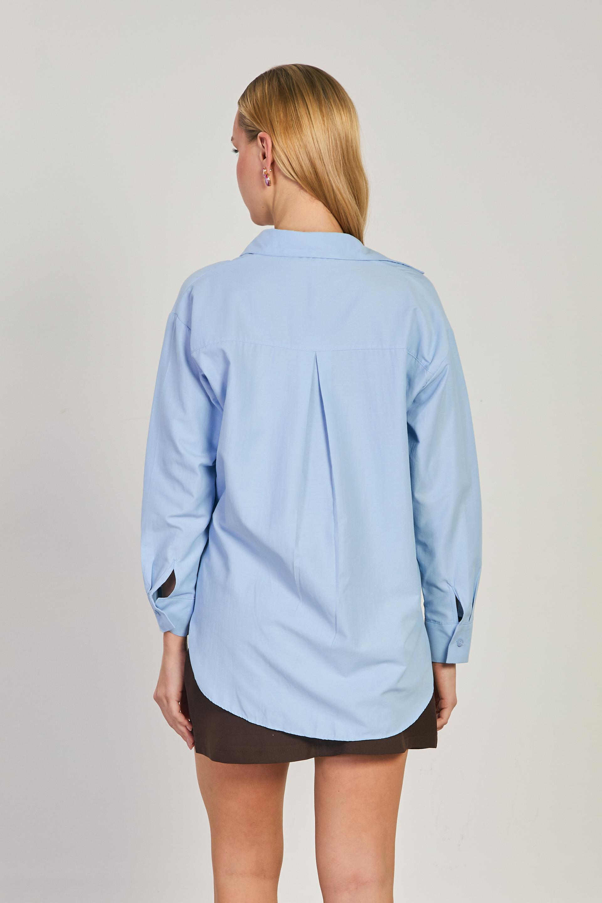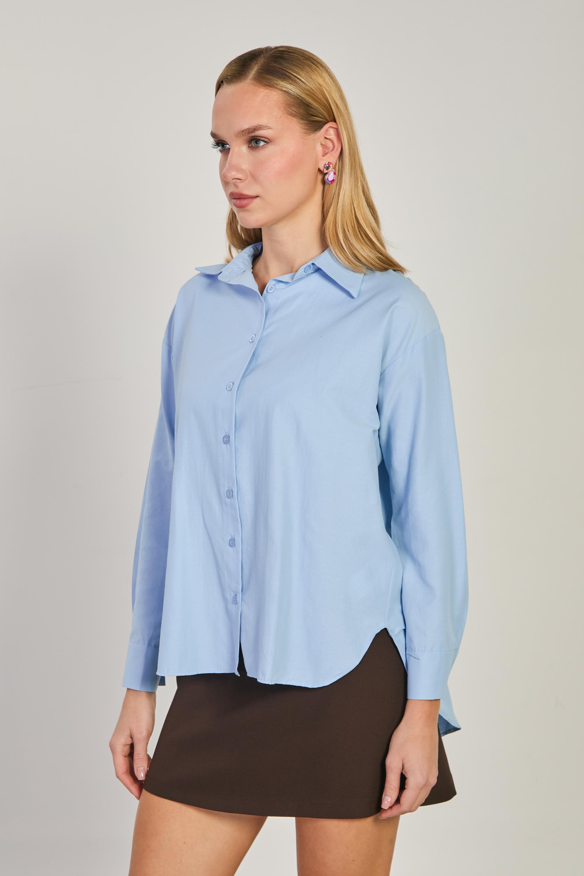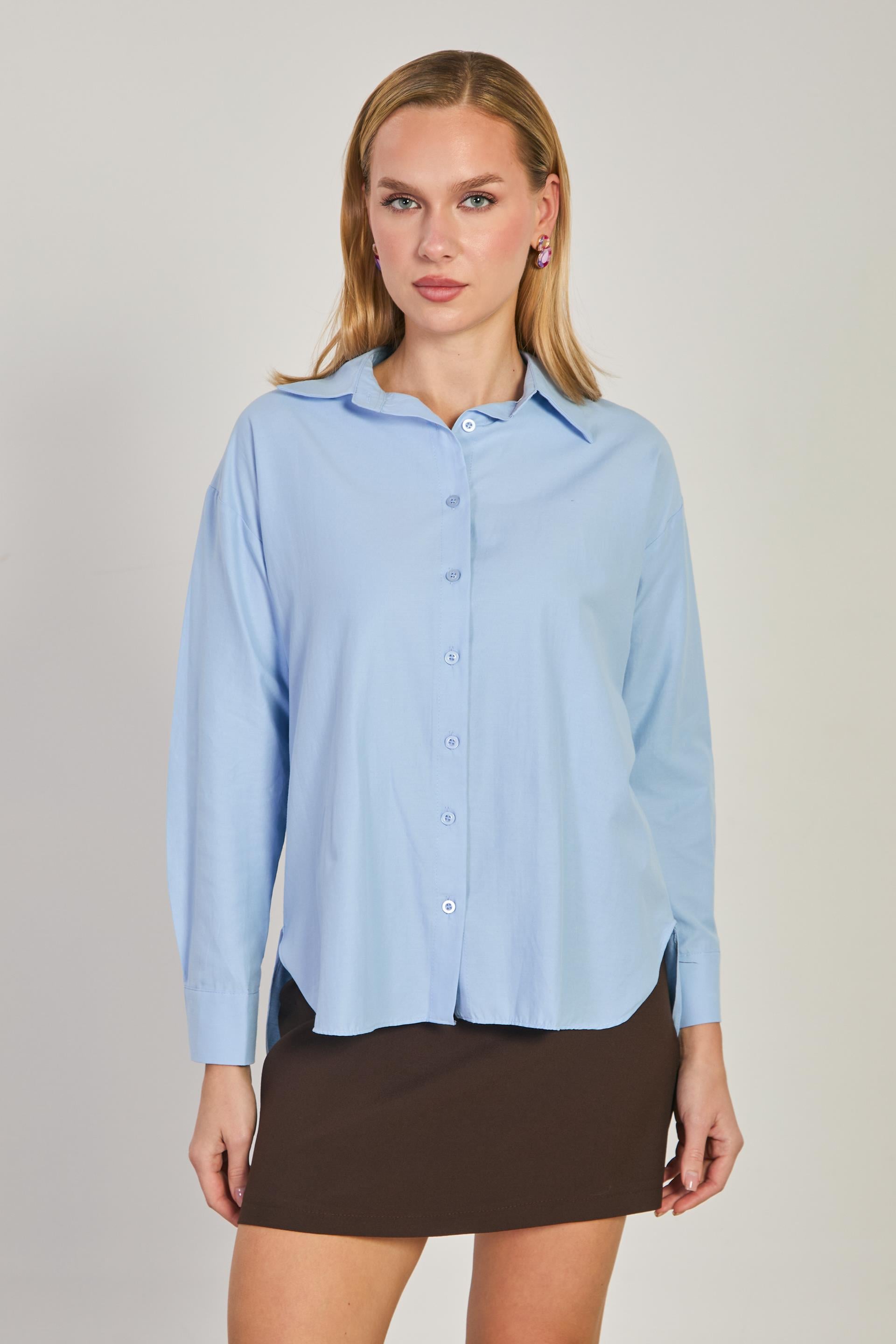 Kadın Uzun Kol Oversize Gömlek - Bebe Mavi
