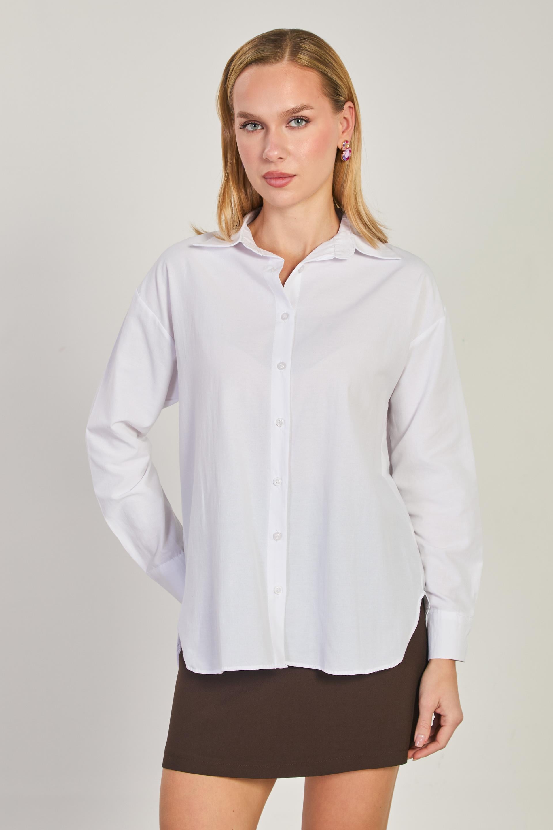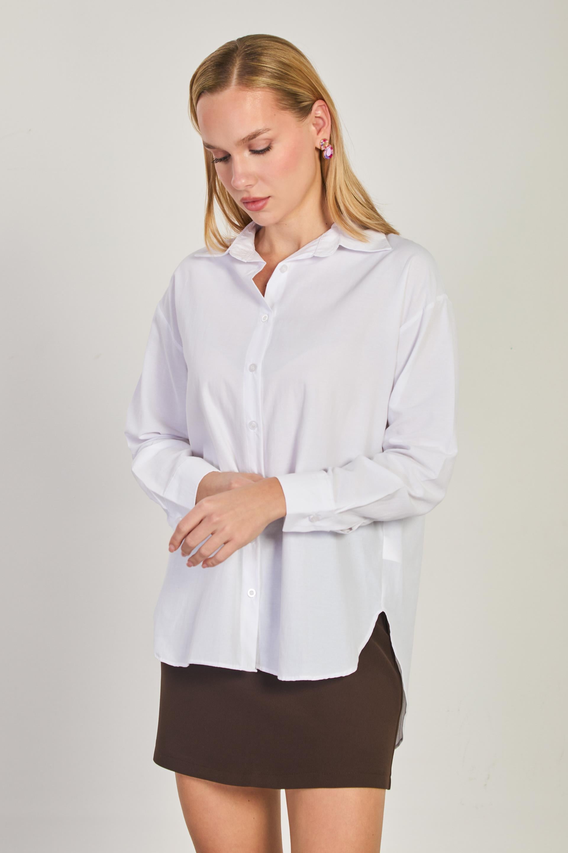 Kadın Uzun Kol Oversize Gömlek - Beyaz