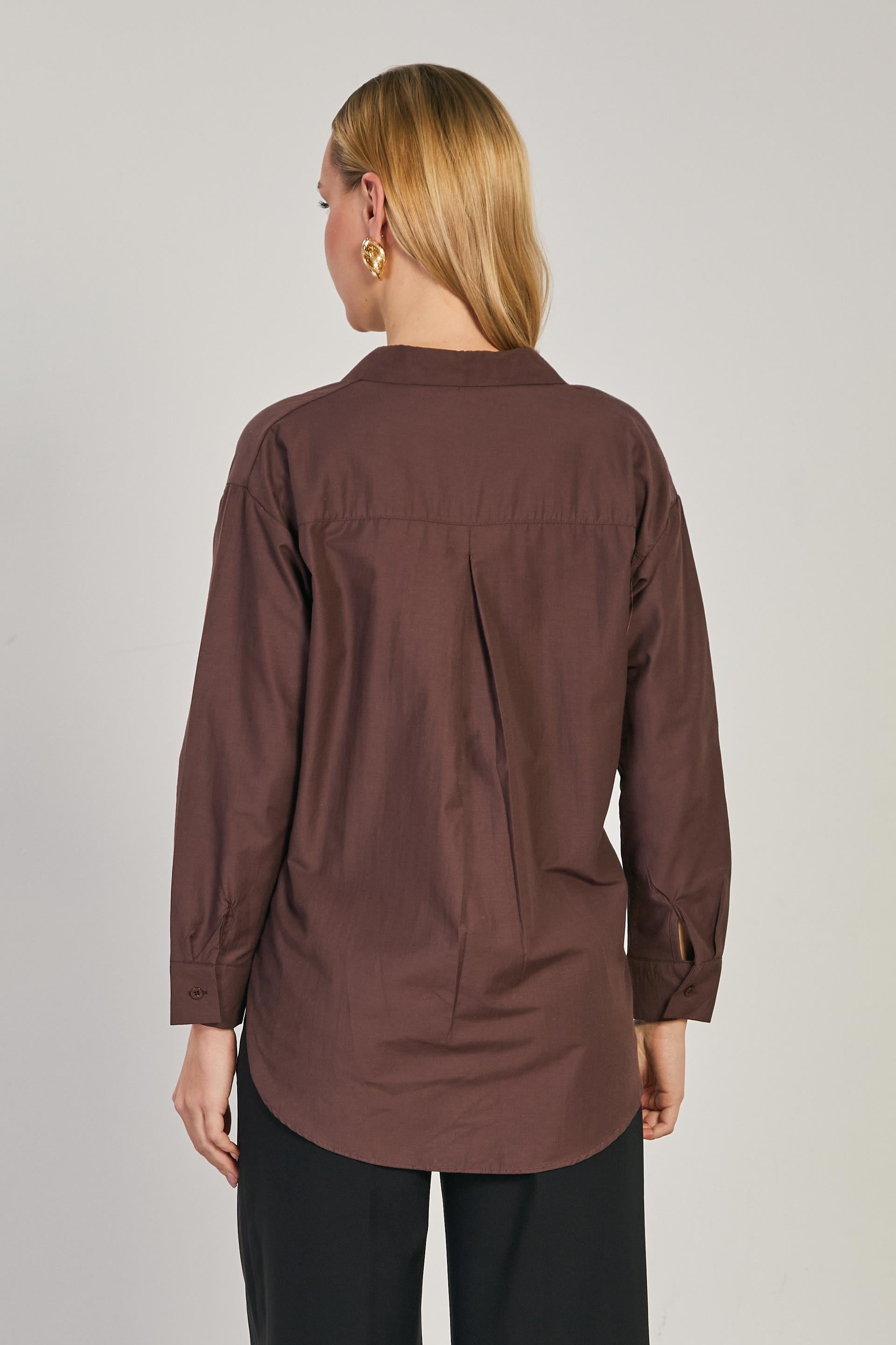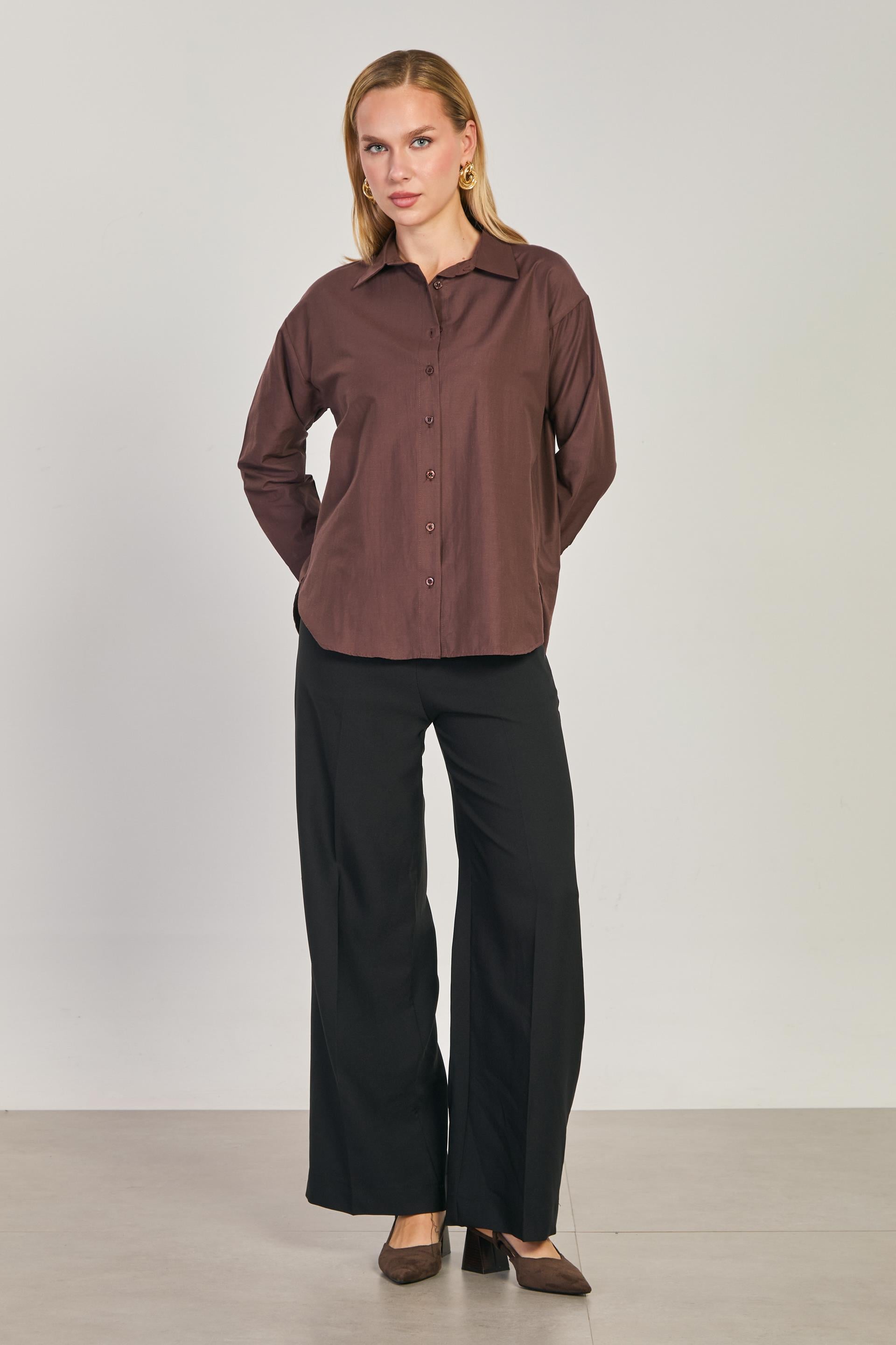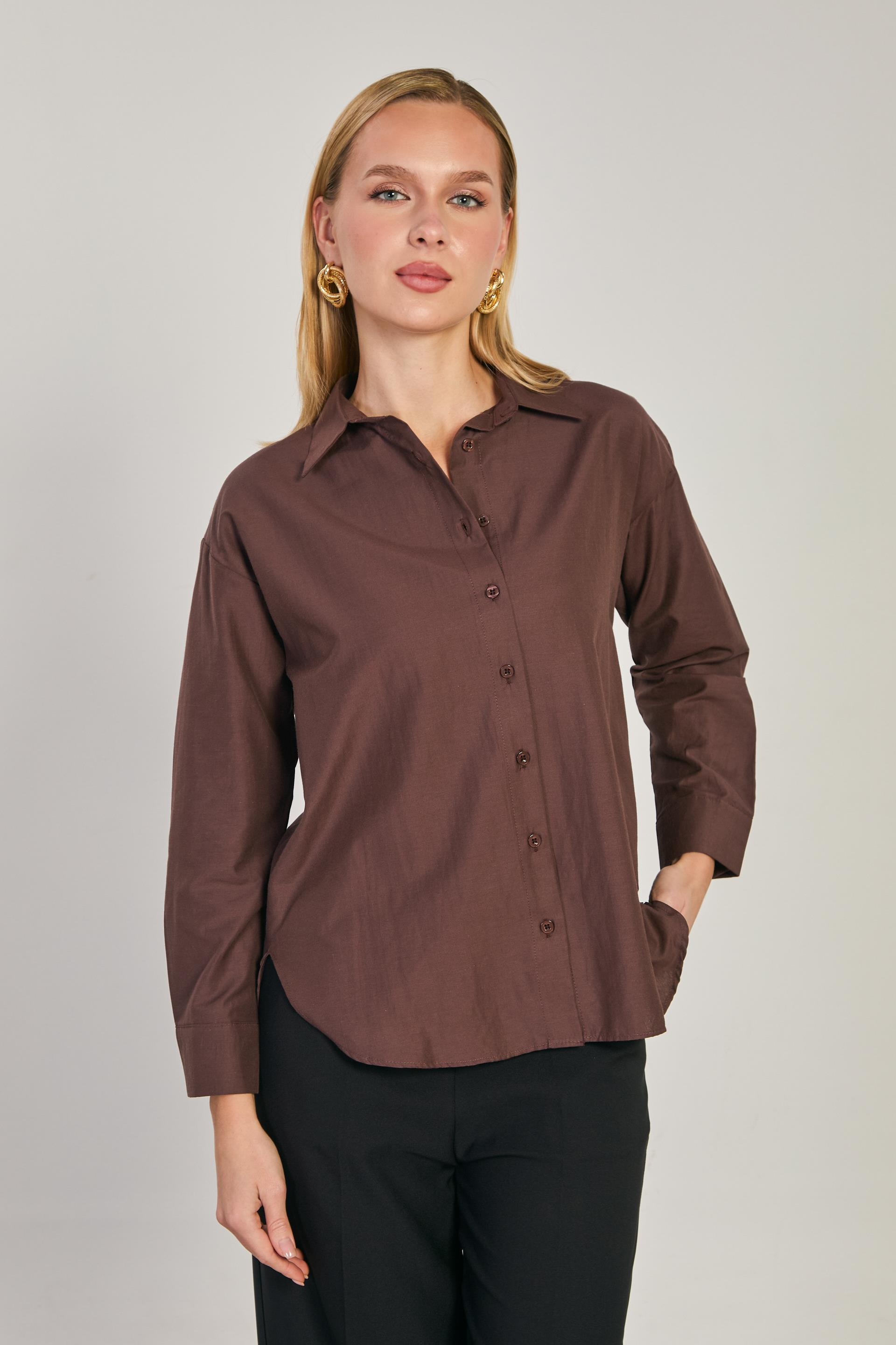 Kadın Uzun Kol Oversize Gömlek - Kahve