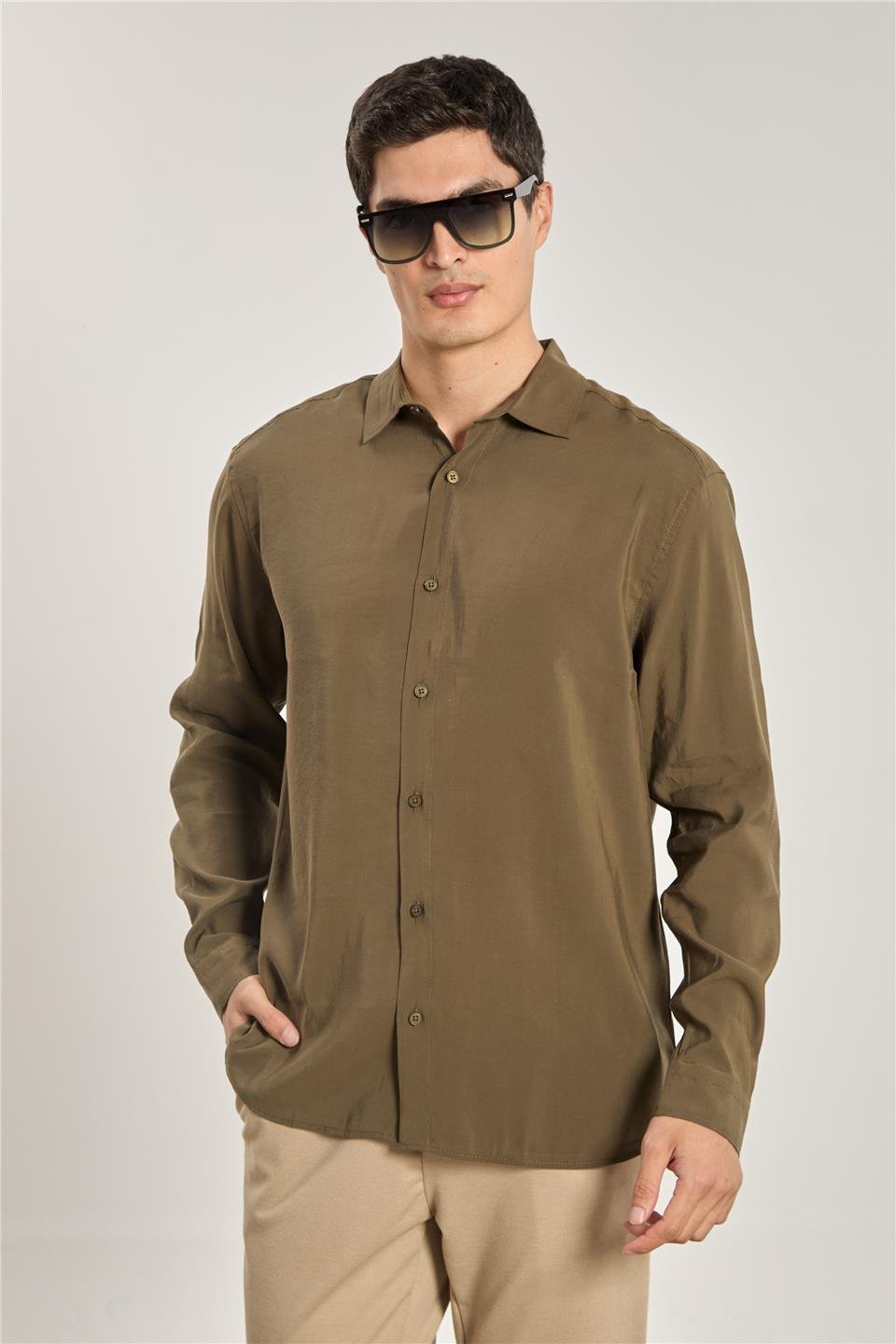 Erkek Uzun Kol Oversize Modal Gömlek - Haki