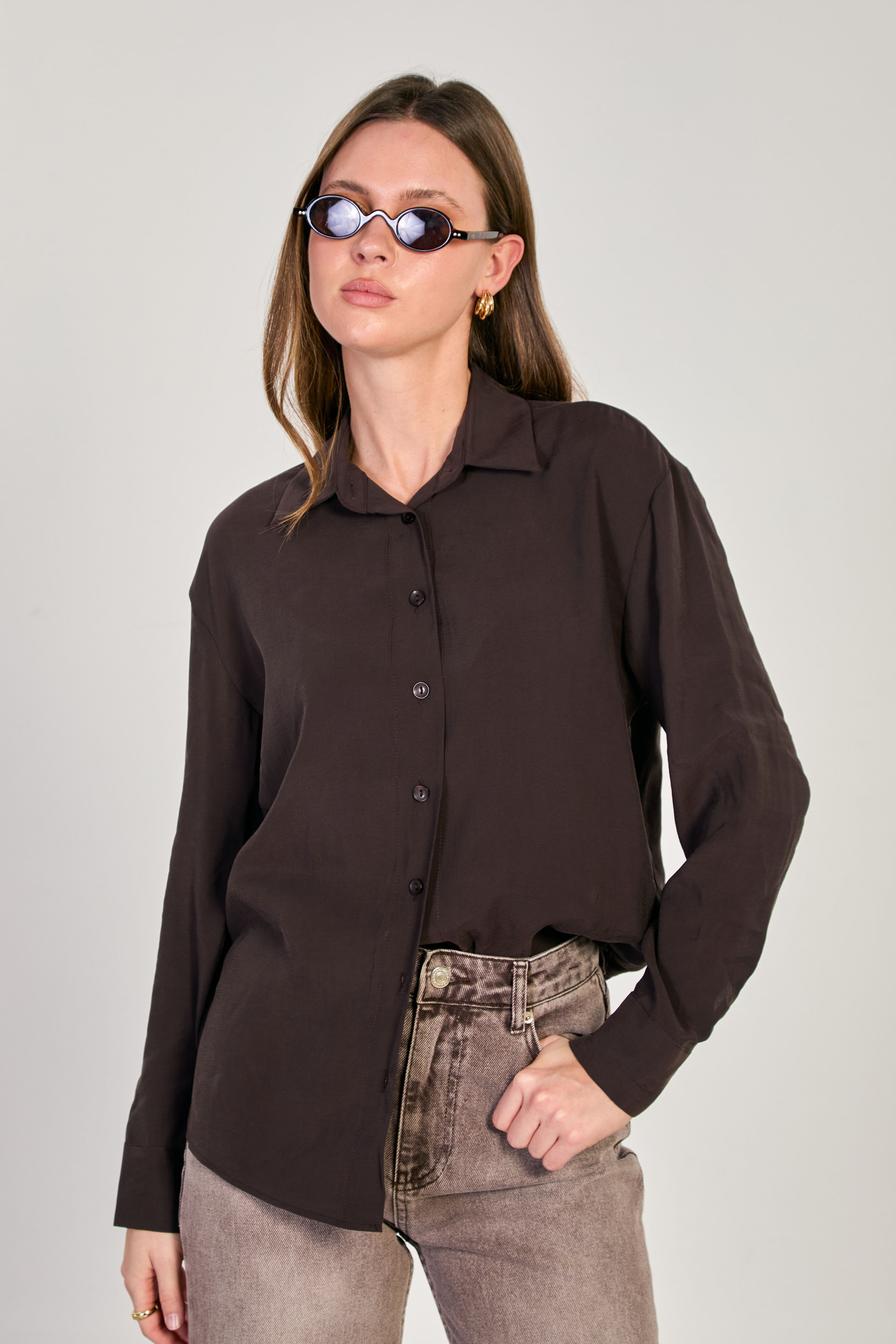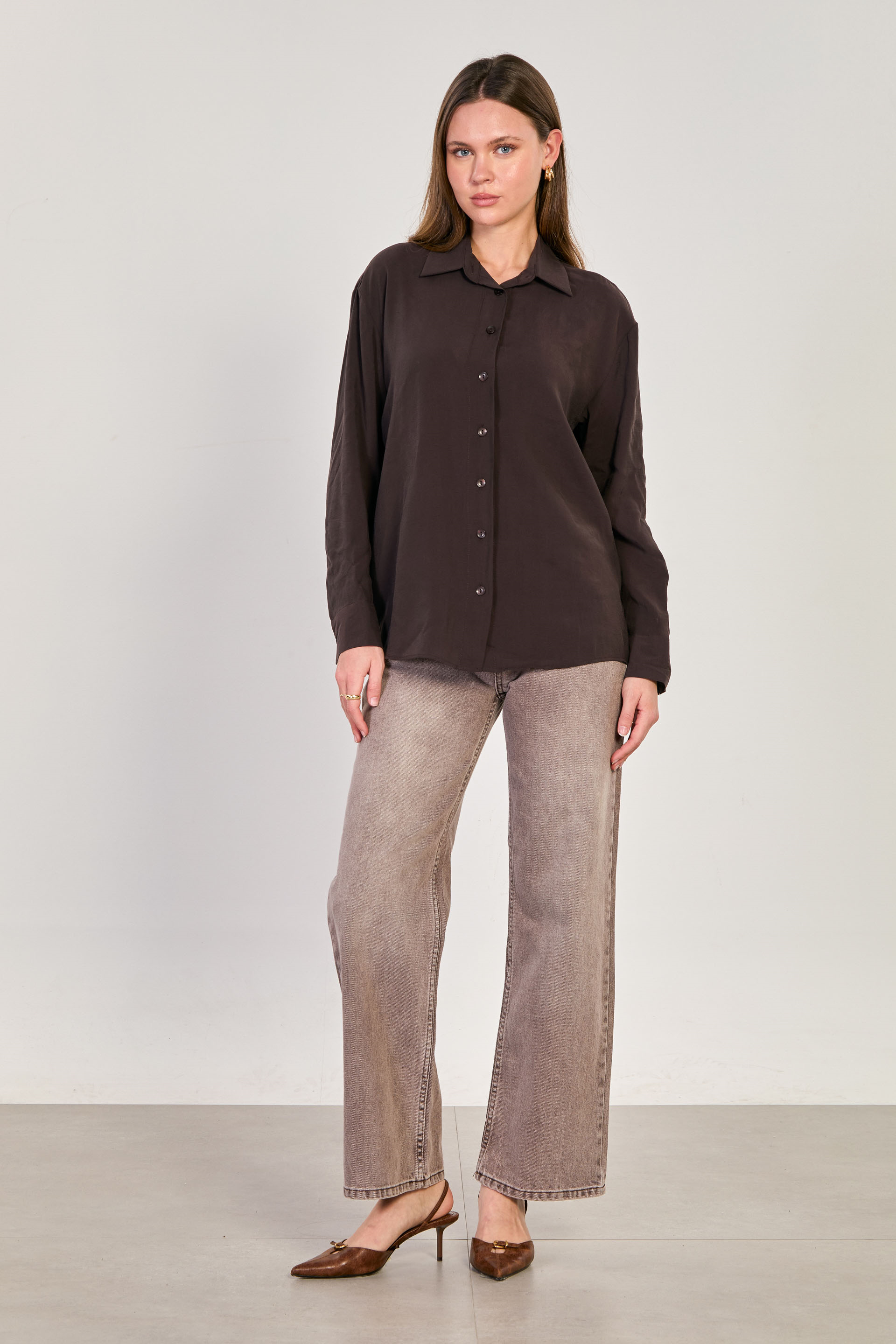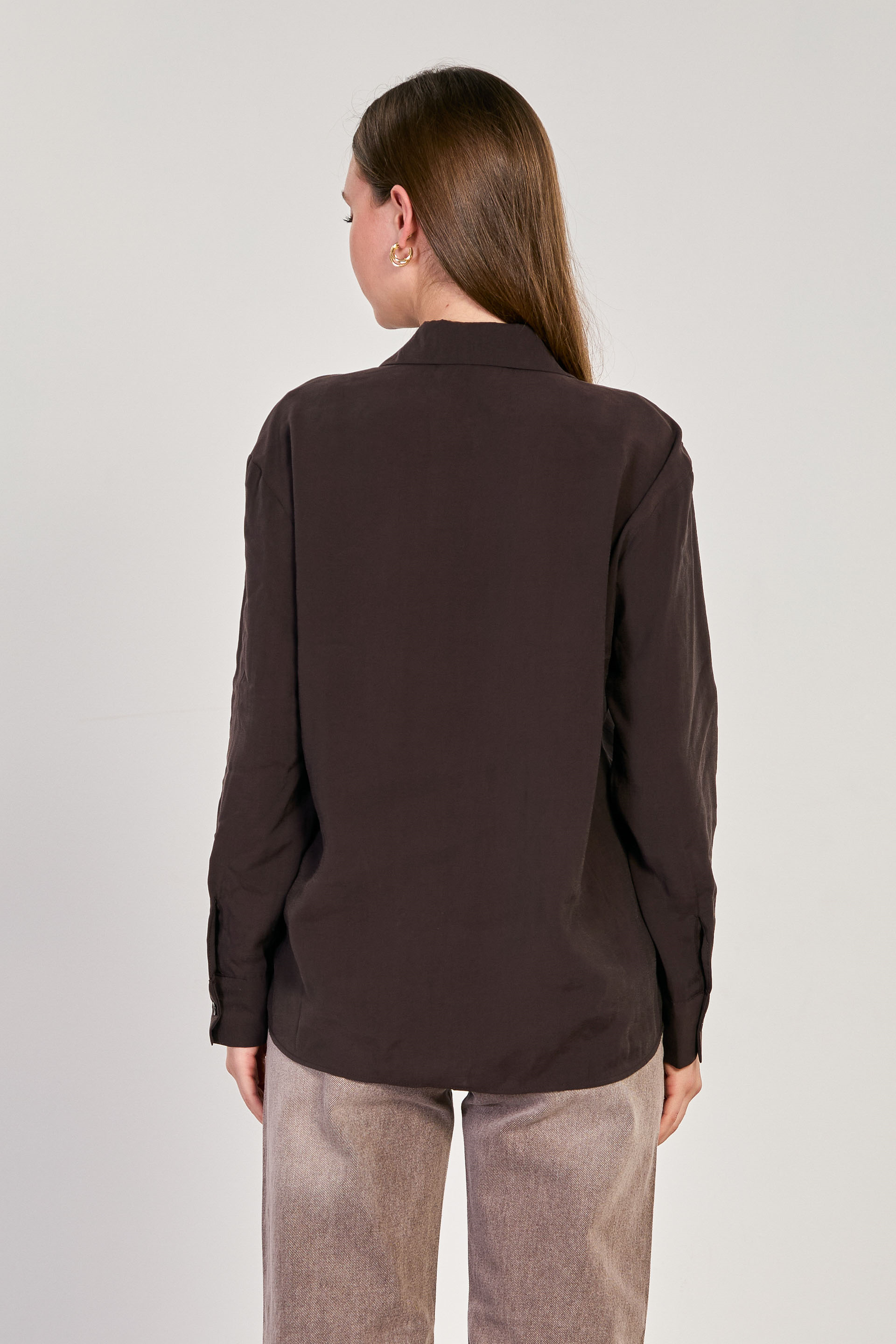 Kadın Uzun Kollu Cupra Gömlek - Kahve