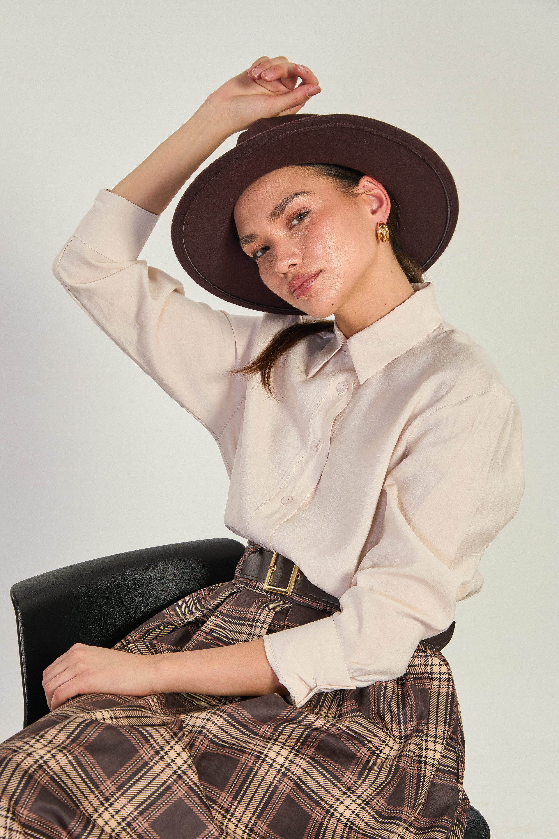Kadın Uzun Kollu Cupra Gömlek - Taş