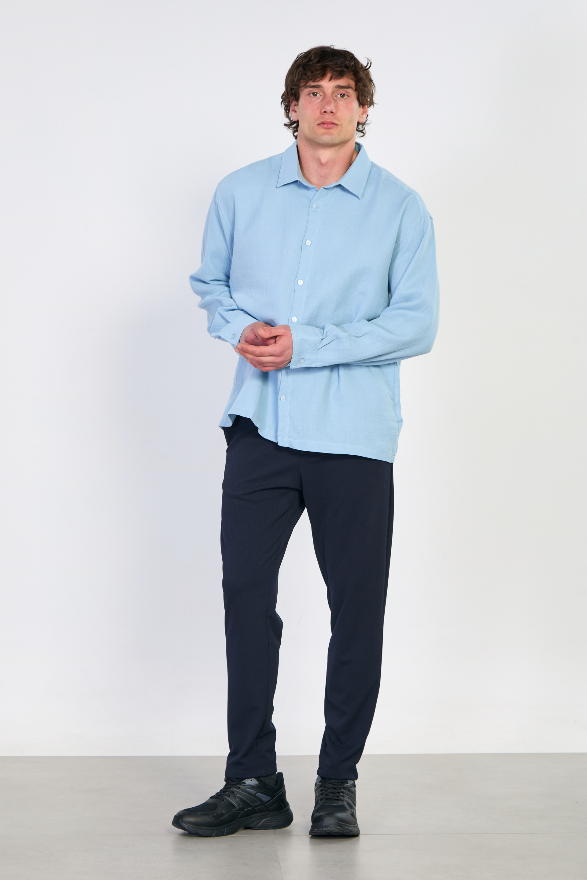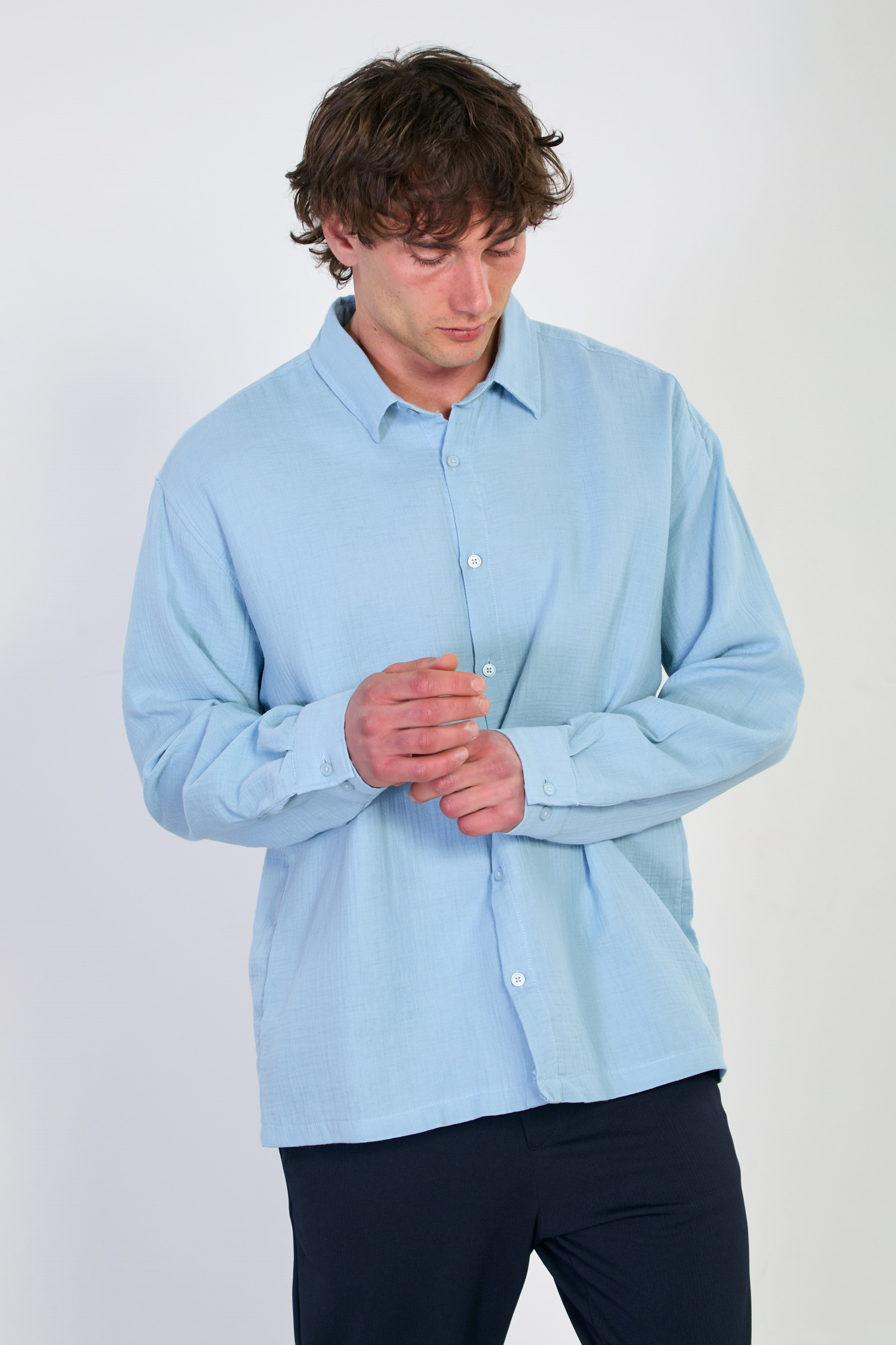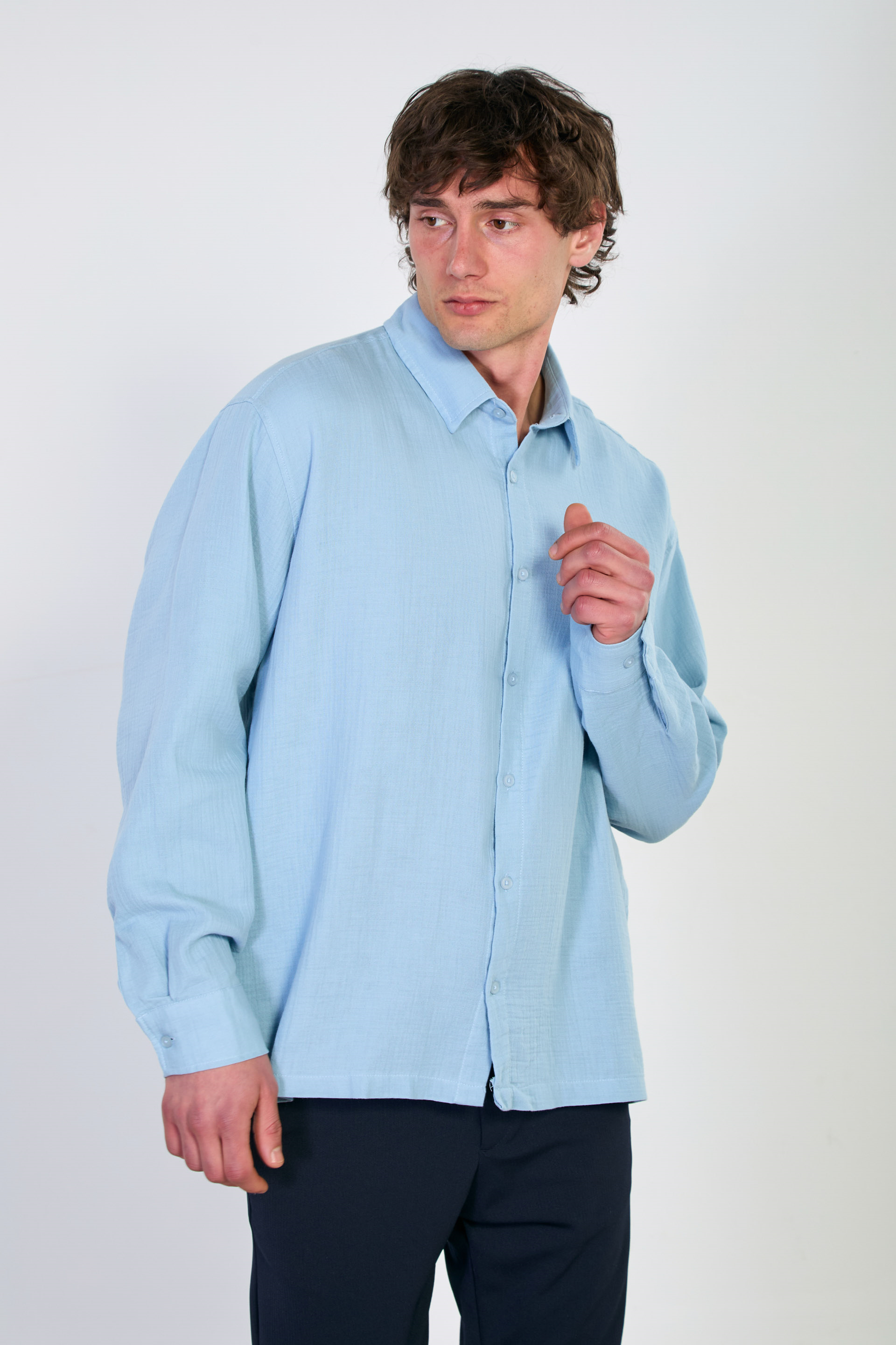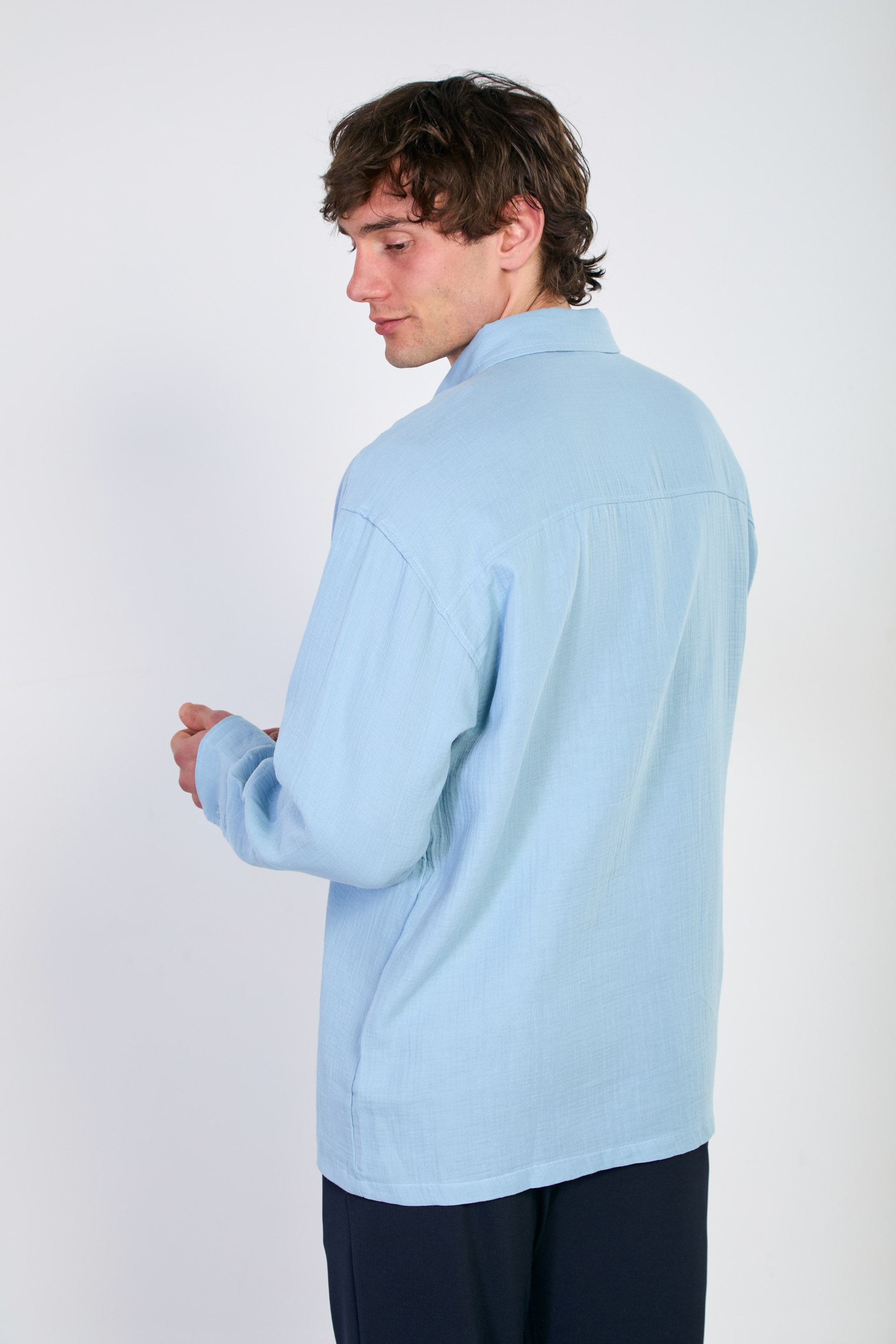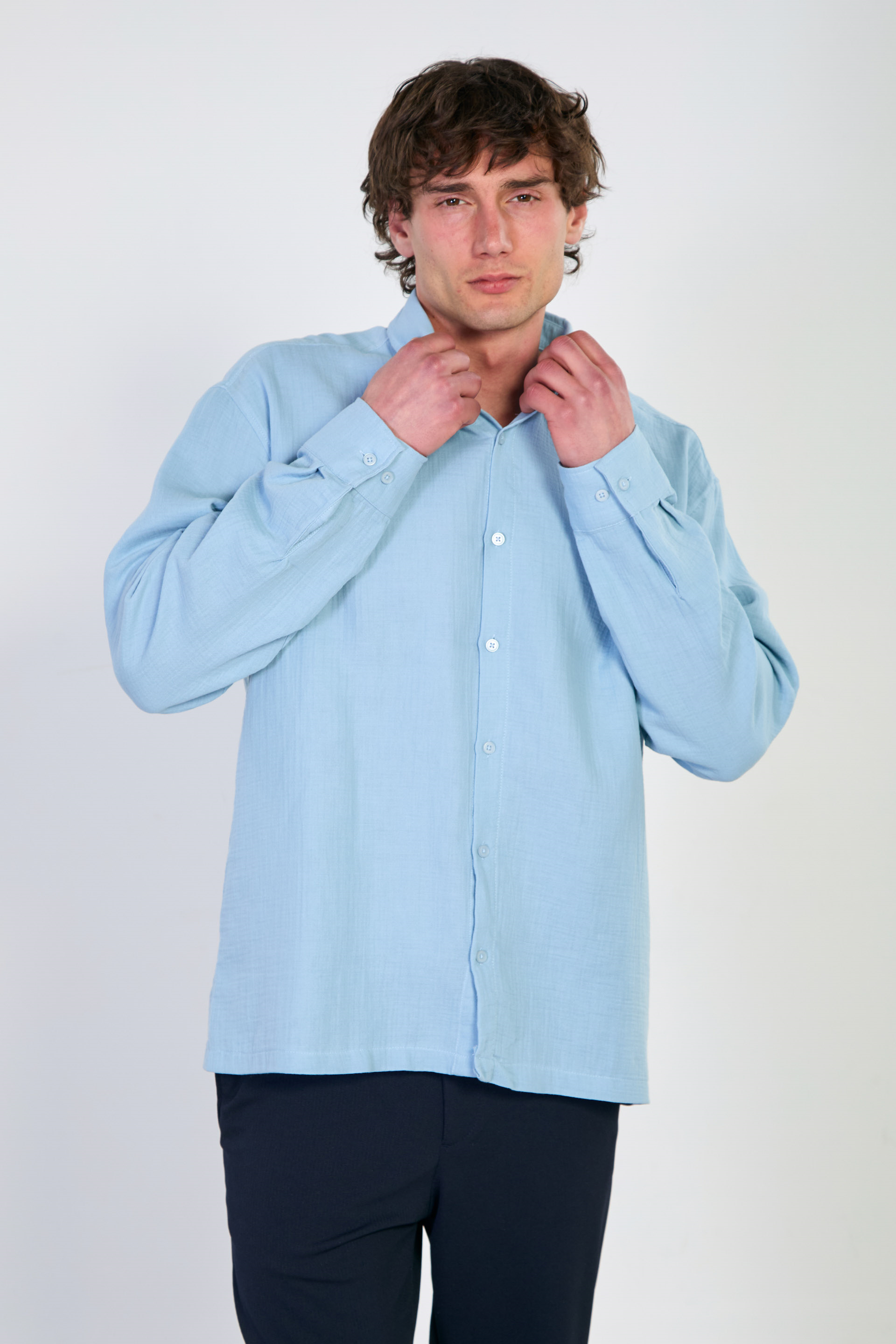 Erkek Uzun Kollu Müslin Gömlek - Mavi