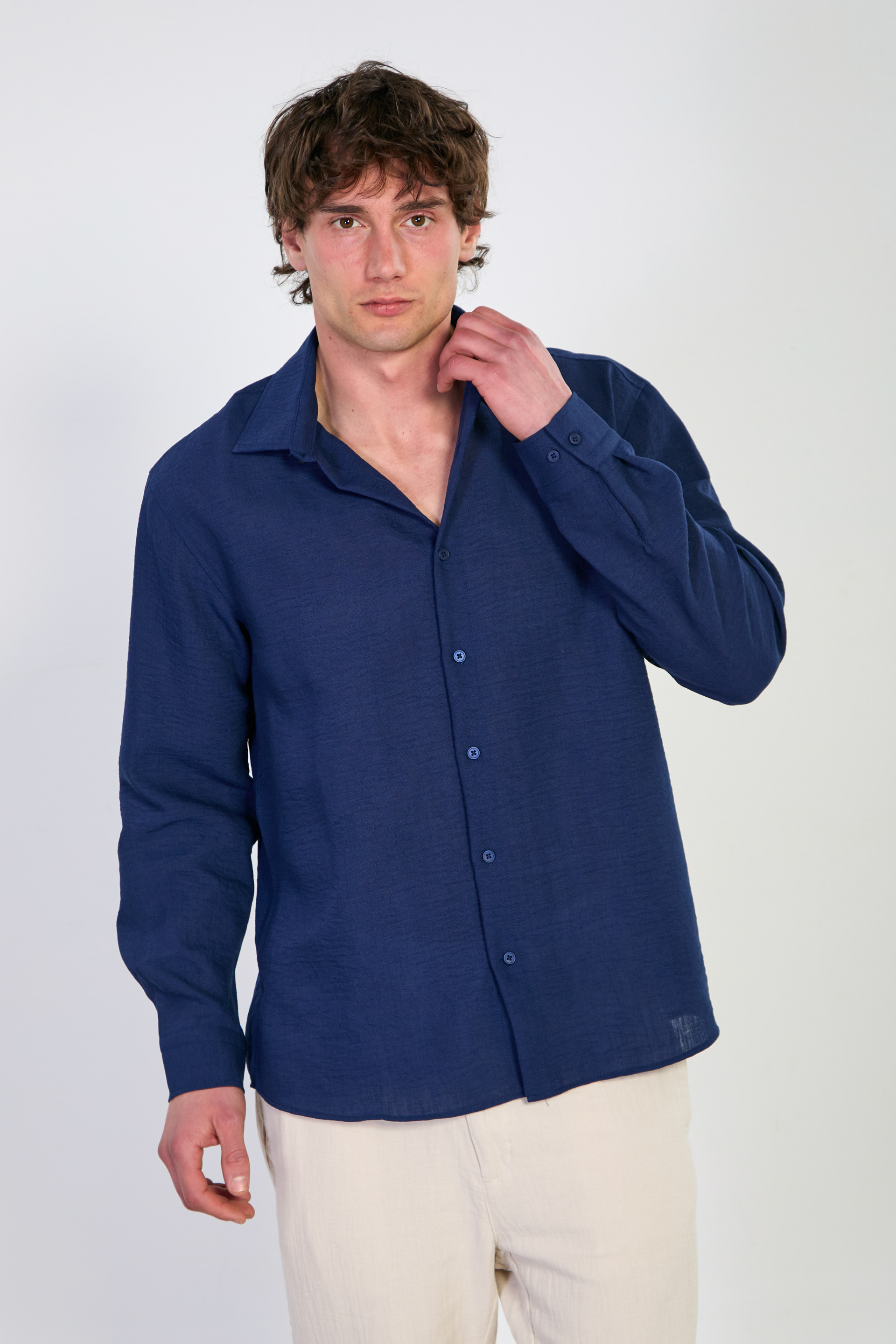 Erkek Uzun Kollu Regular Fit Gömlek - Lacivert
