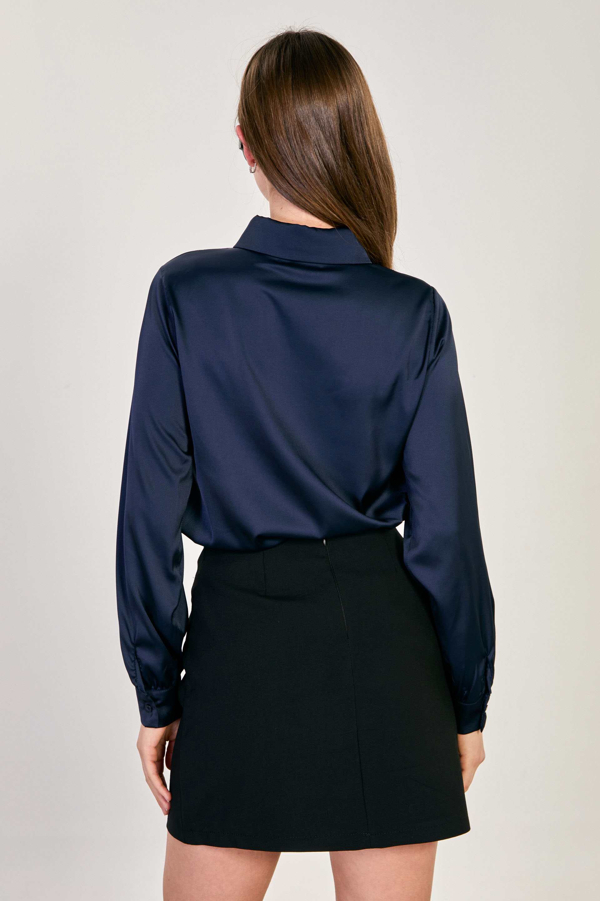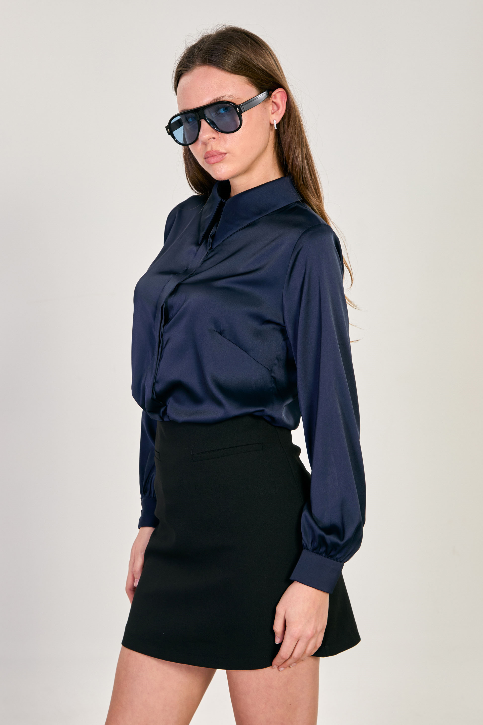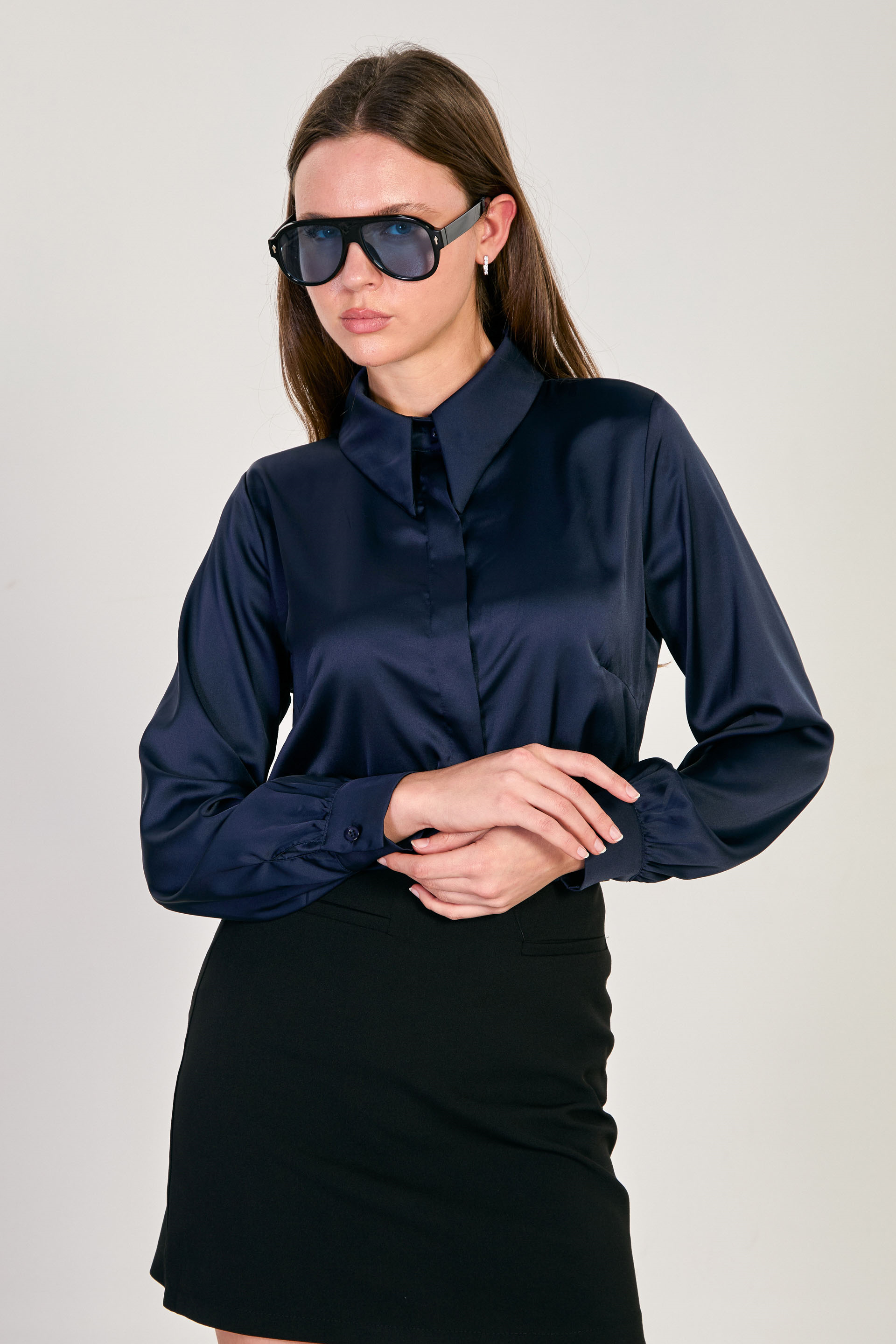 Kadın Uzun Kollu Saten Gömlek - Lacivert