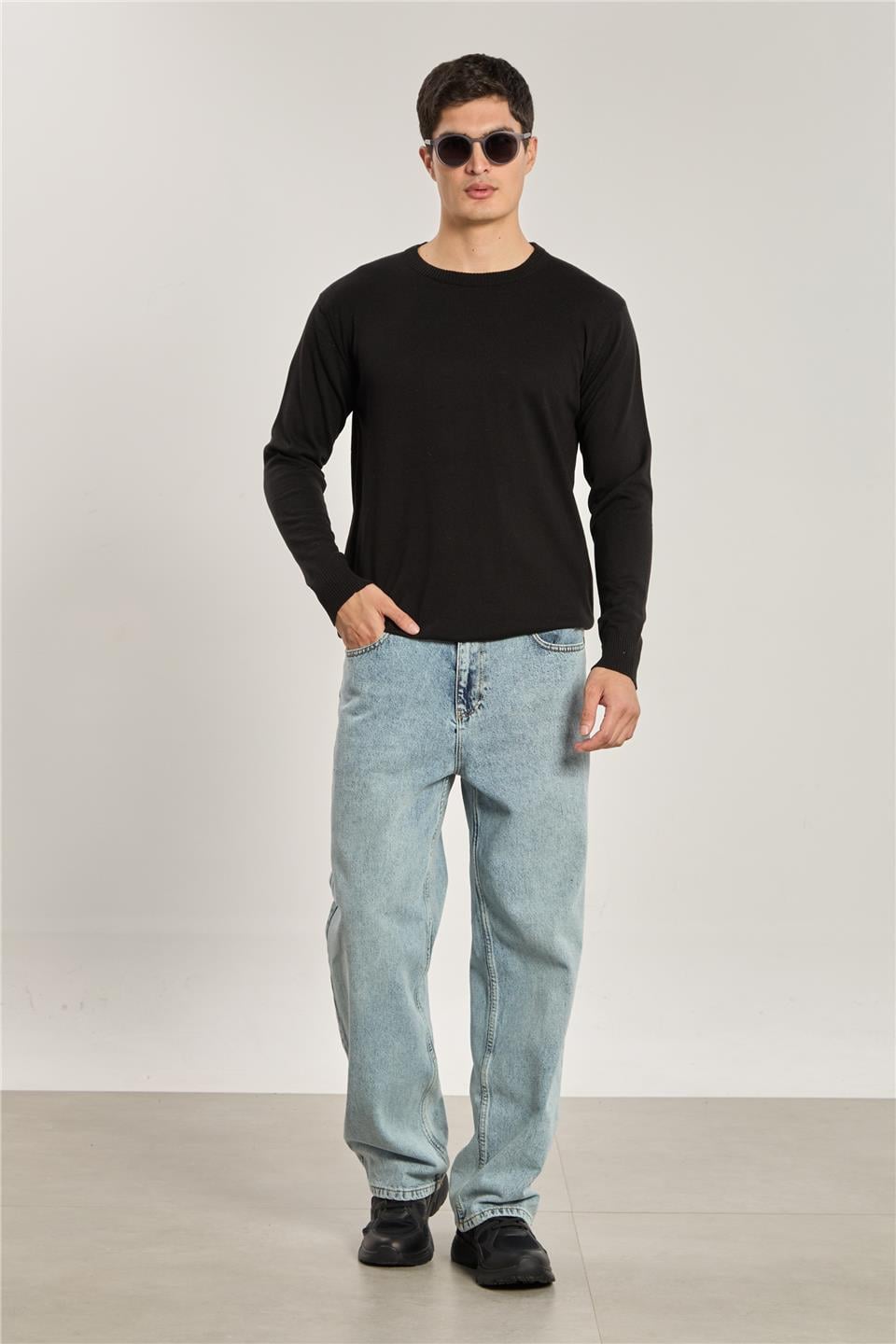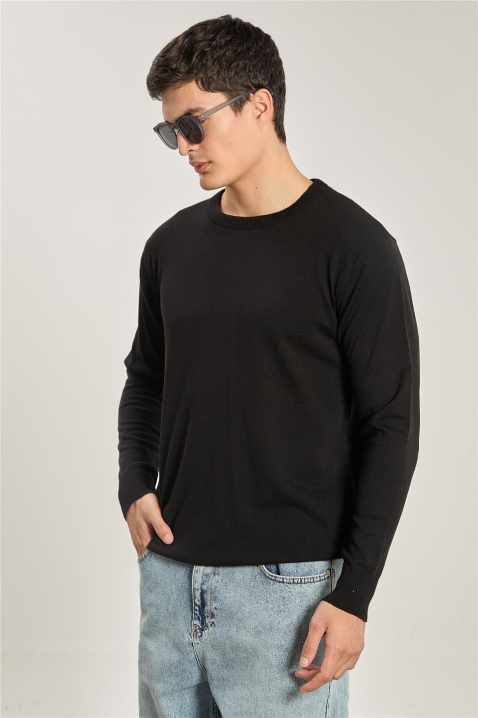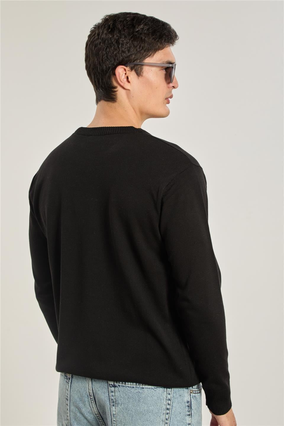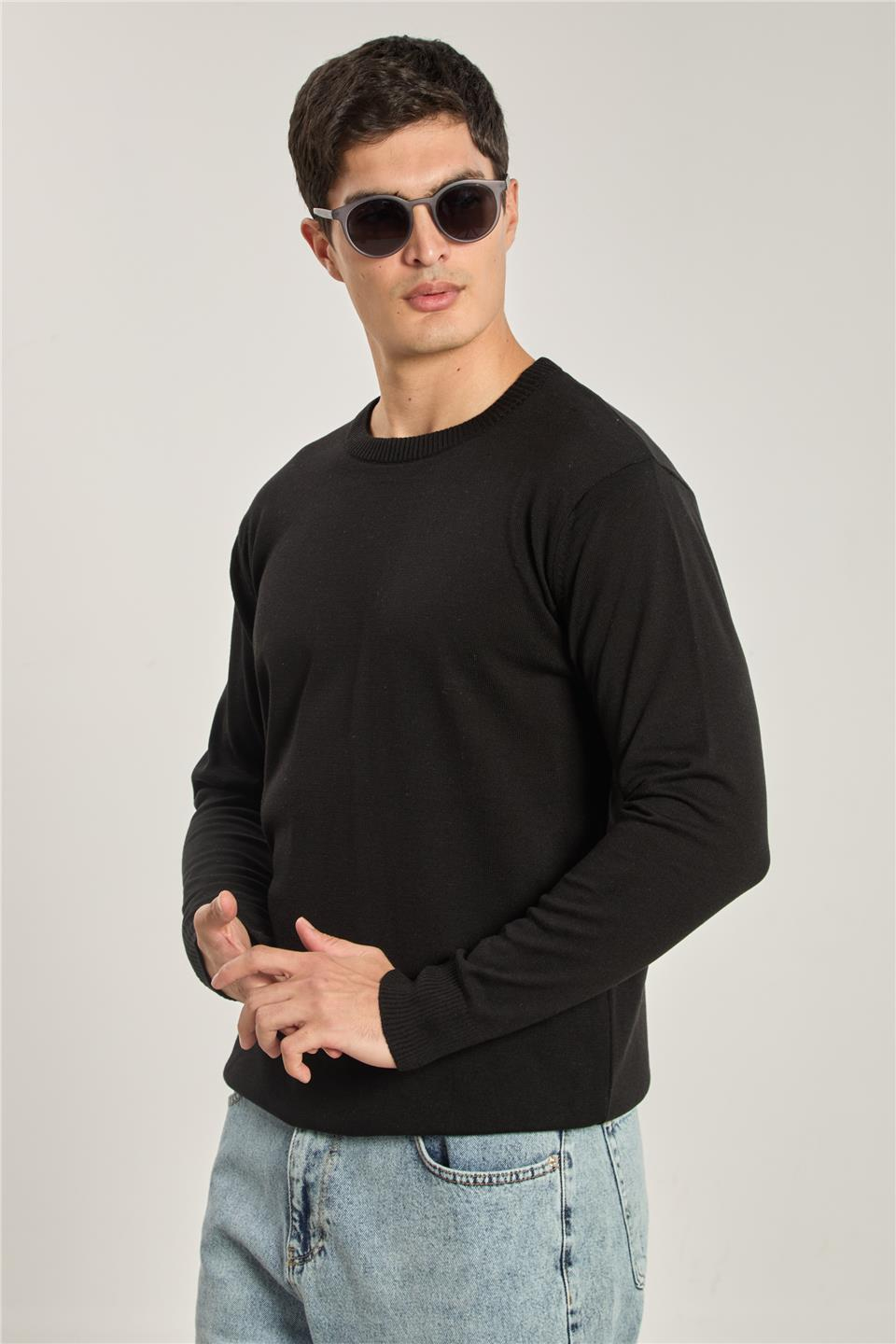 Erkek Uzun Kollu Triko Kazak - Siyah
