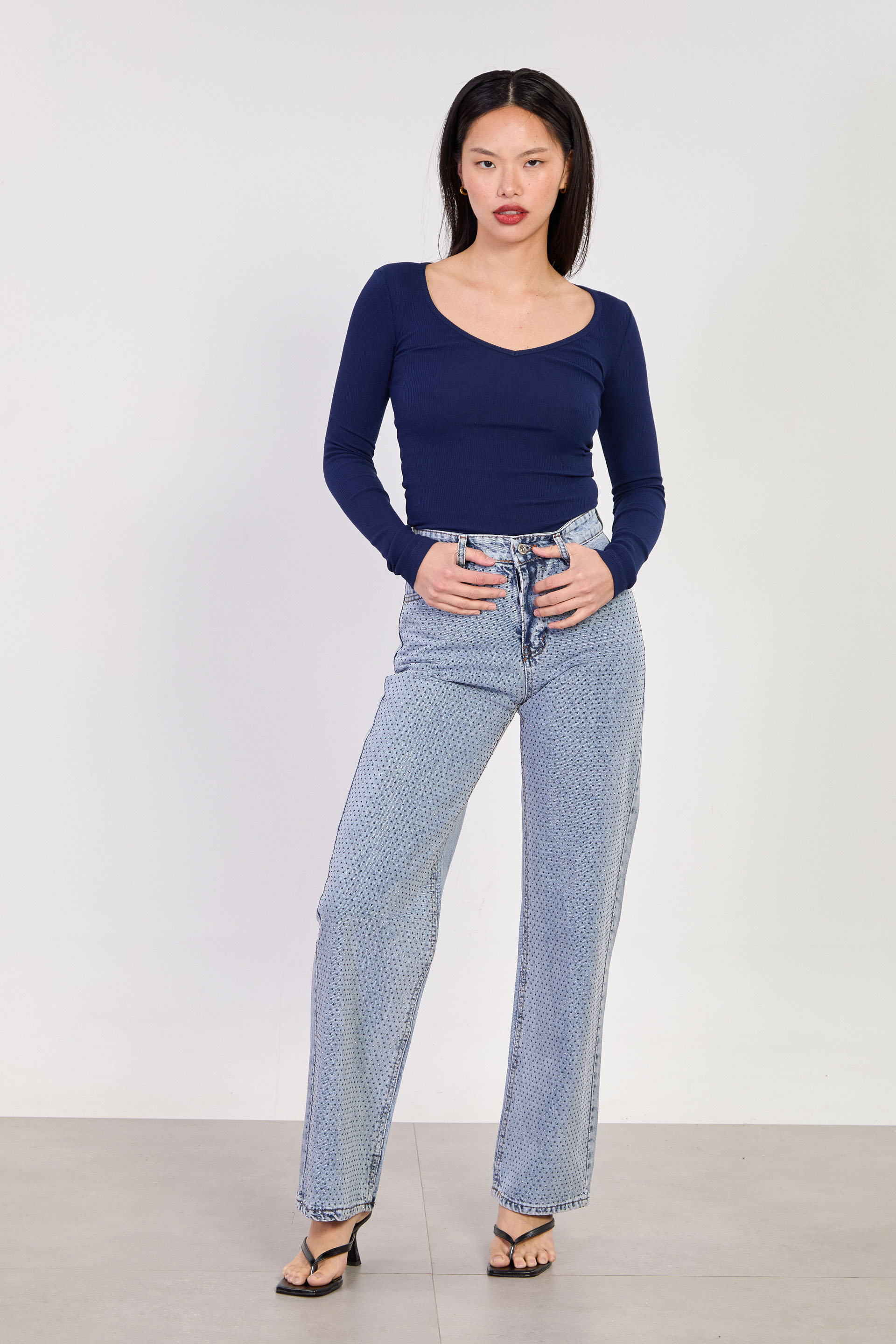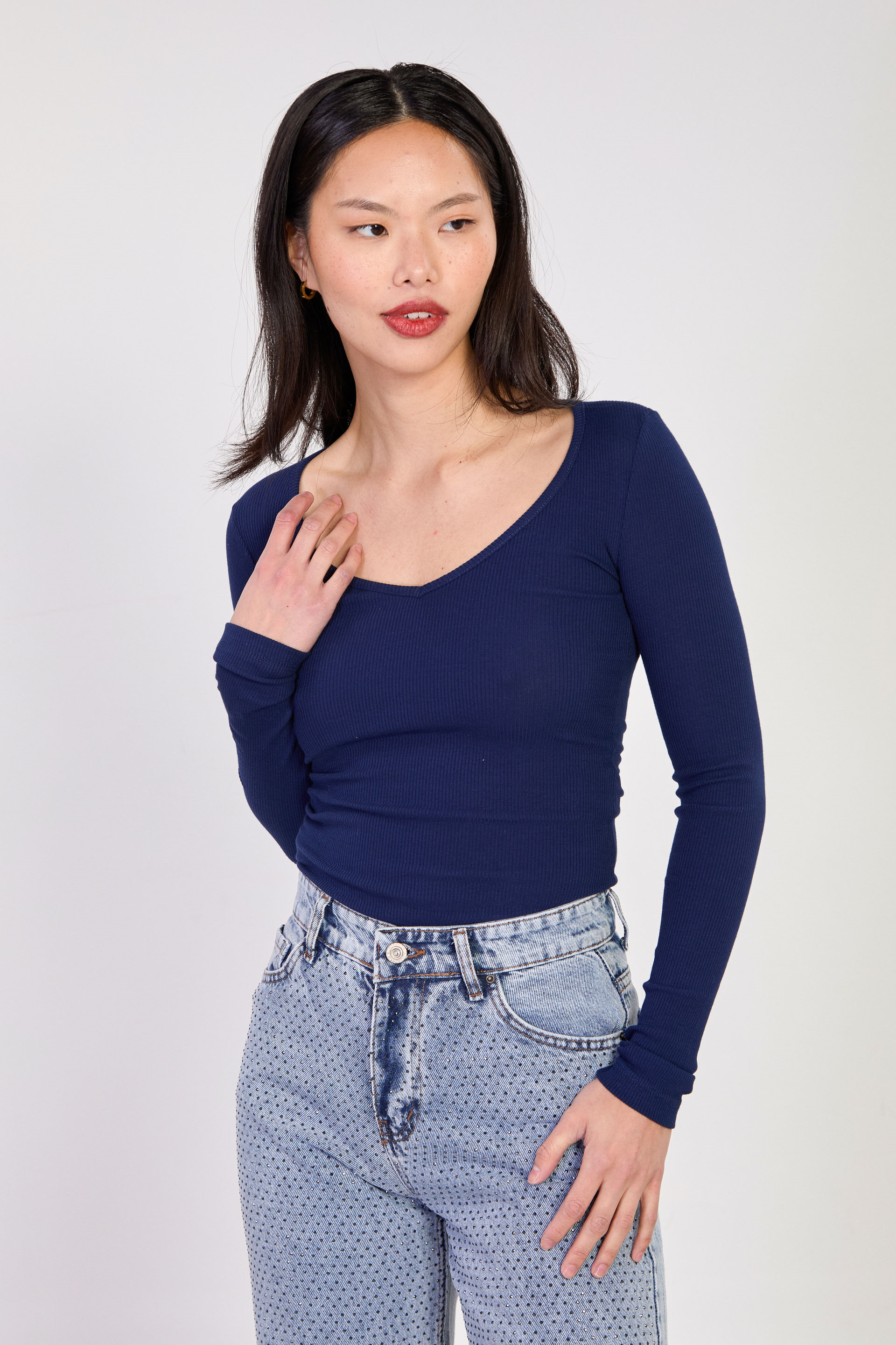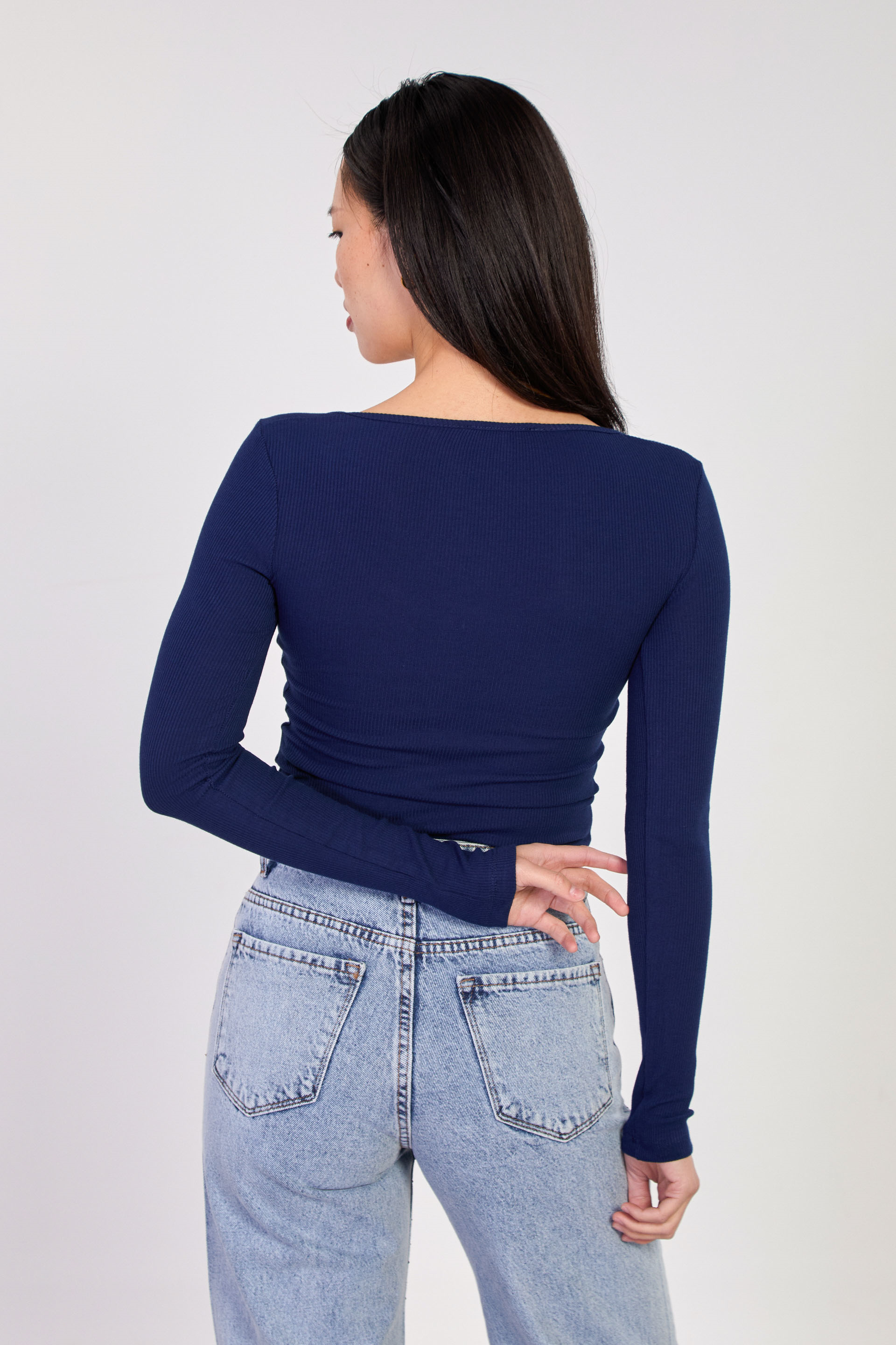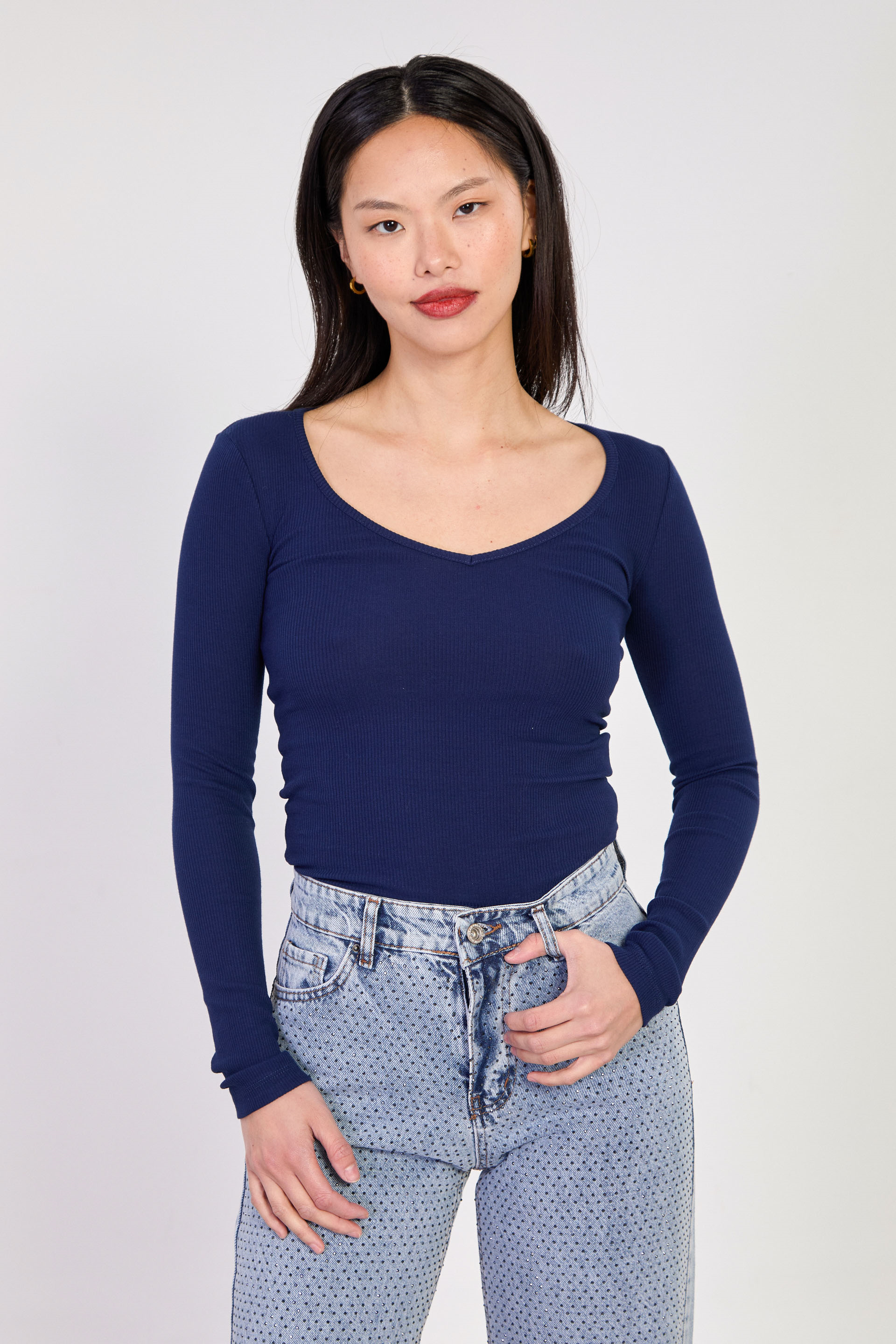 Kadın Uzun Kollu V Yaka Body - Lacivert