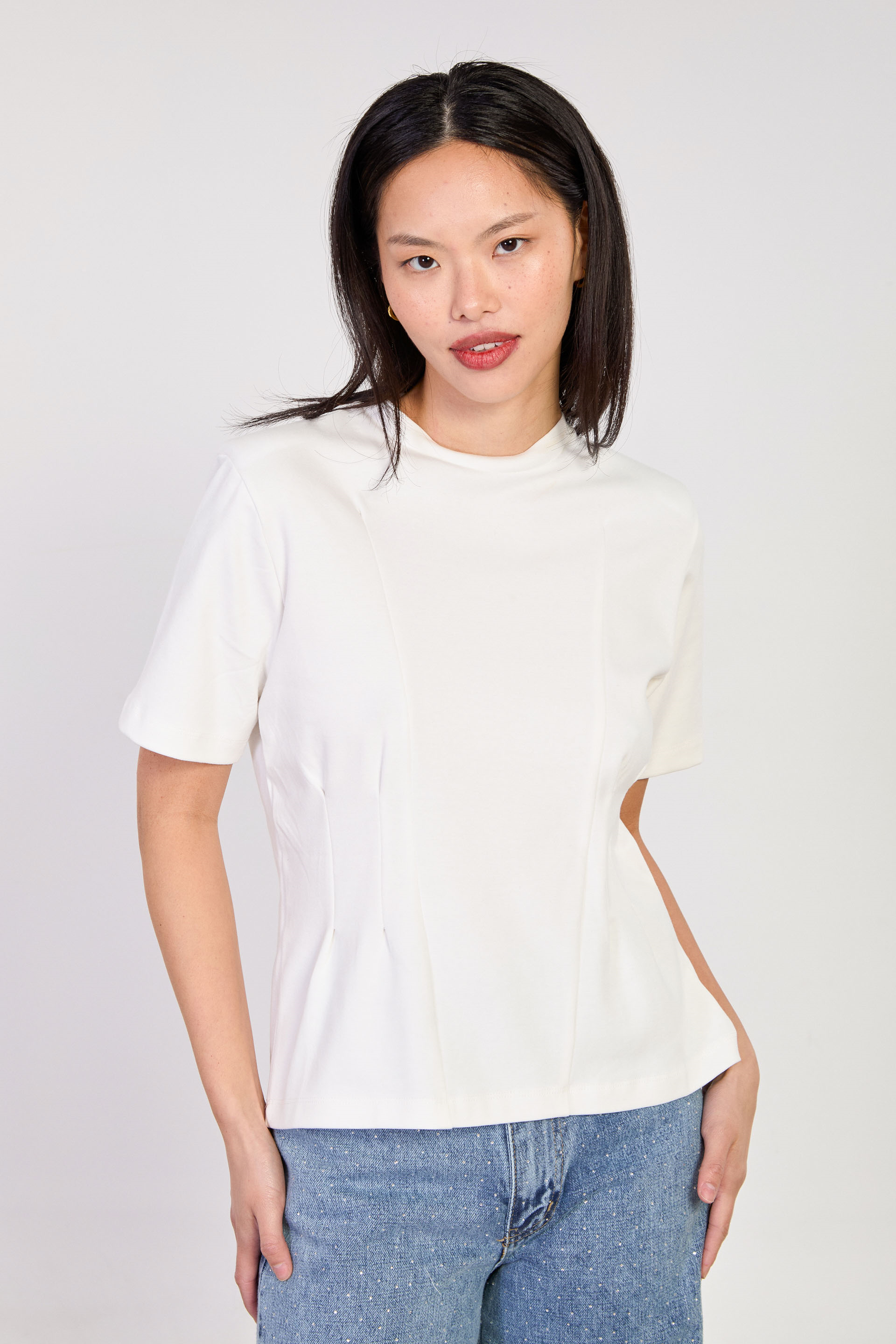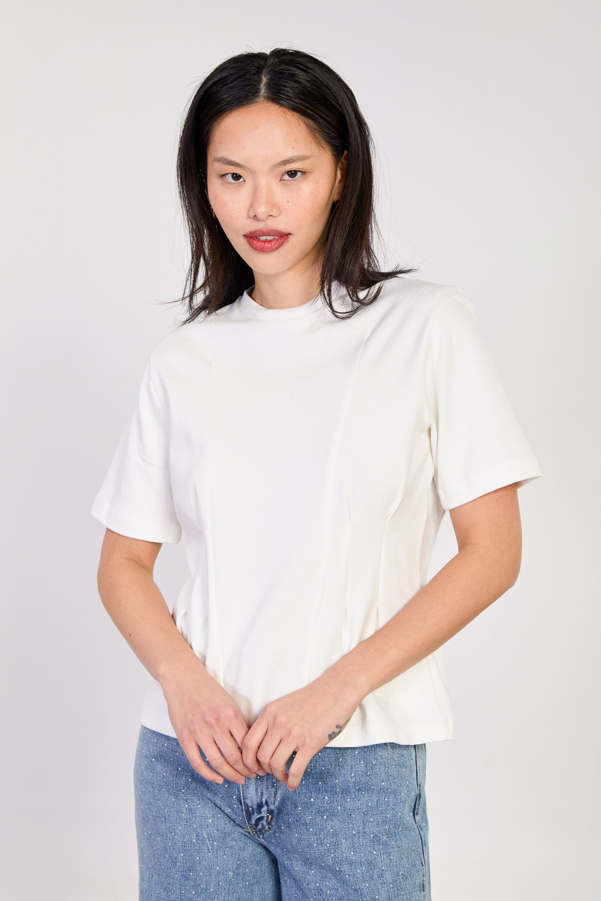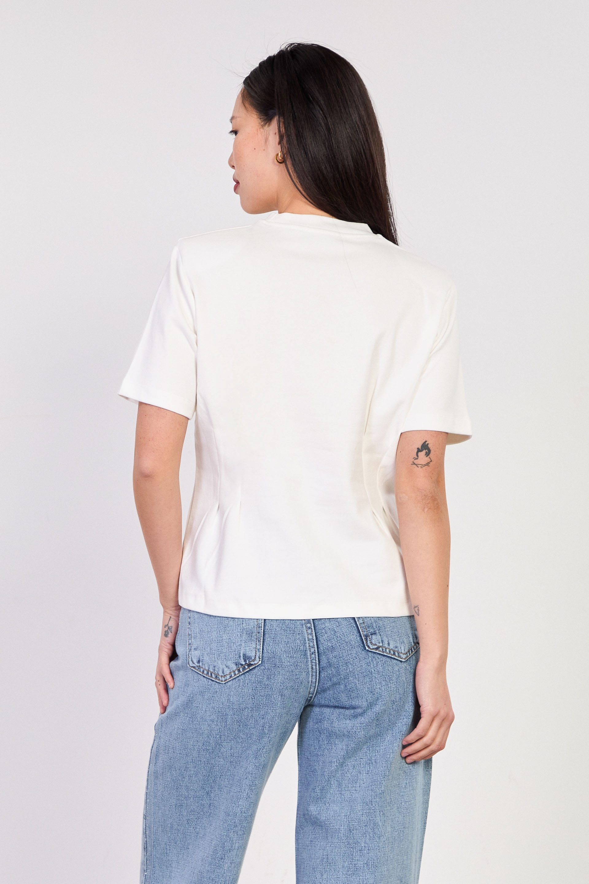 Kadın Vatkalı Fit Kesimli T-Shirt - Ekru