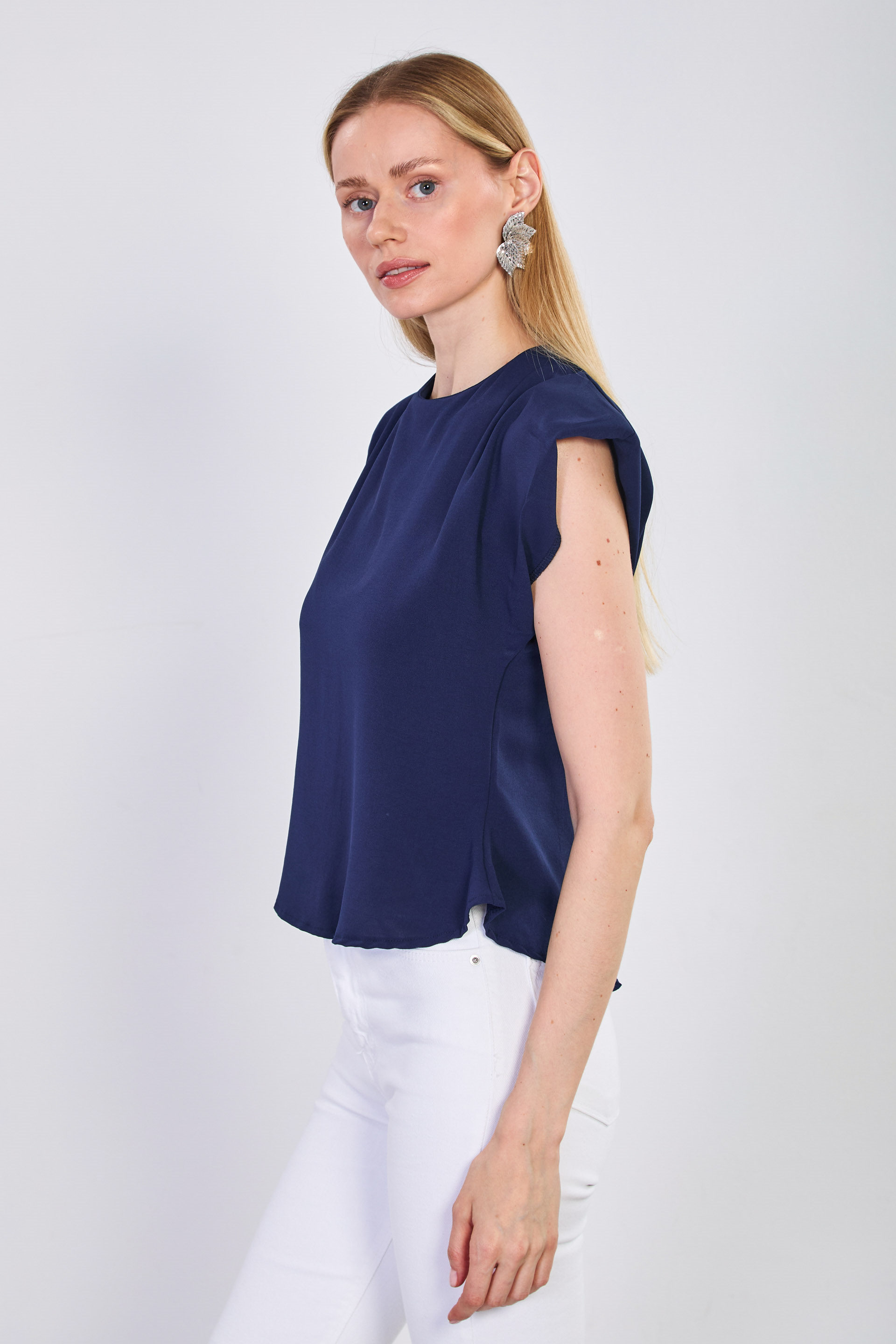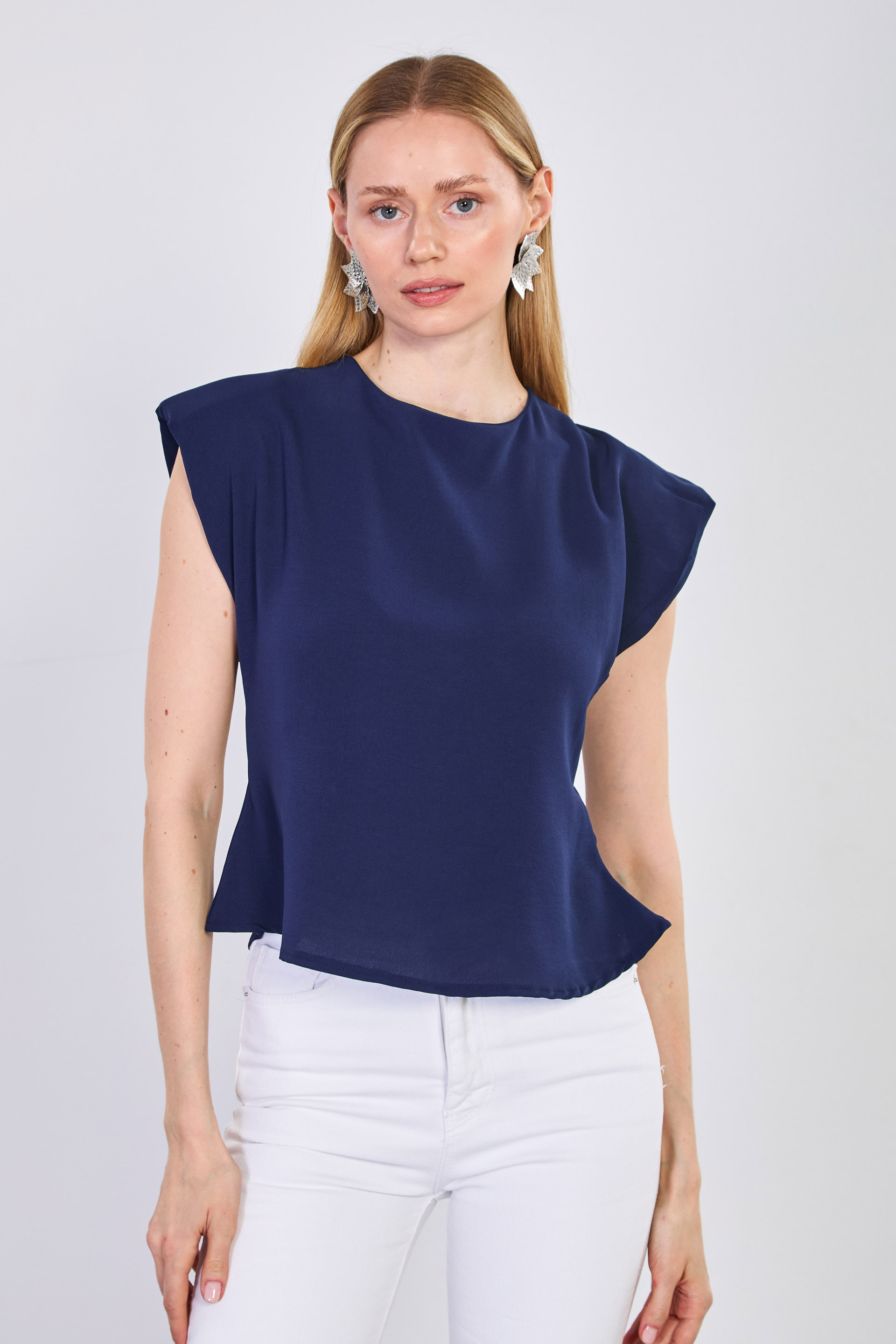 Kadın Vatkalı Kolsuz Bluz - Lacivert