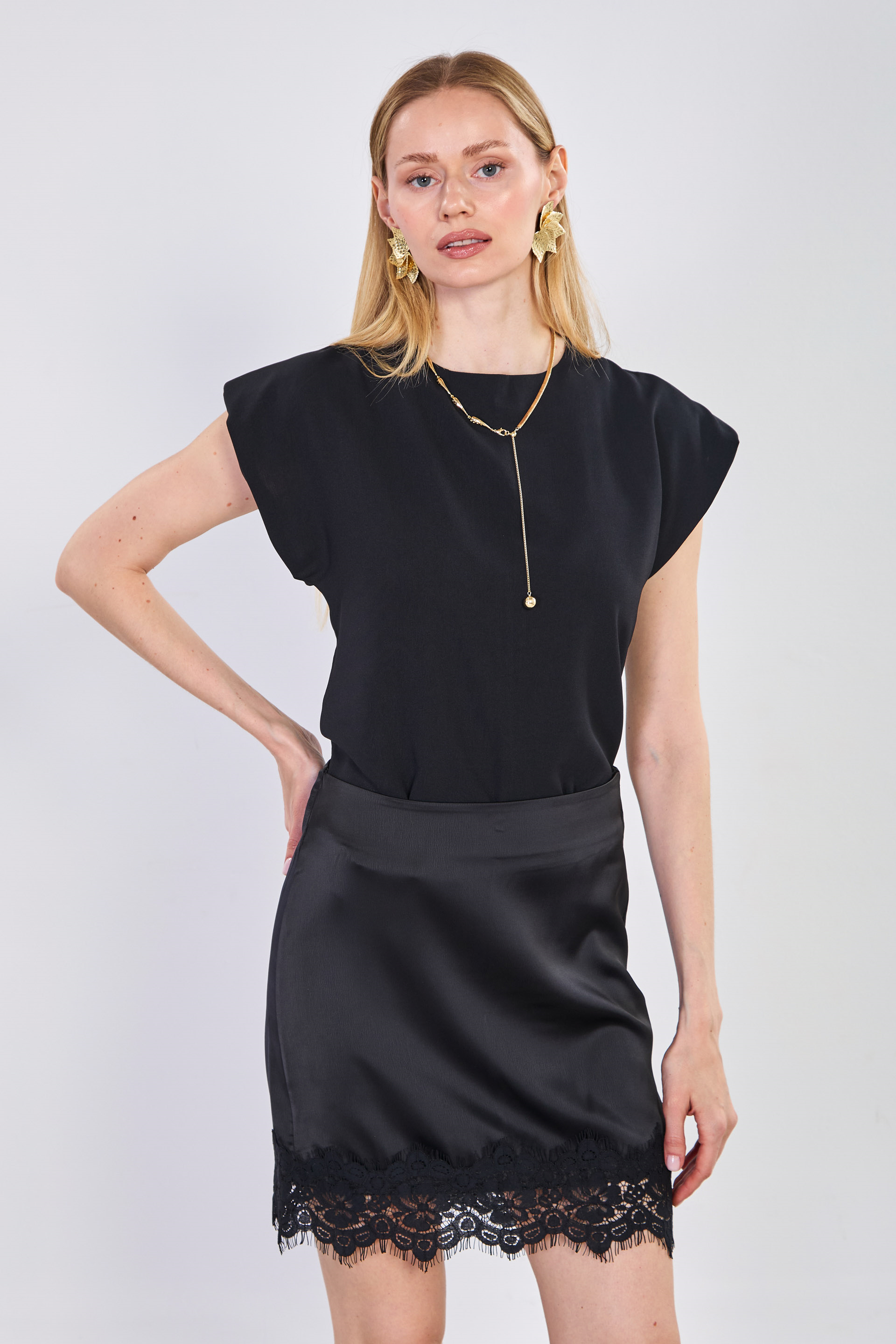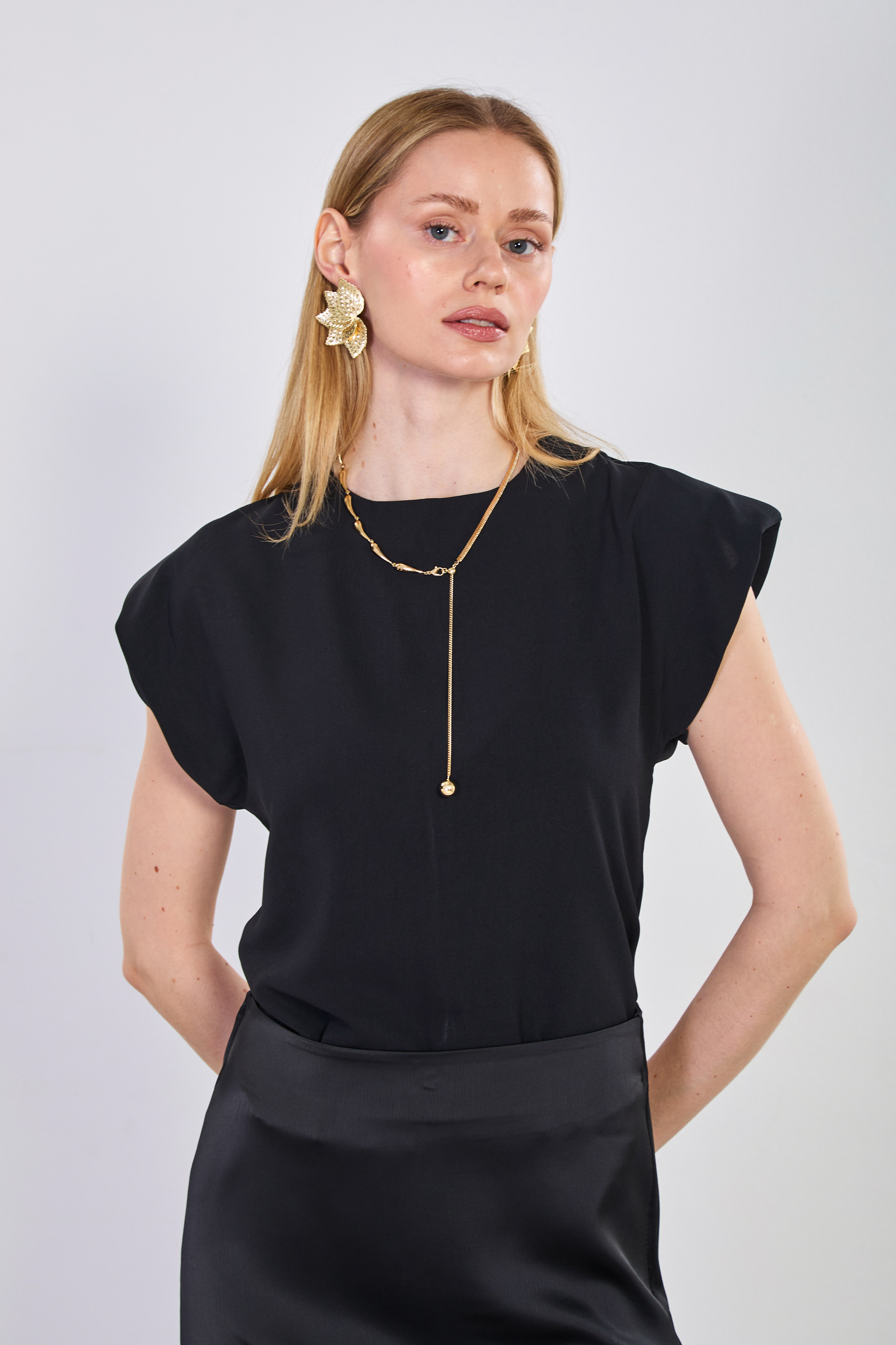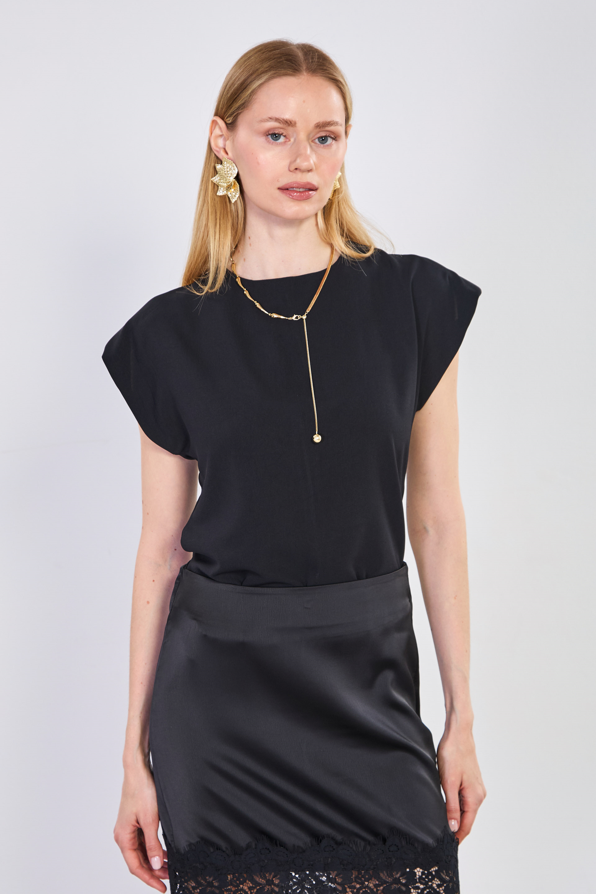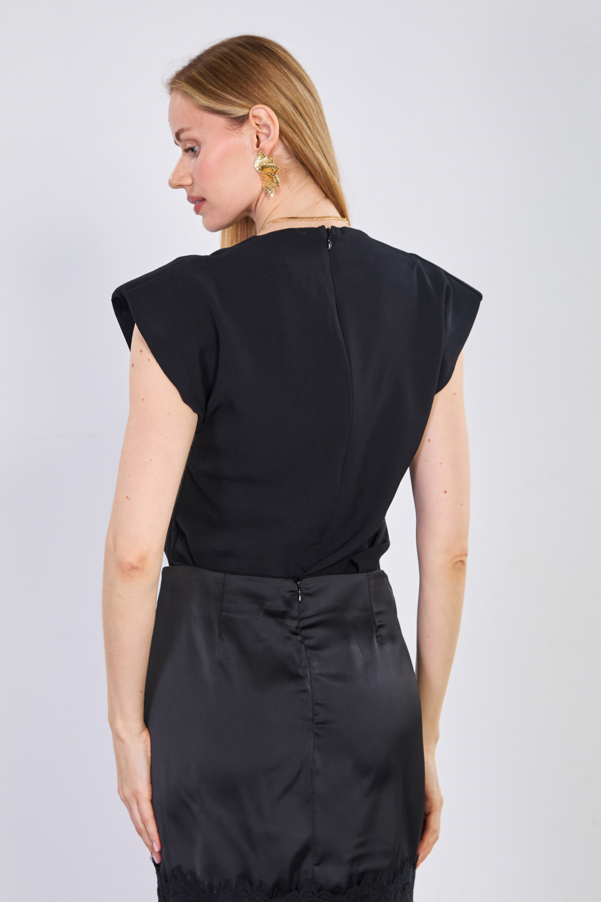 Kadın Vatkalı Kolsuz Bluz - Siyah