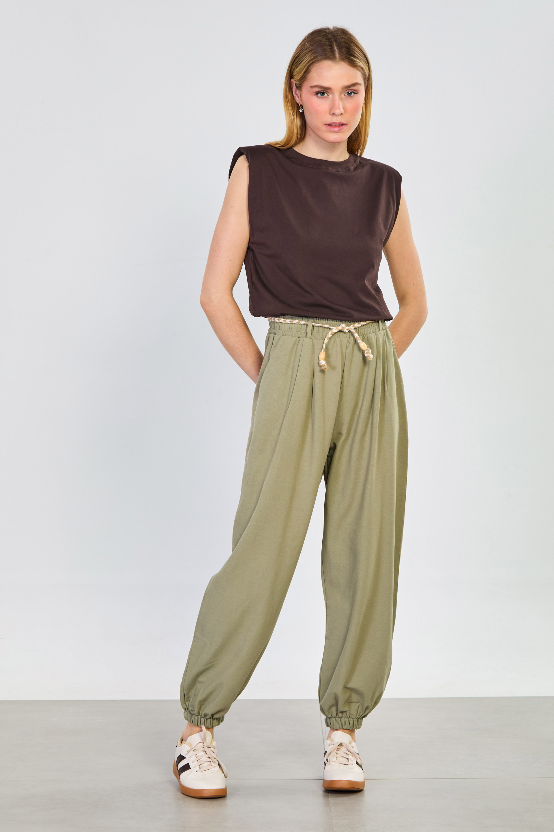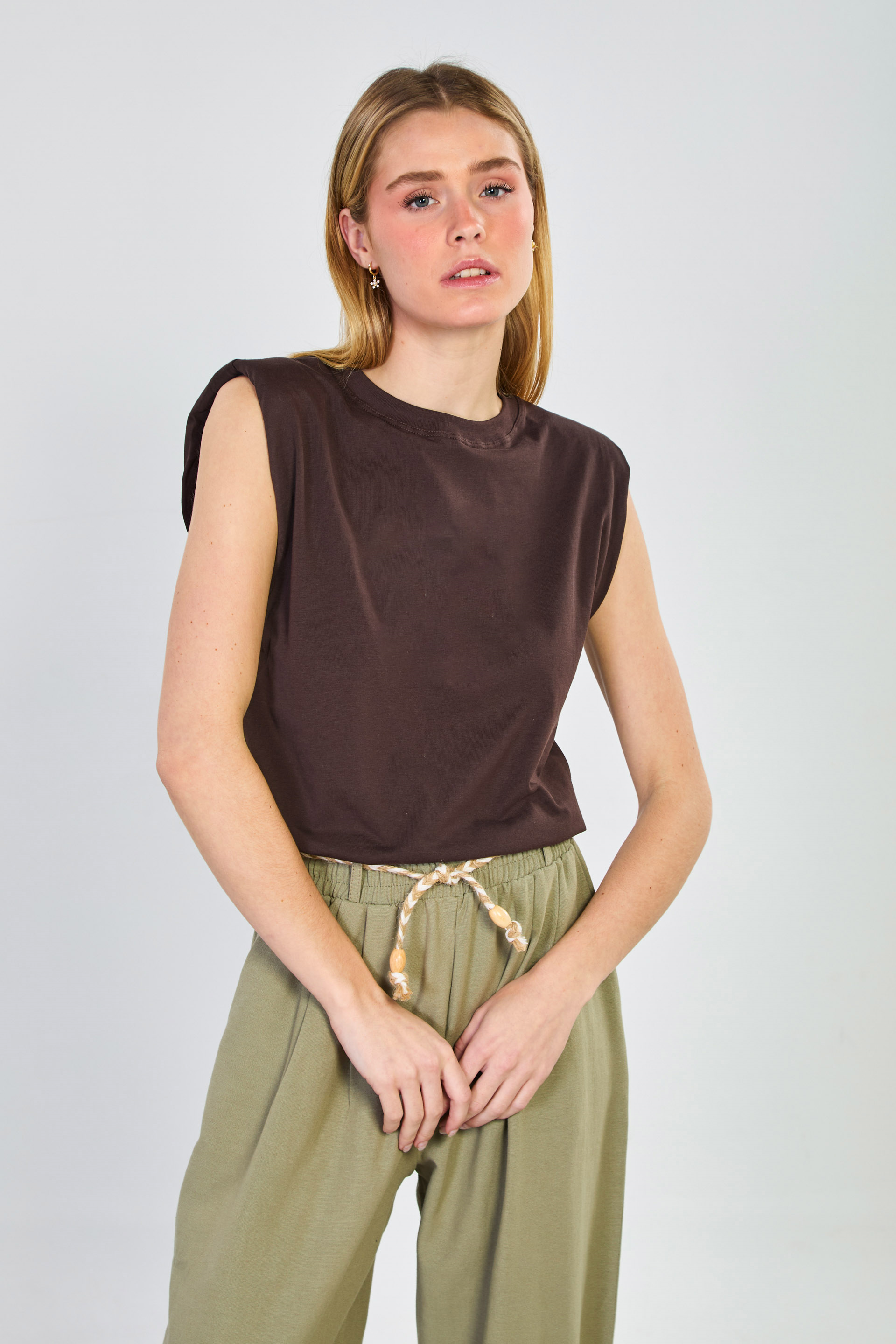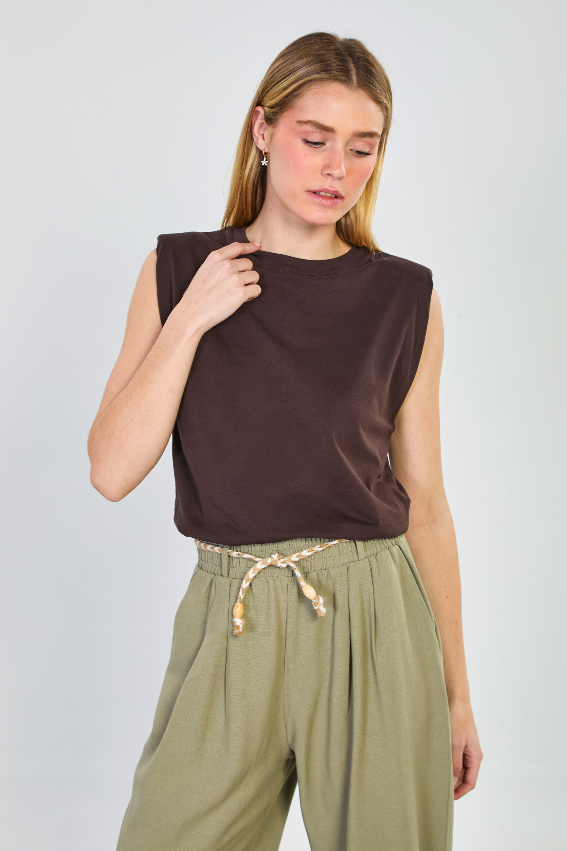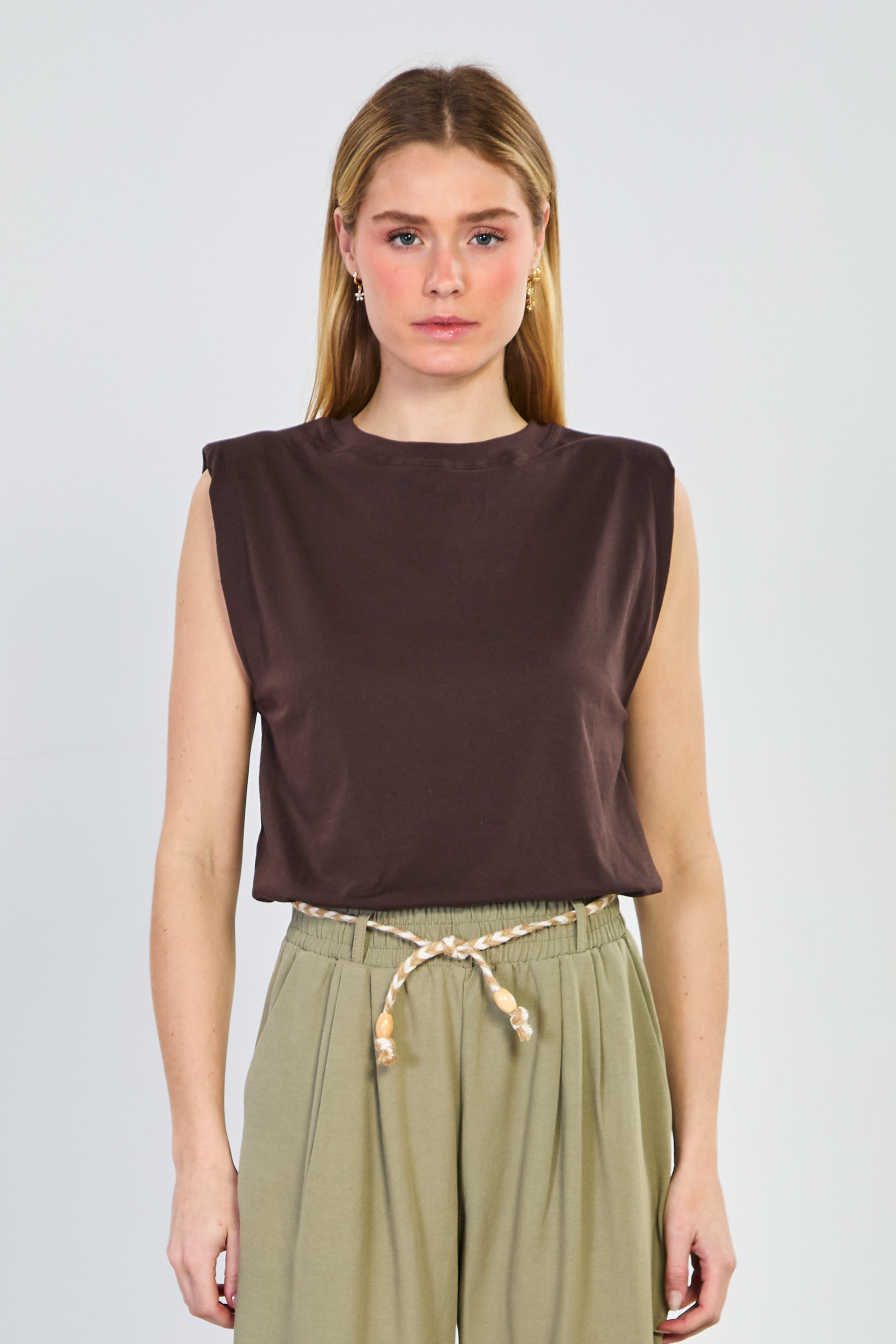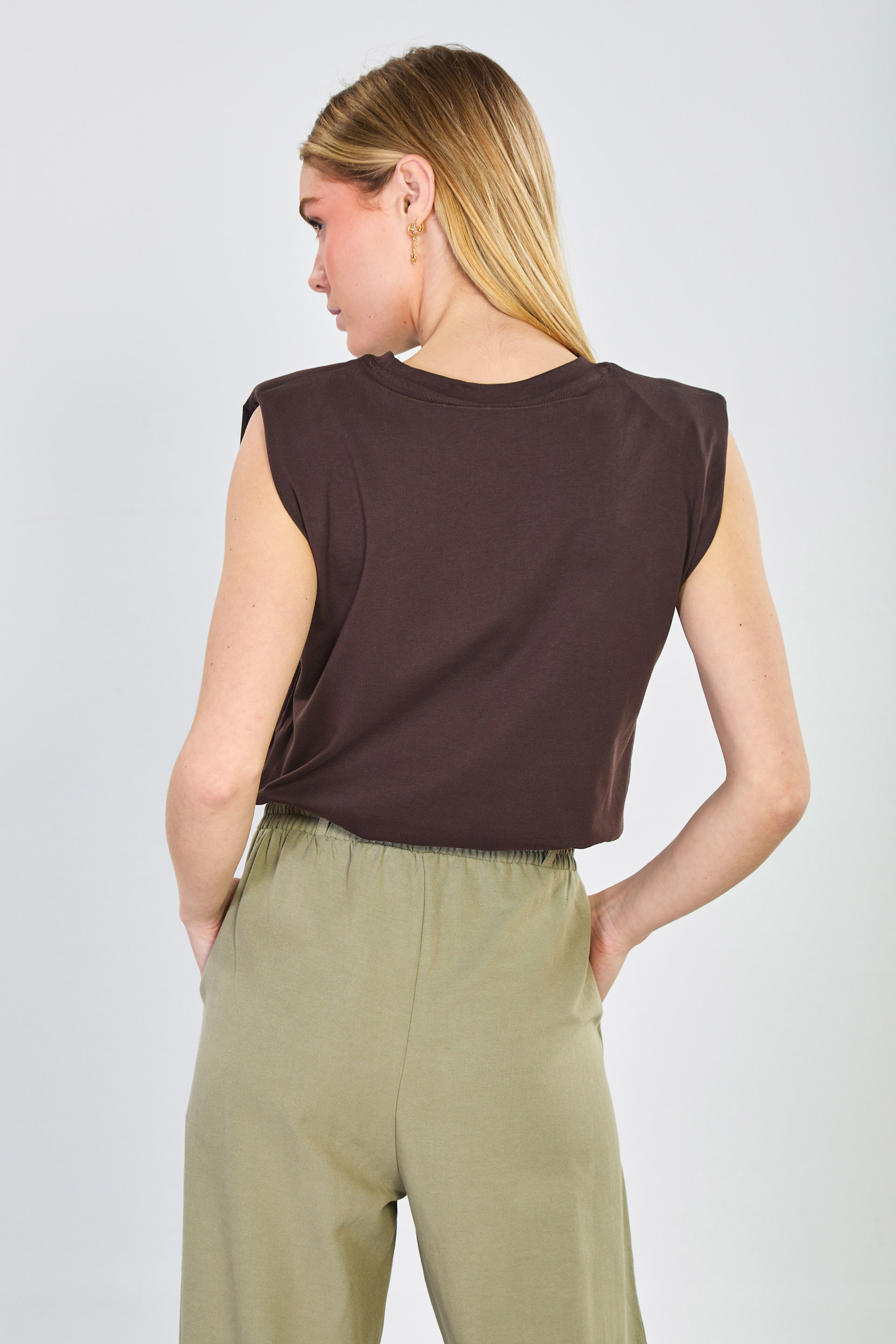 Kadın Vatkalı Kolsuz T-Shirt - Kahve