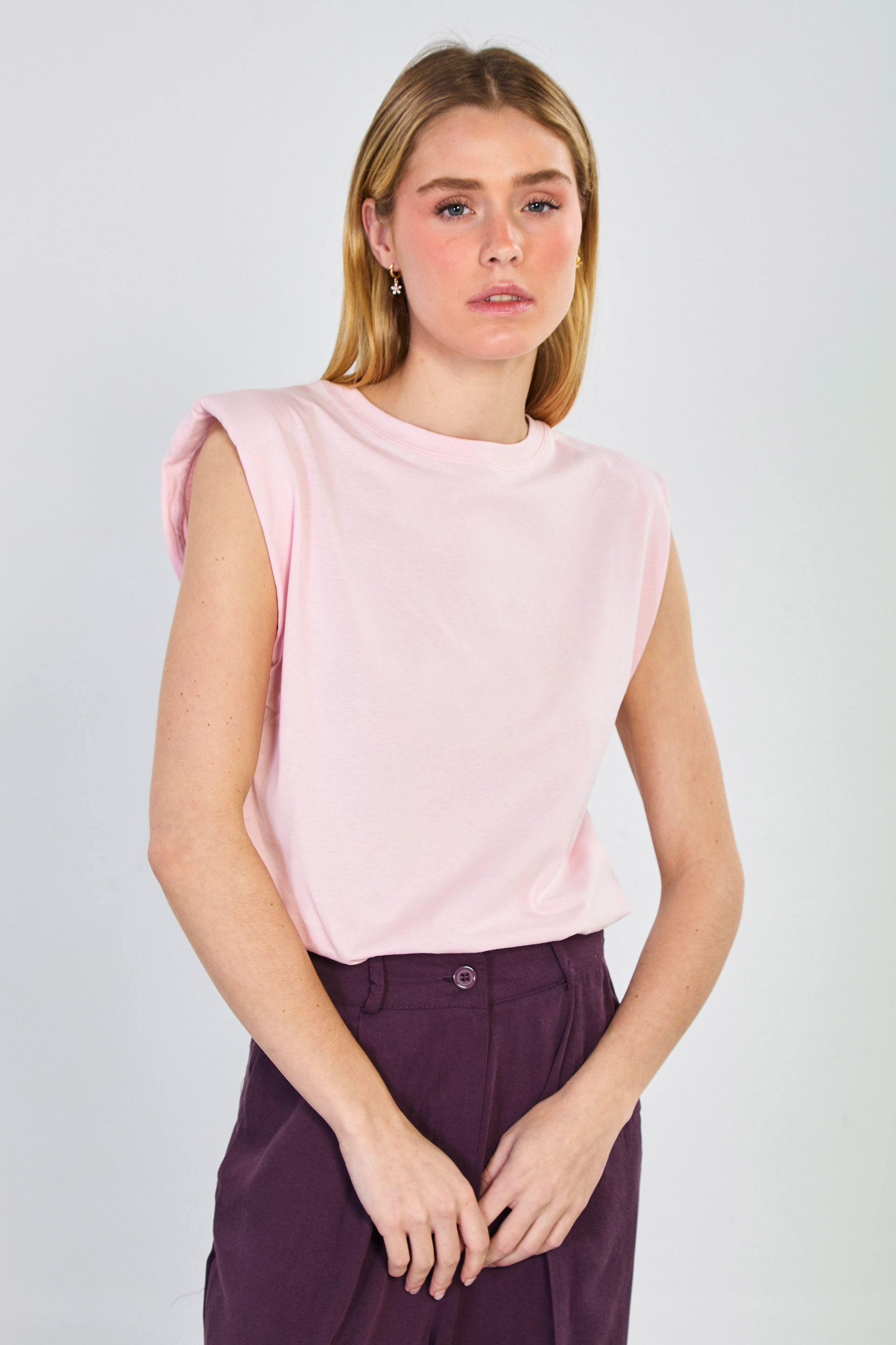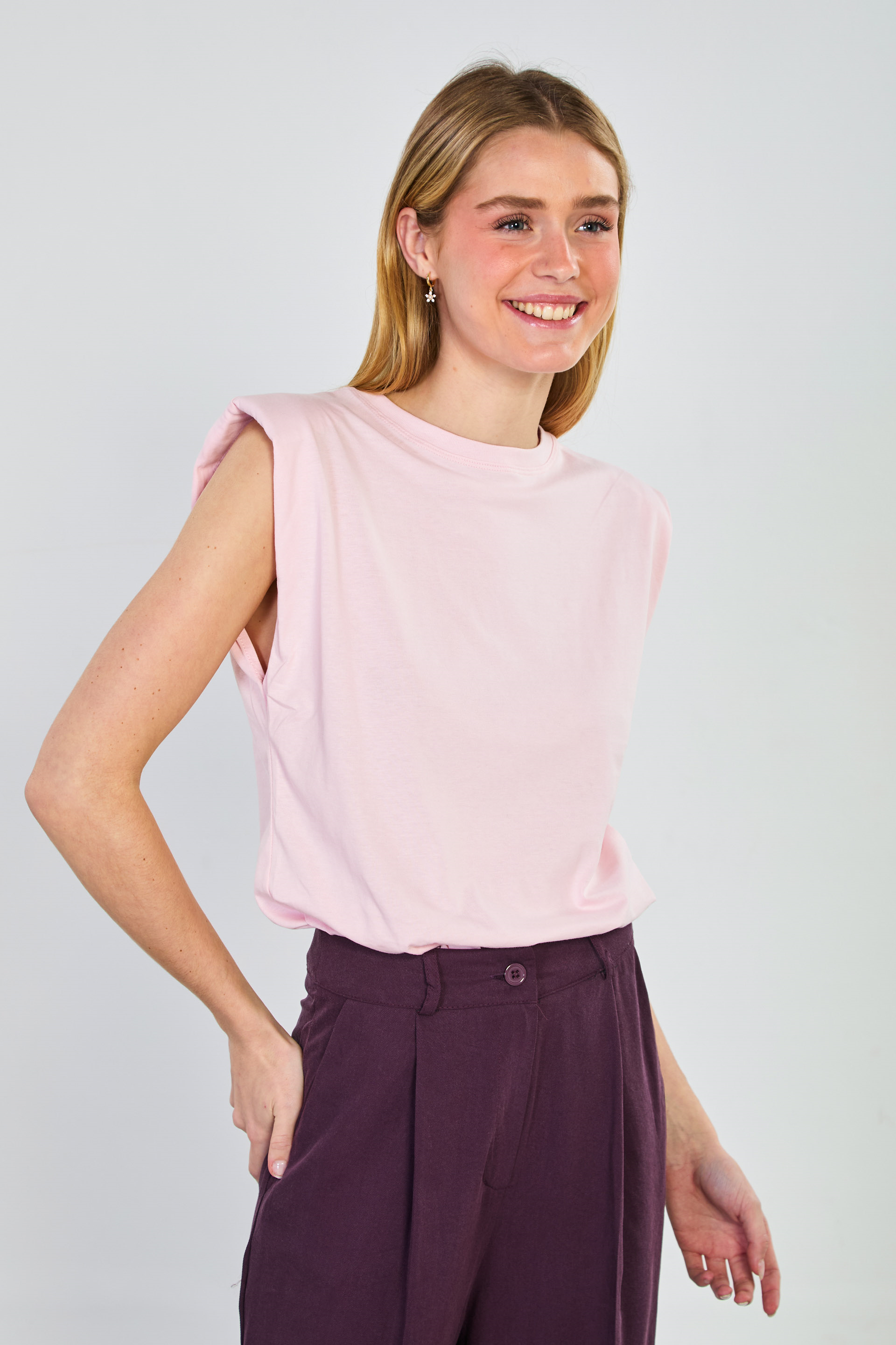 Kadın Vatkalı Kolsuz T-Shirt - Pembe