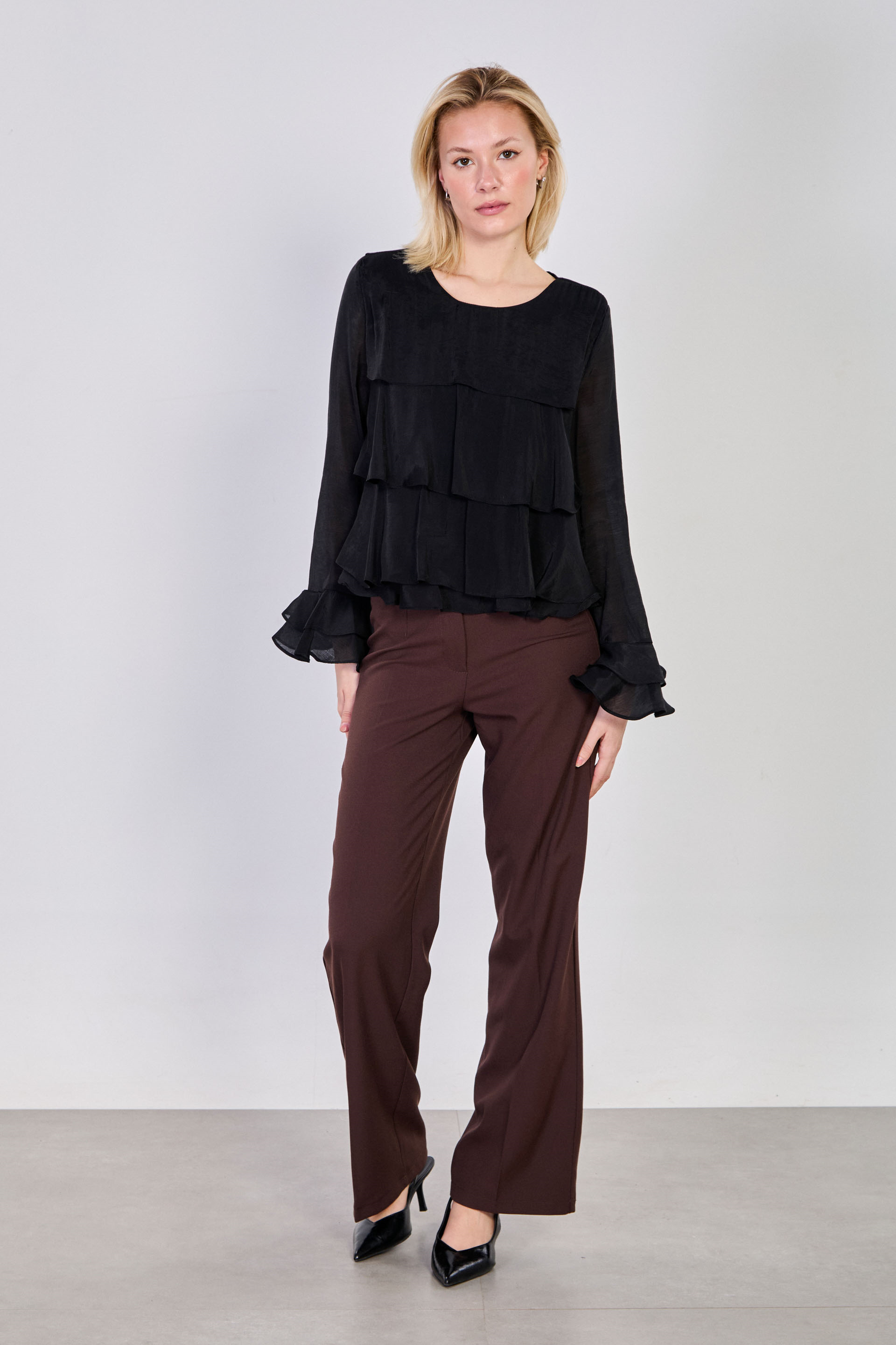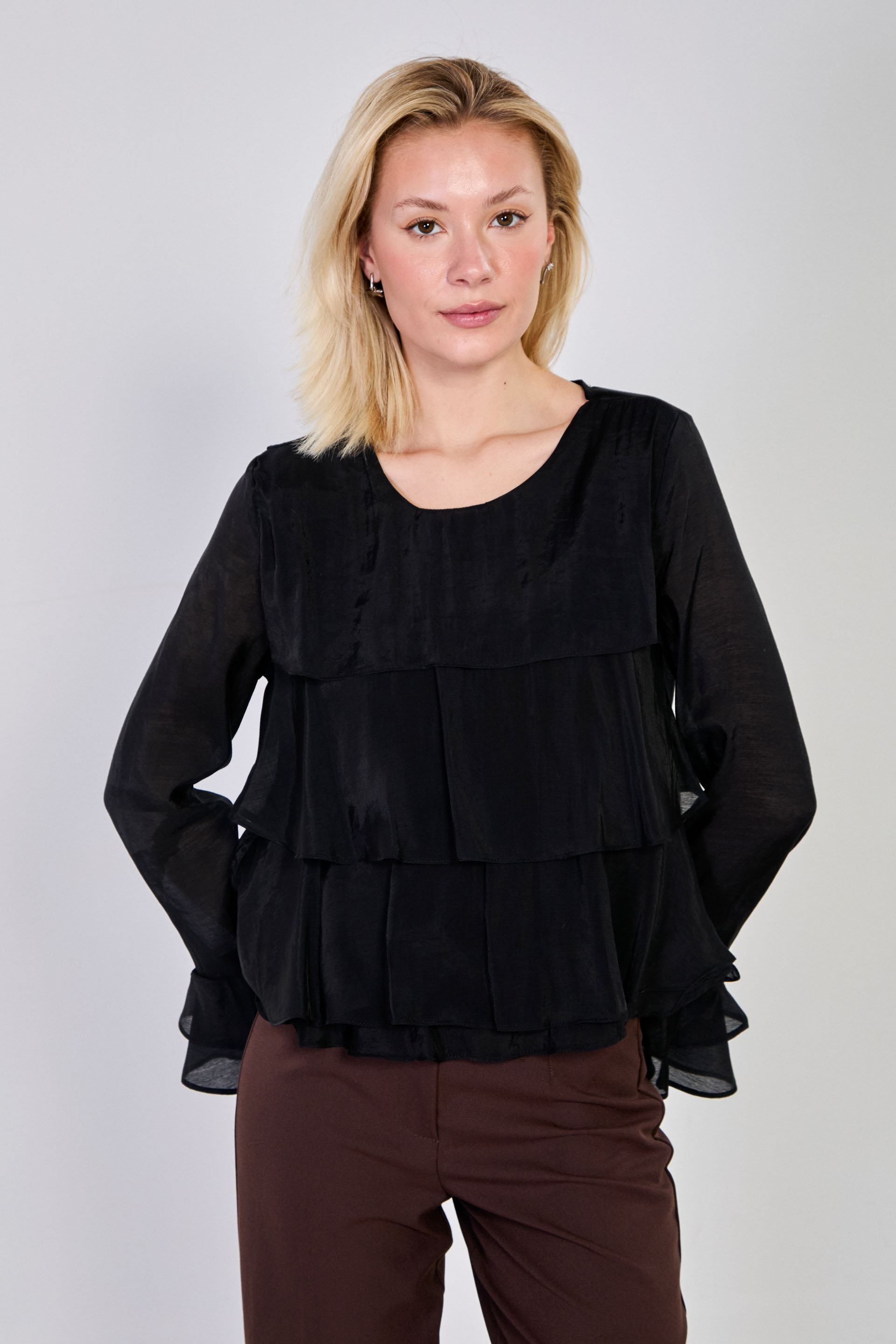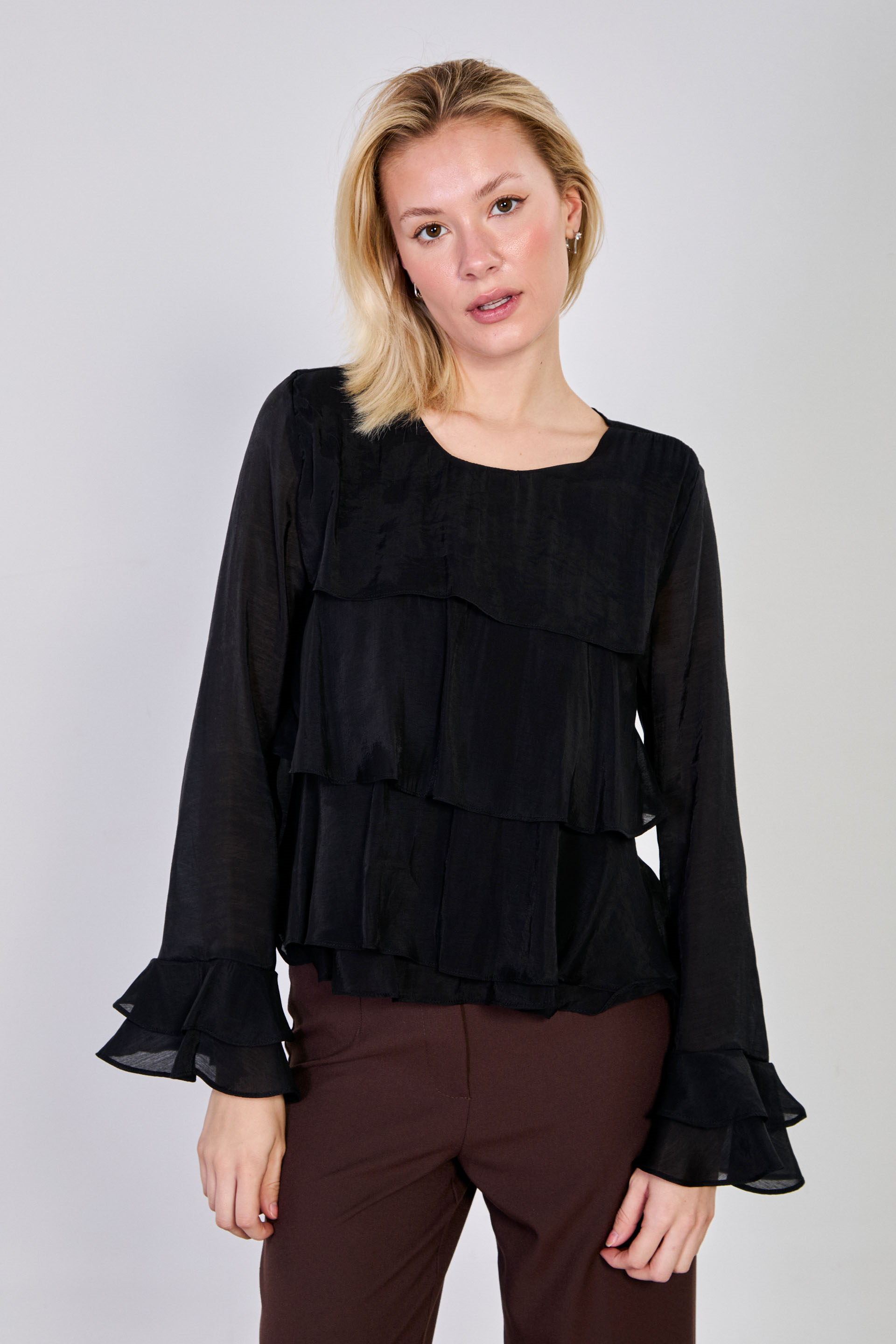 Kadın Volanlı Katlı Bluz - Siyah