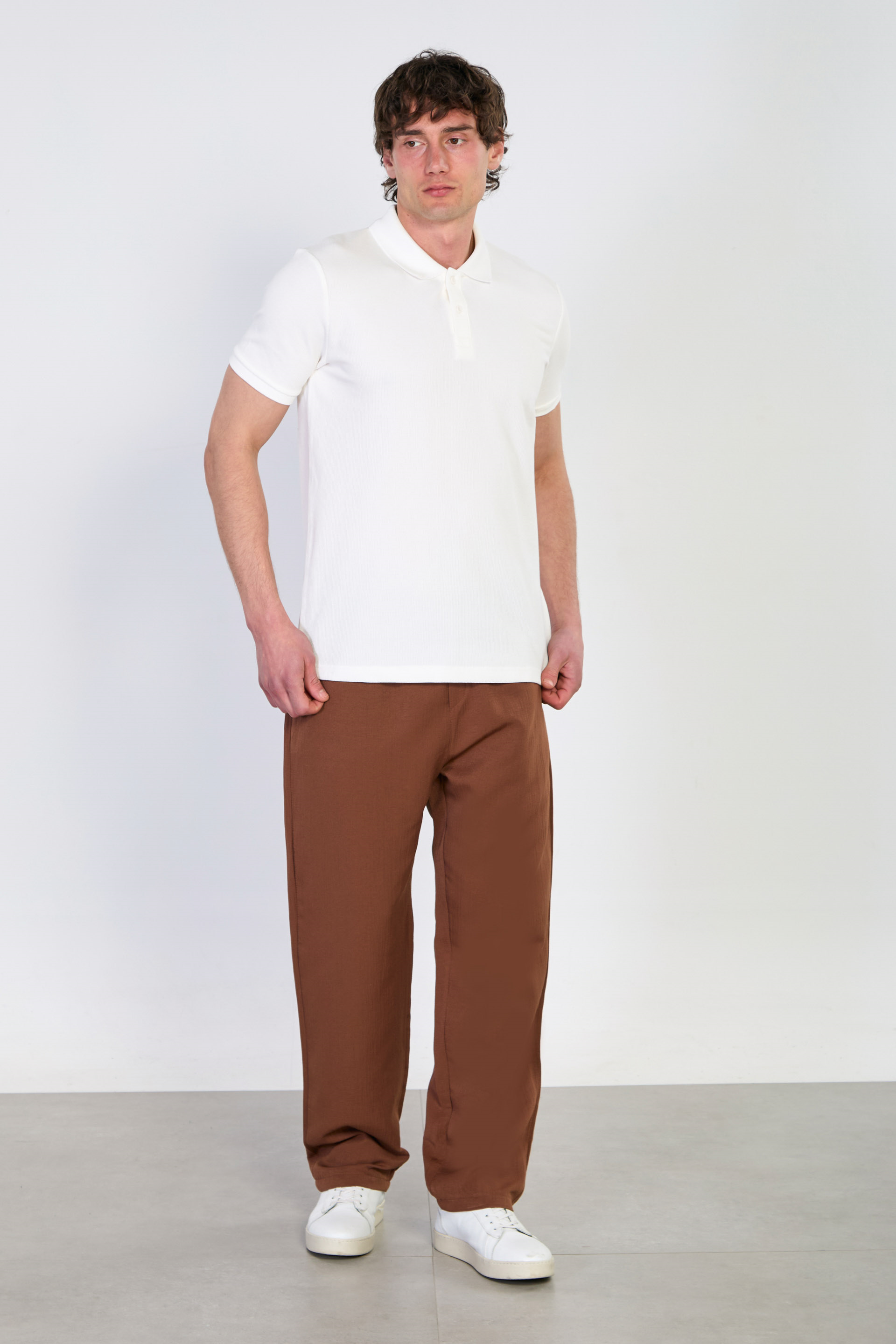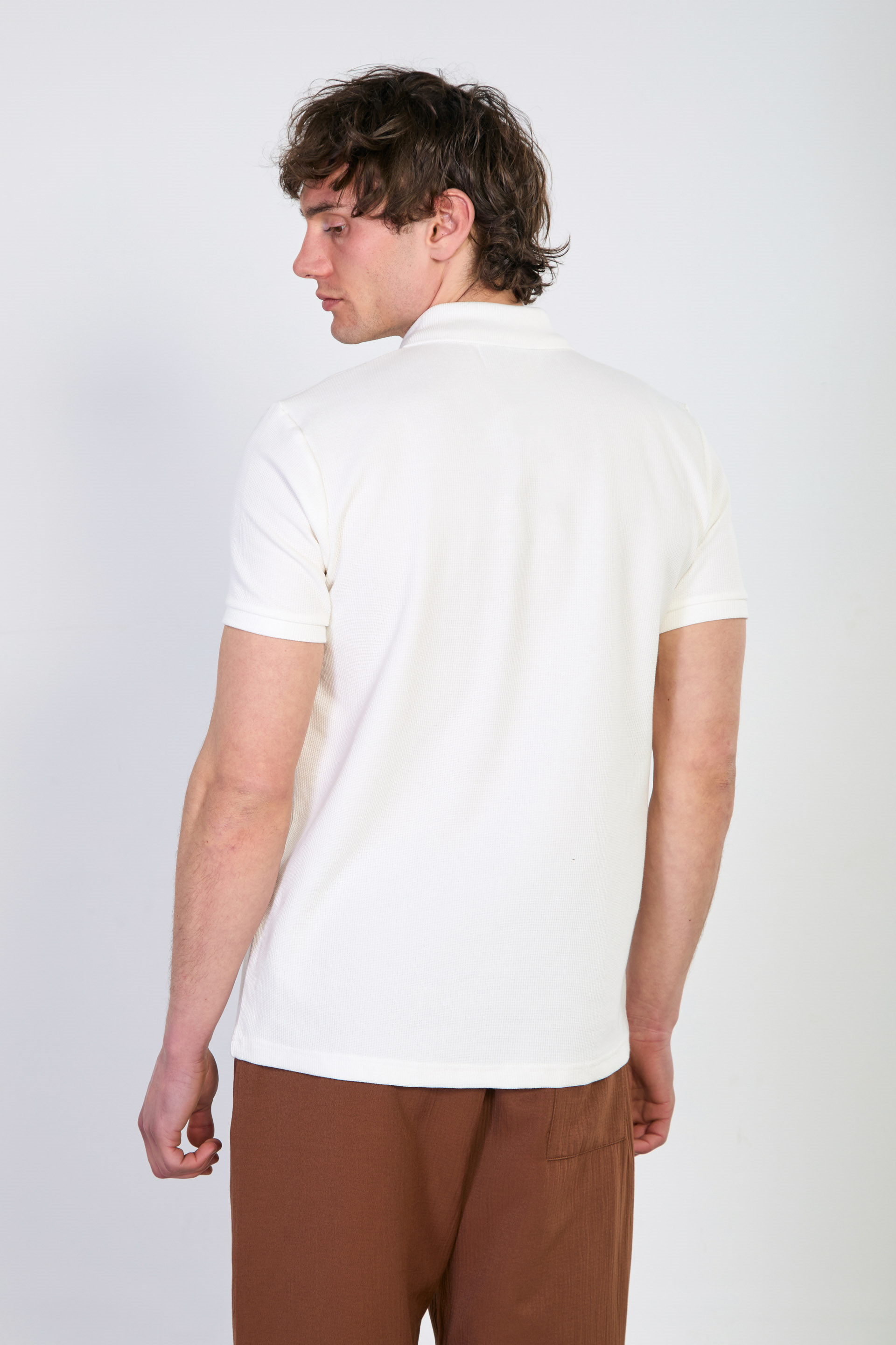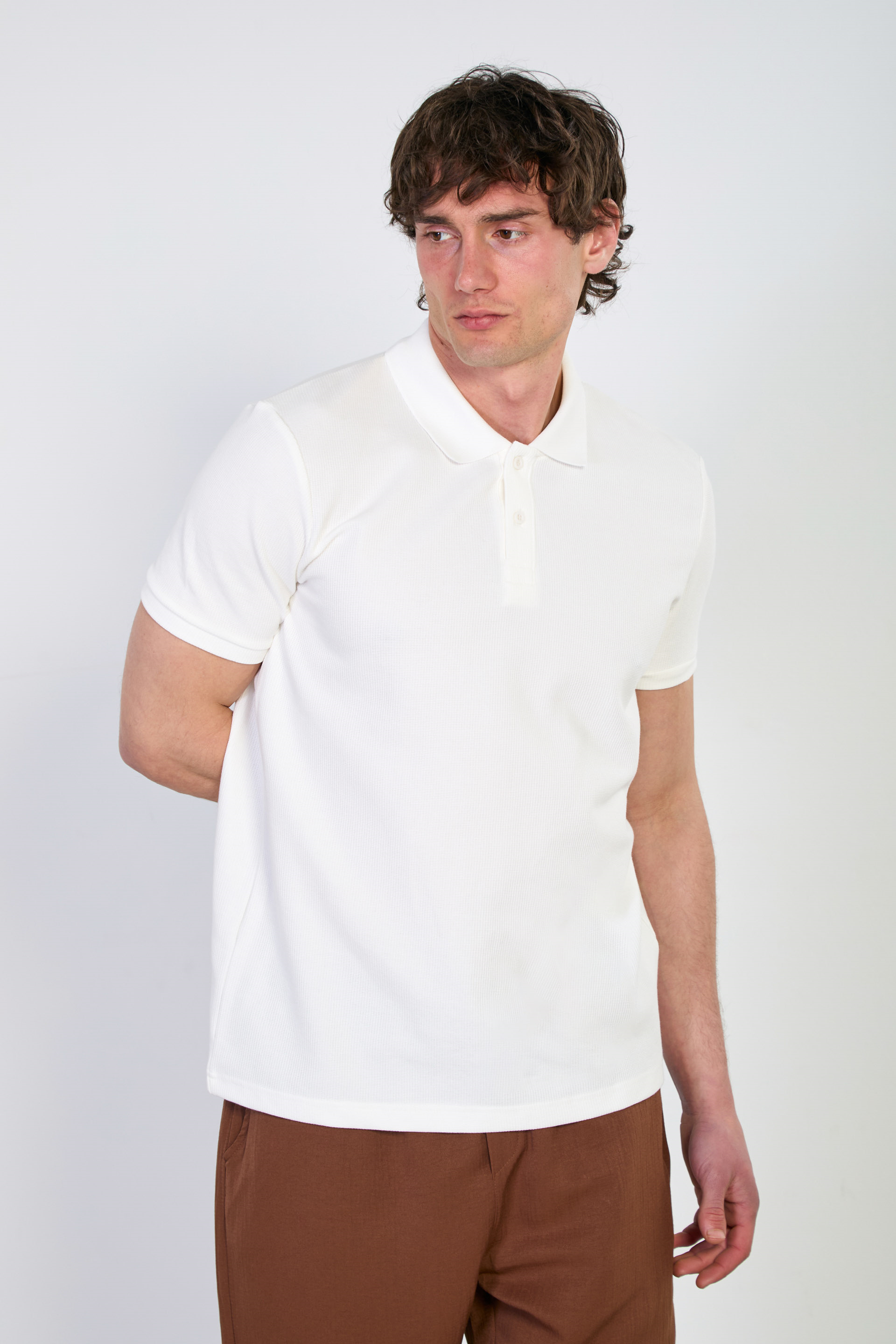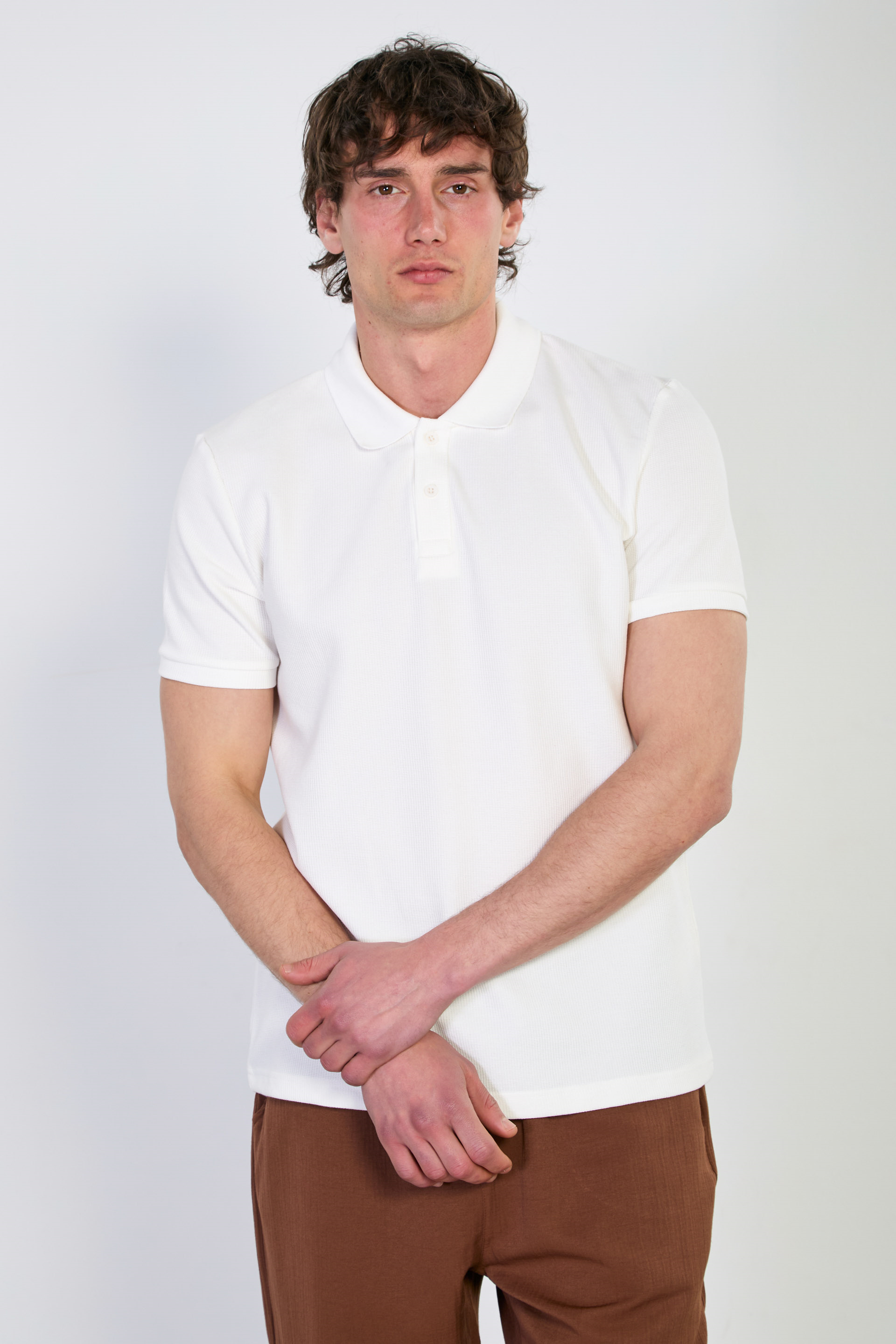 Erkek Waffle Polo Yaka T-Shirt - Ekru