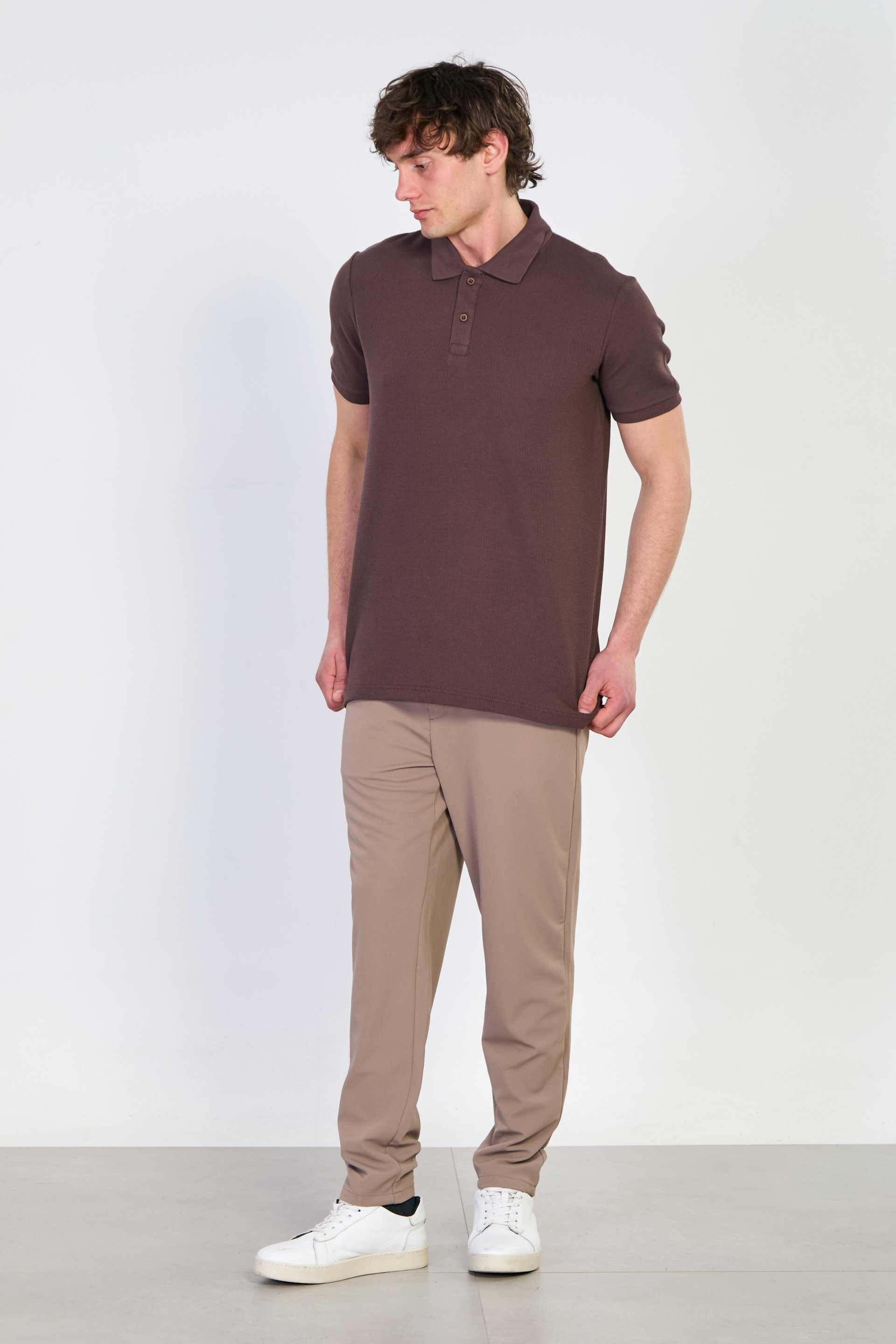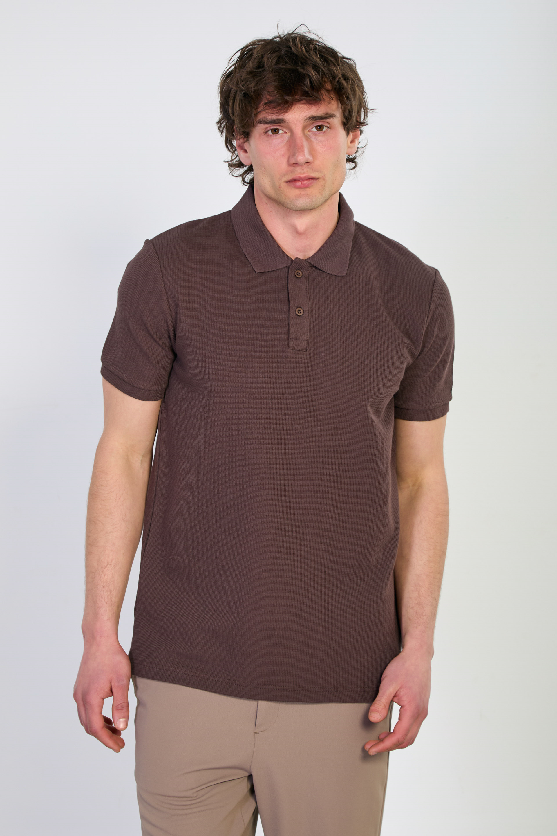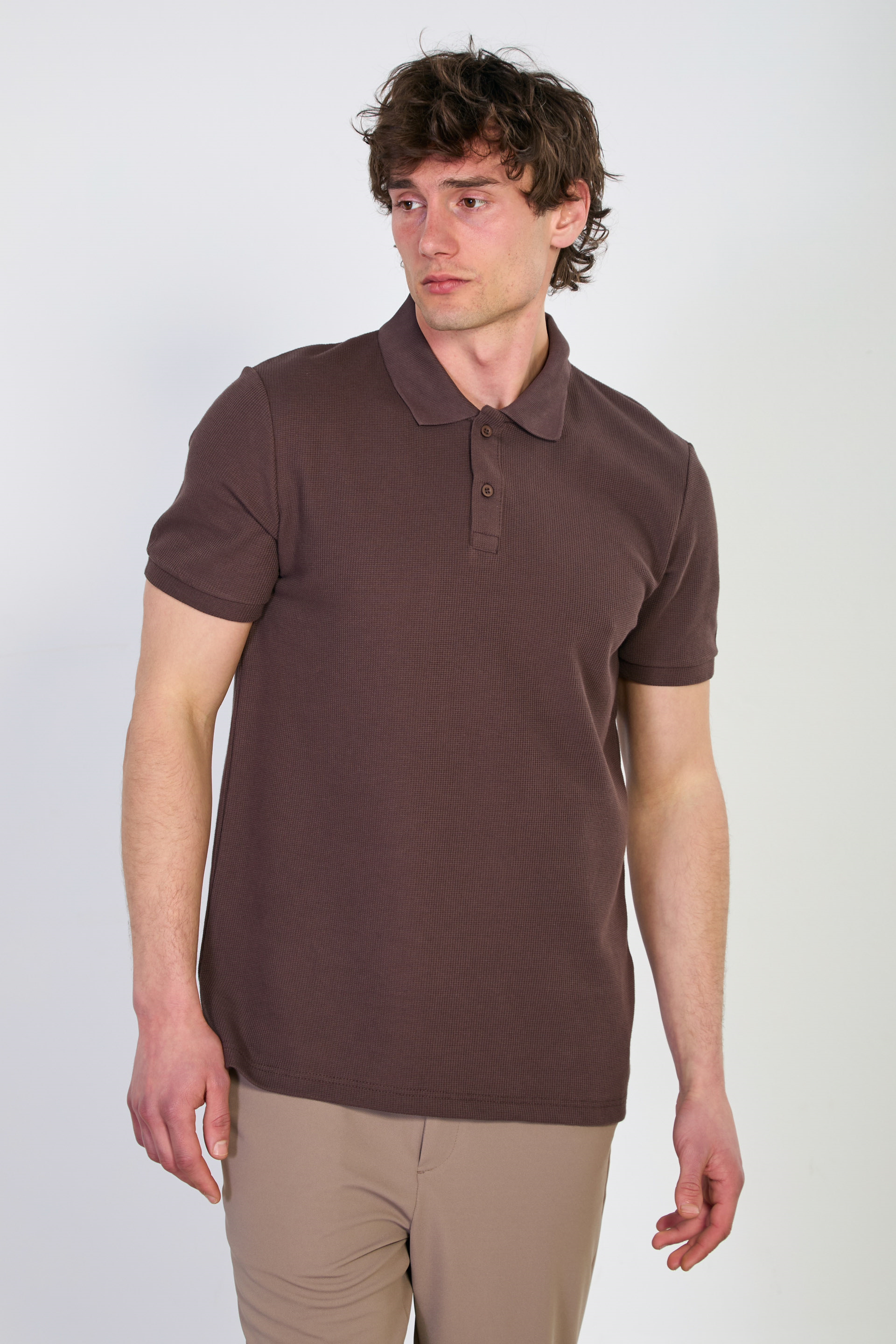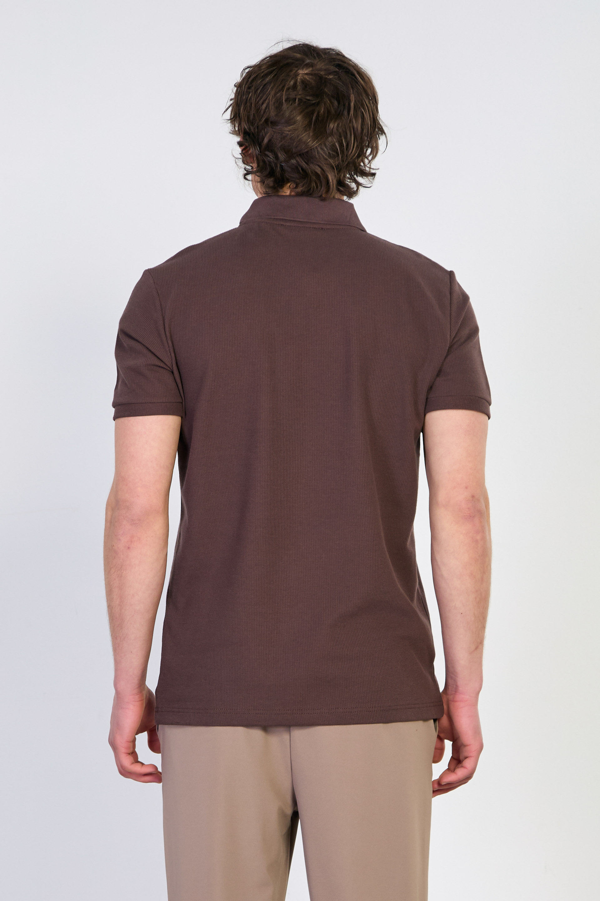 Erkek Waffle Polo Yaka T-Shirt - Kahve