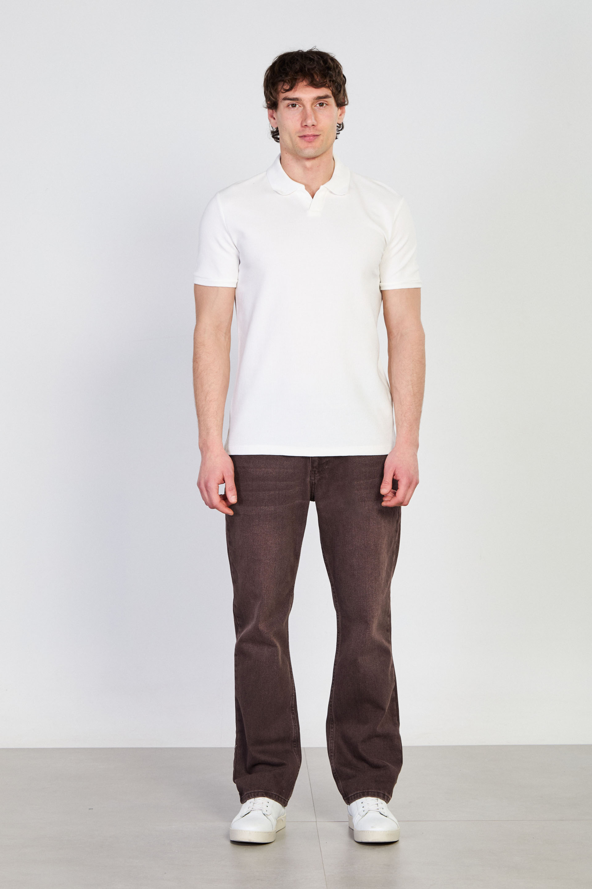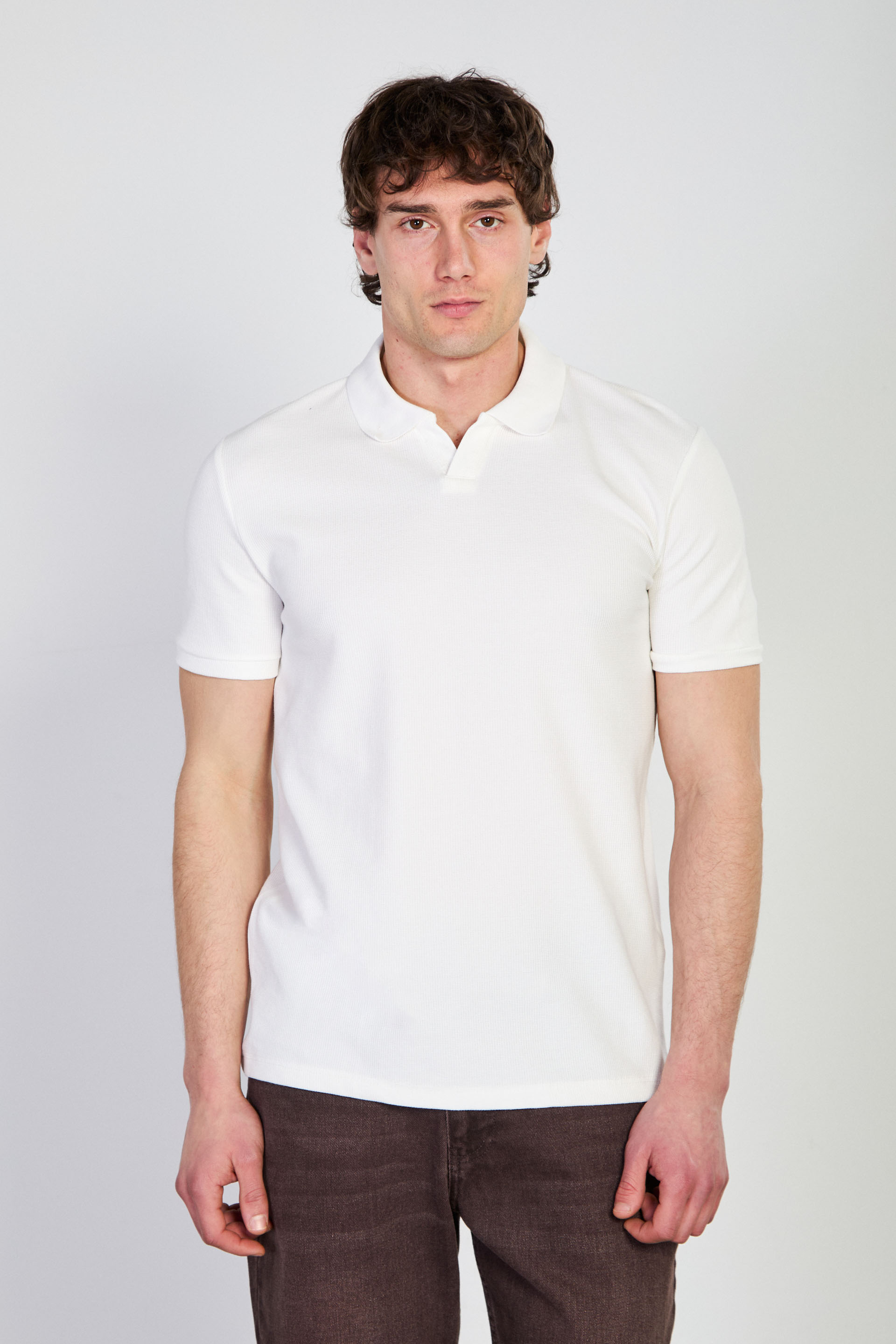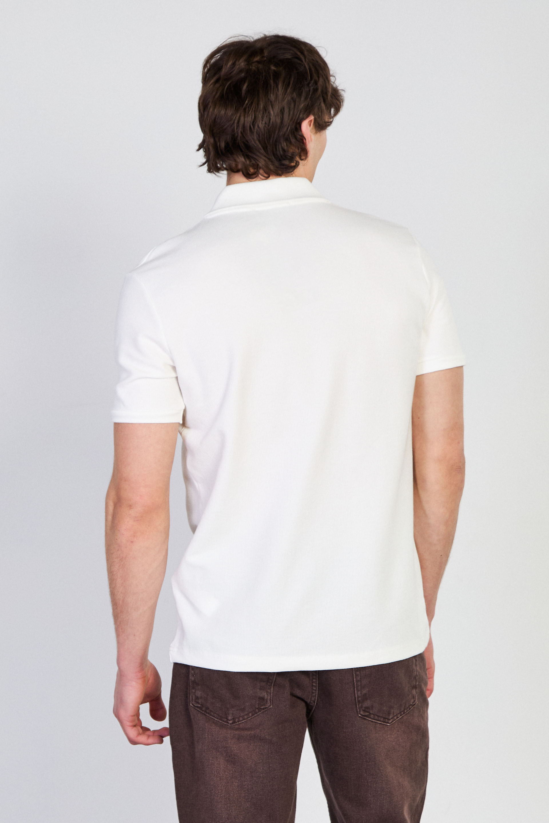 Erkek Waffle Yakalı T-Shirt - Ekru