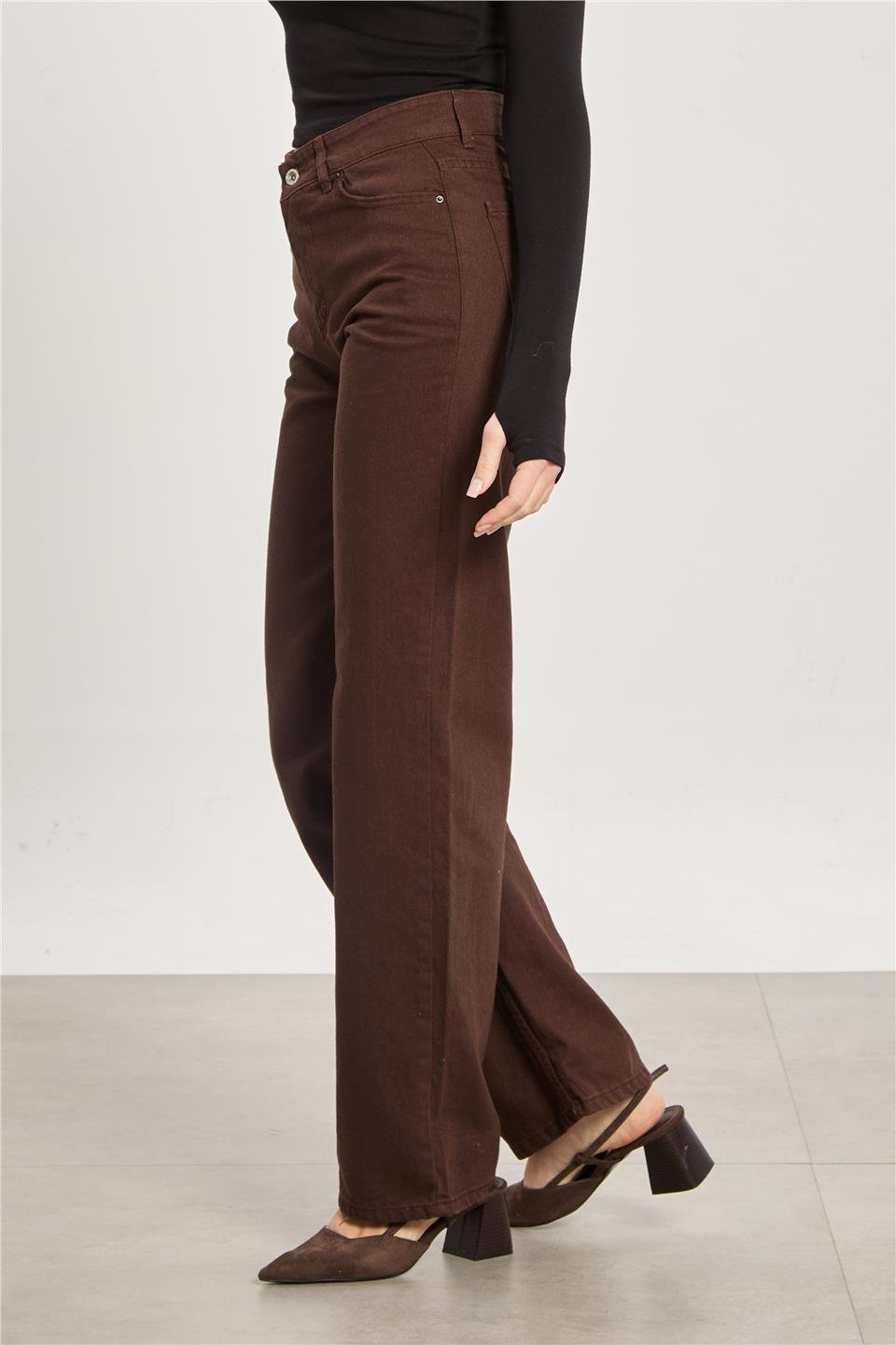 Kadın Wide Leg Gabardin Pantolon - Kahve