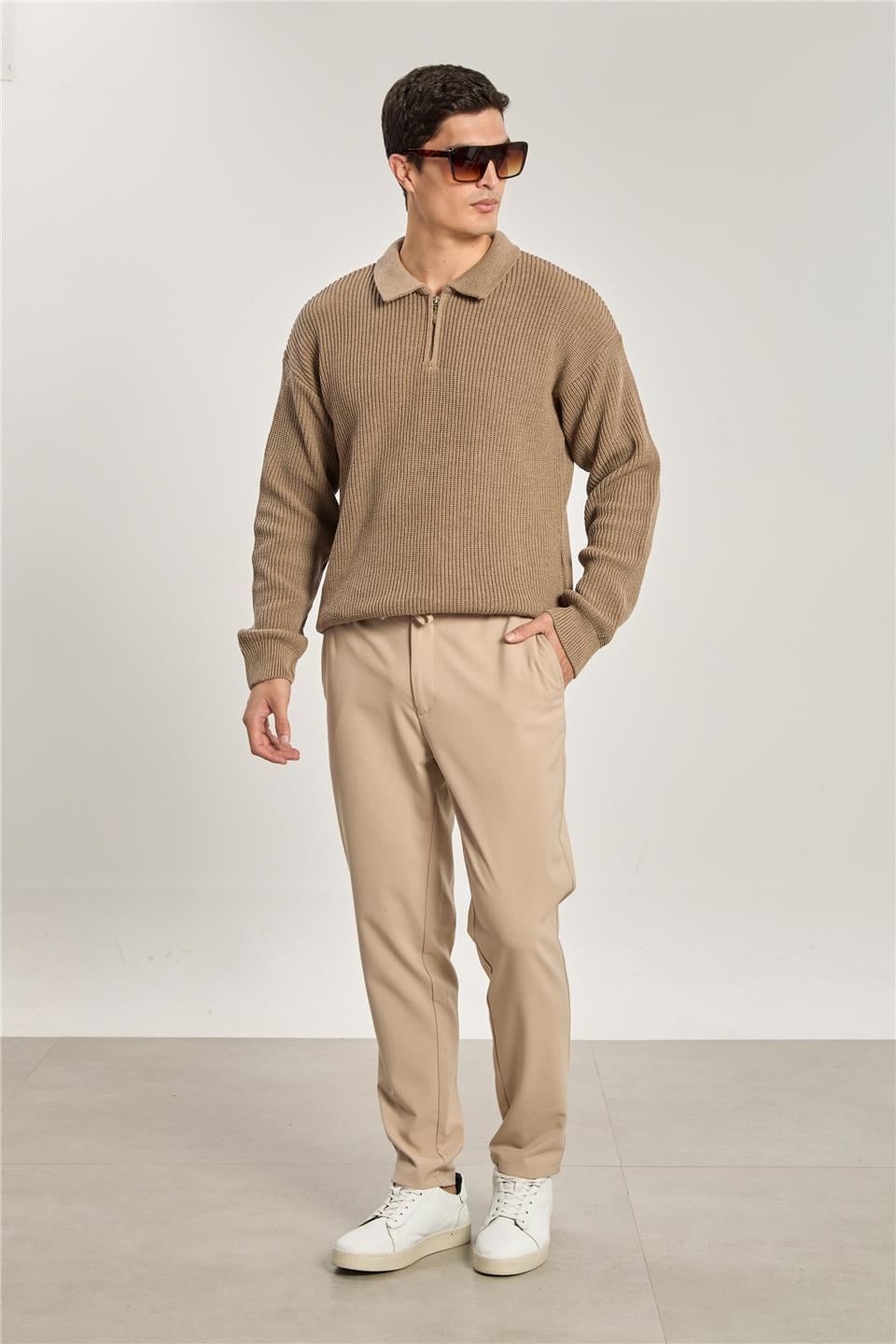 Erkek World Beli Lastikli Pantolon - Bej
