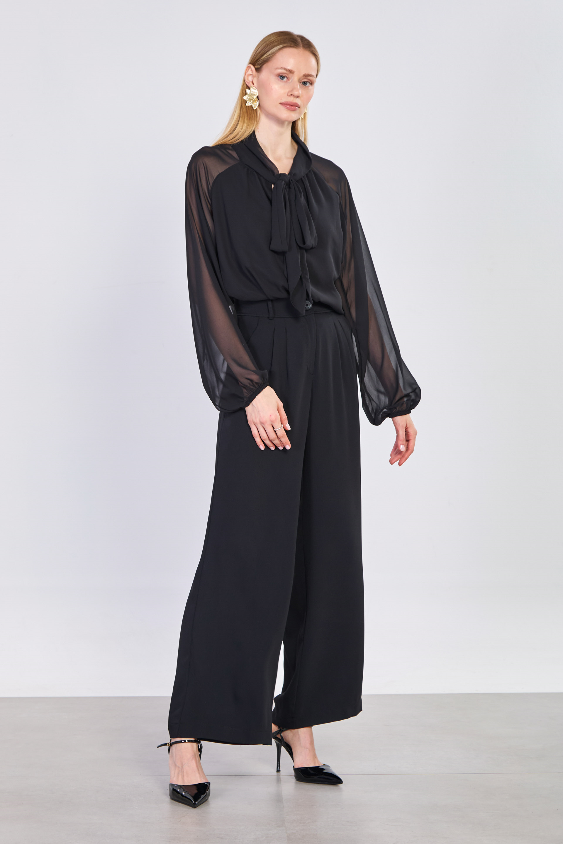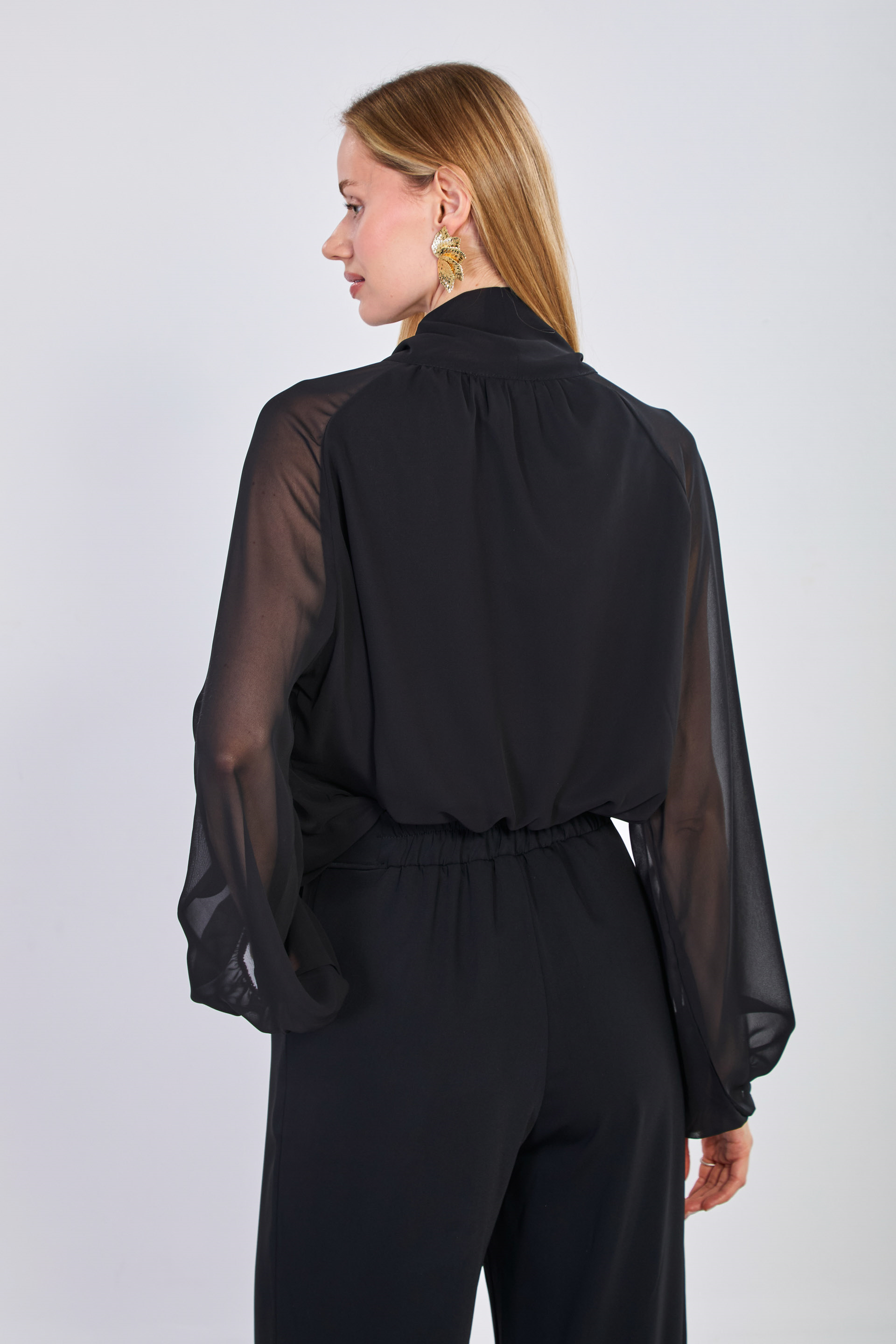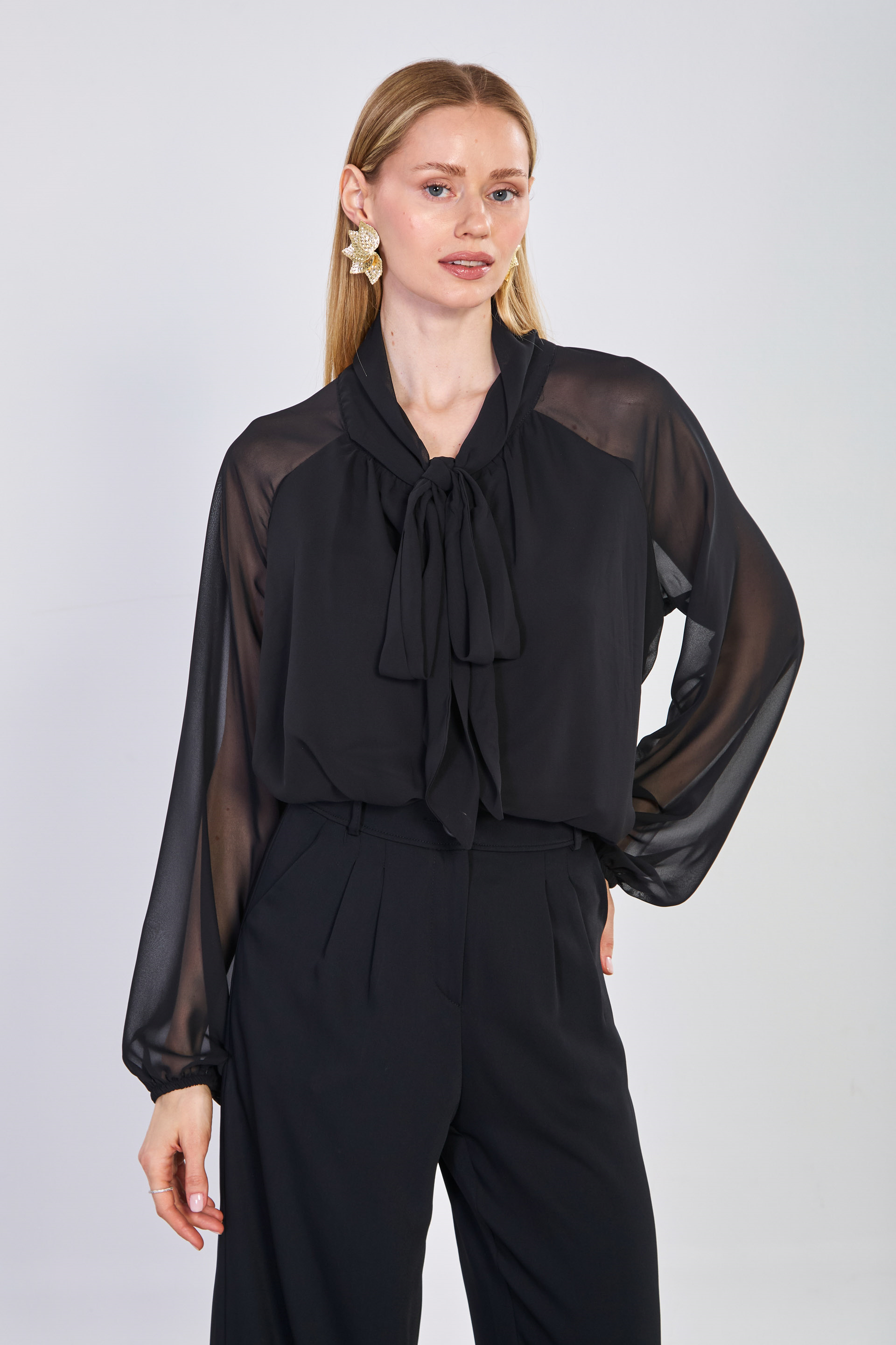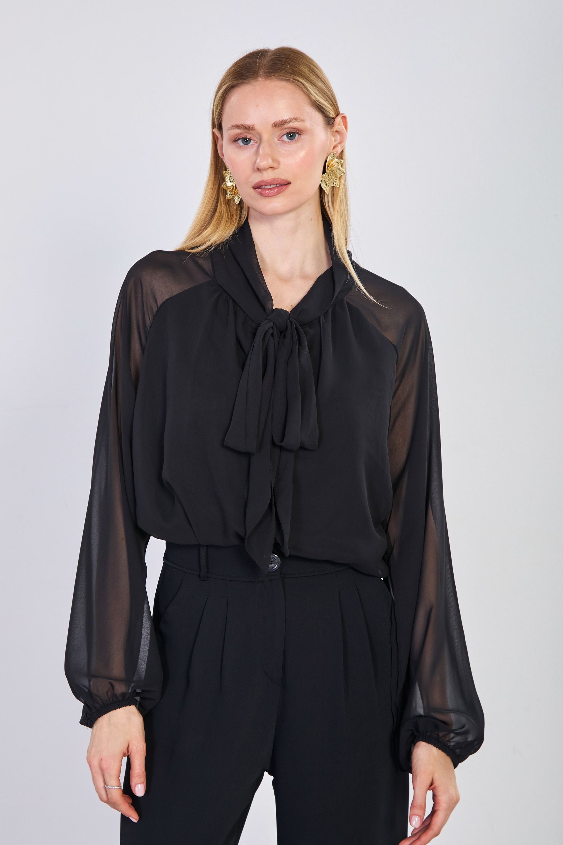 Kadın Yaka Bağlamalı Şifon Bluz - Siyah