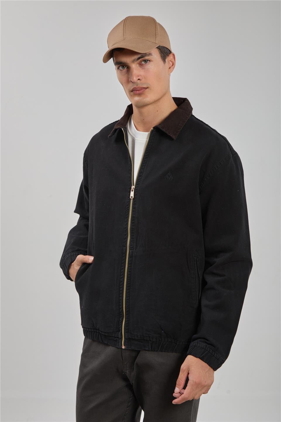 Erkek Yaka Detay Gabardin Ceket - Siyah