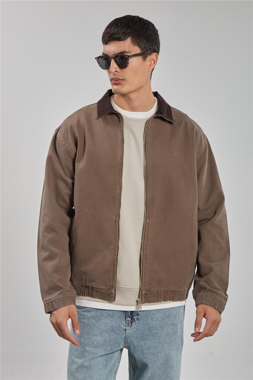 Erkek Yaka Detay Gabardin Ceket - Vizon