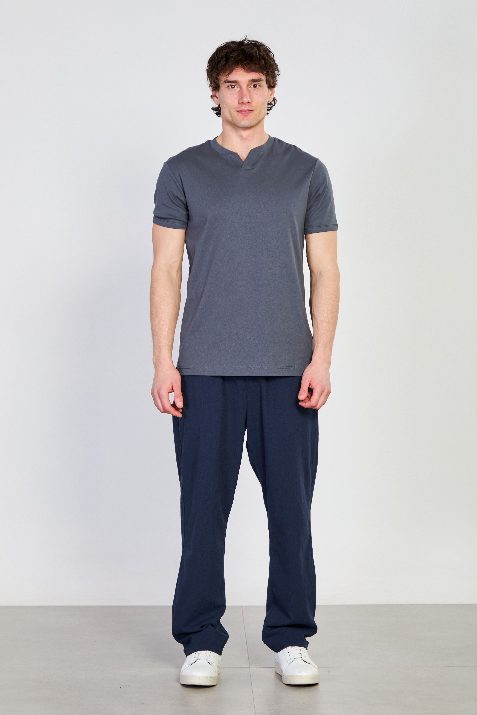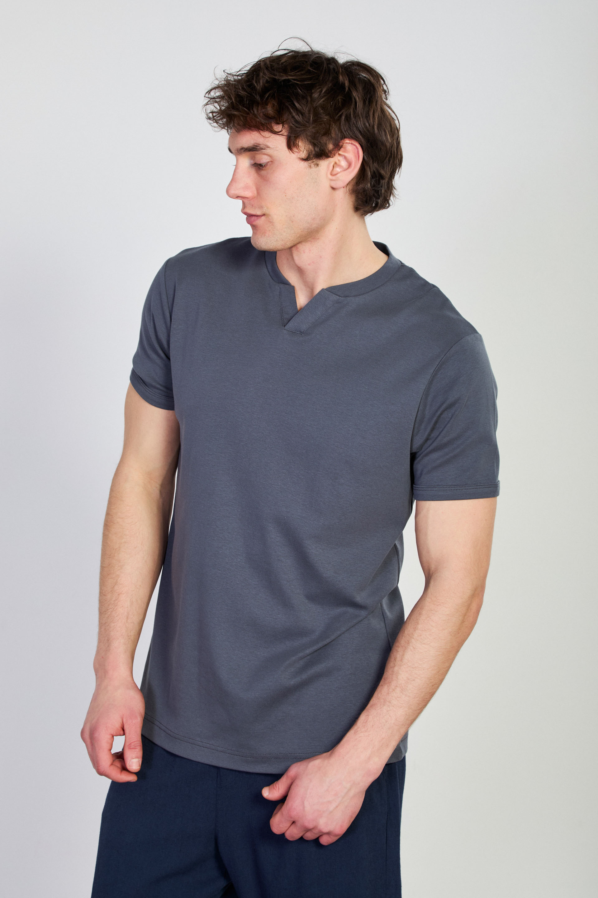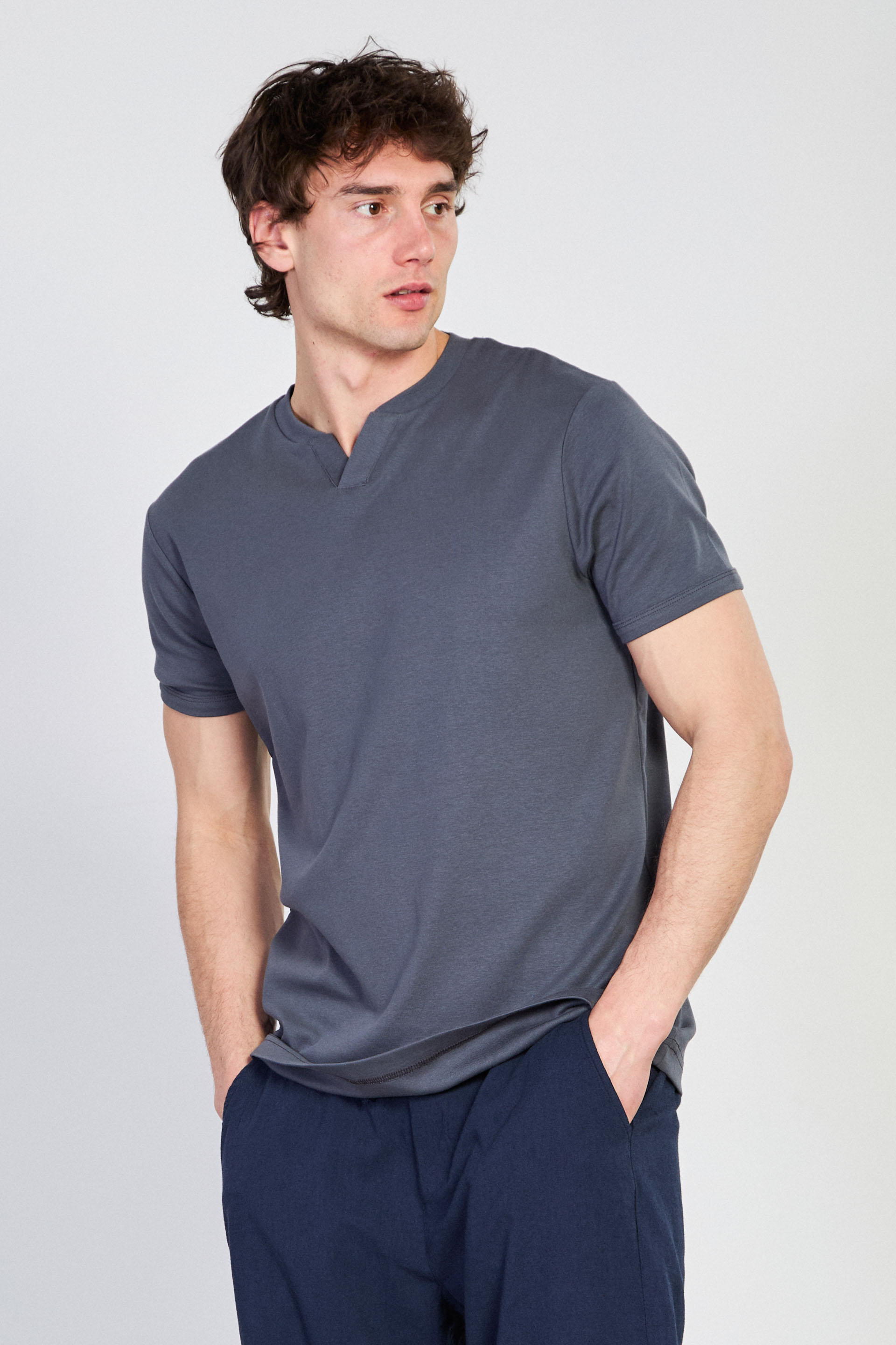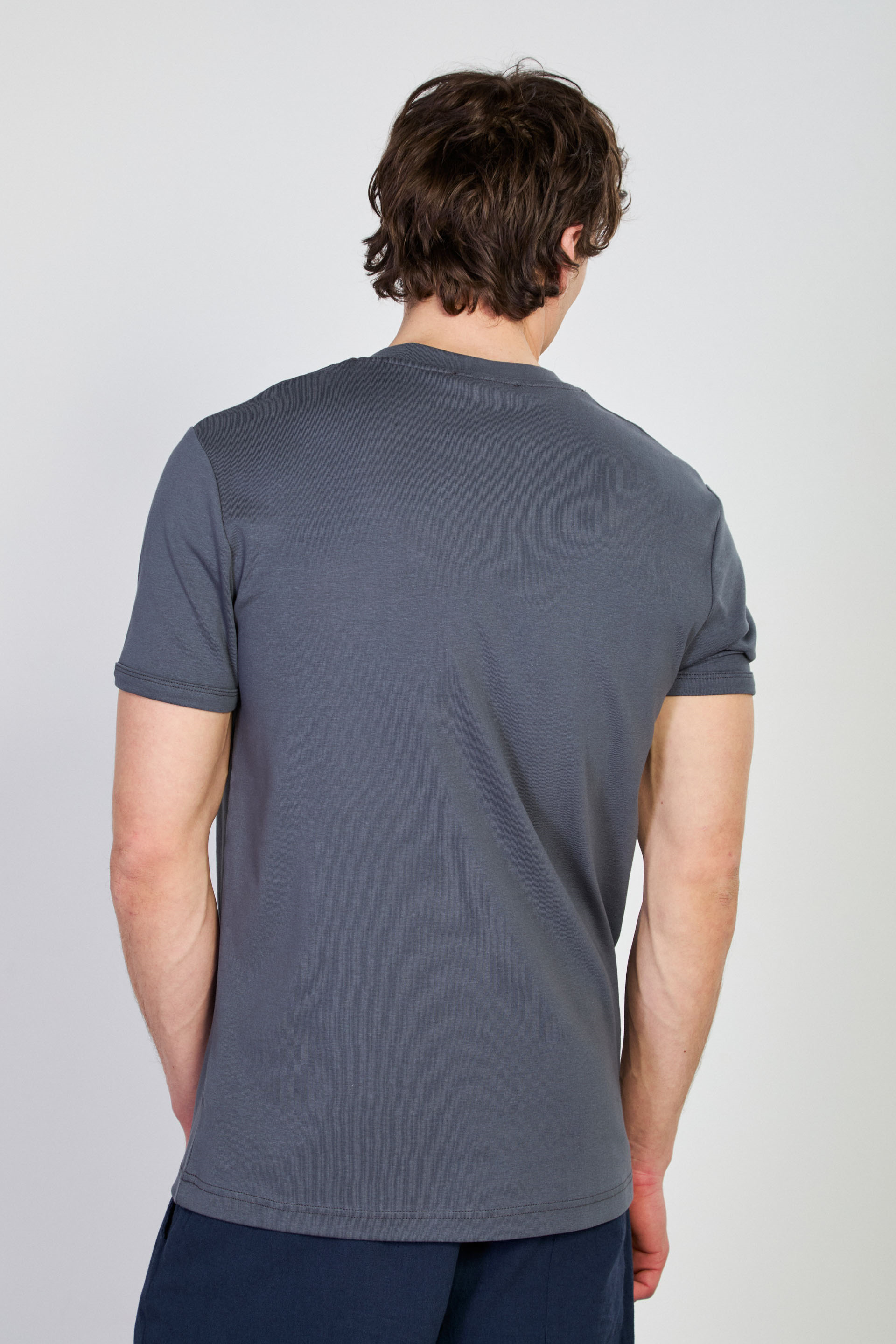 Erkek Yaka Detay Ribana T-Shirt - Antrasit