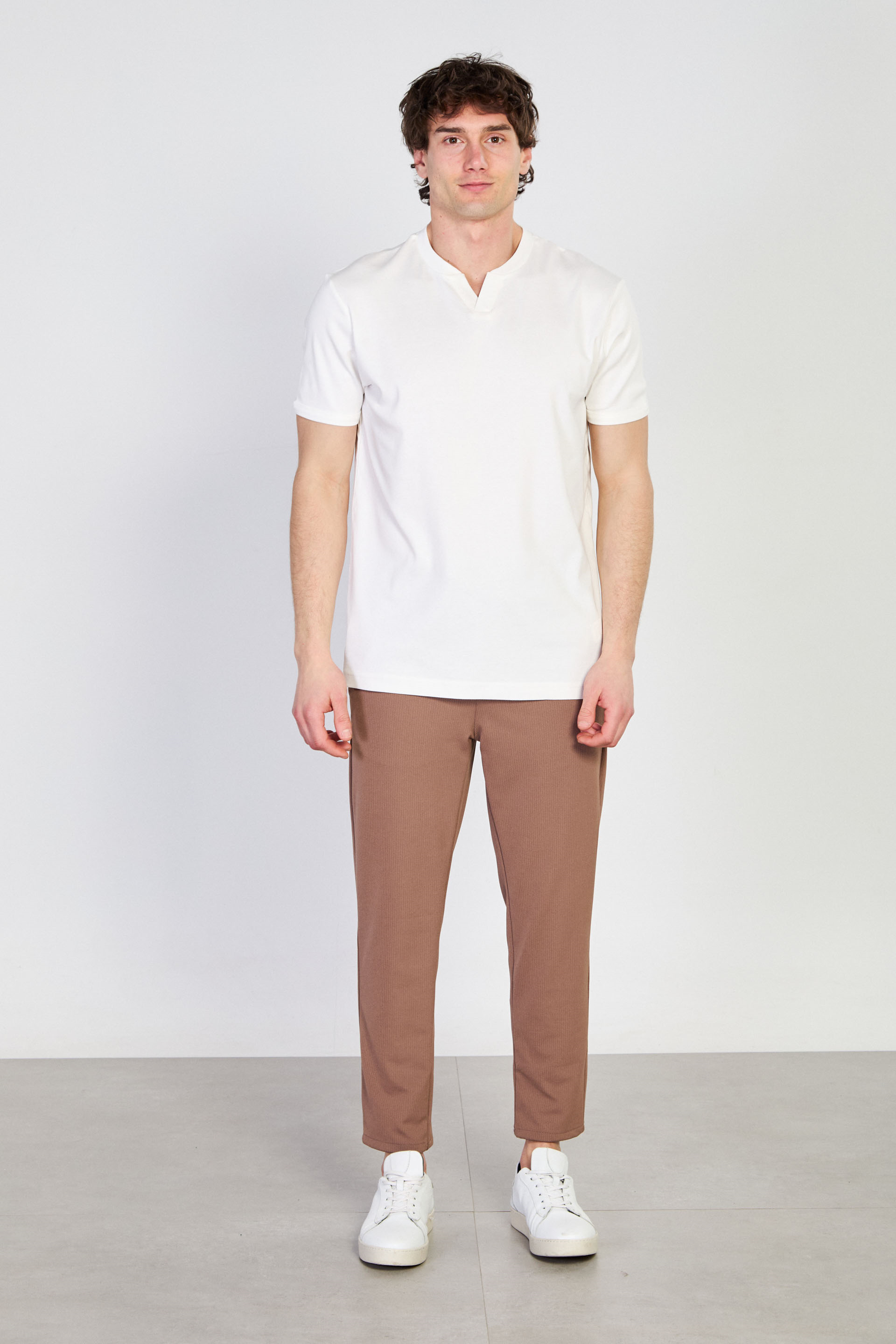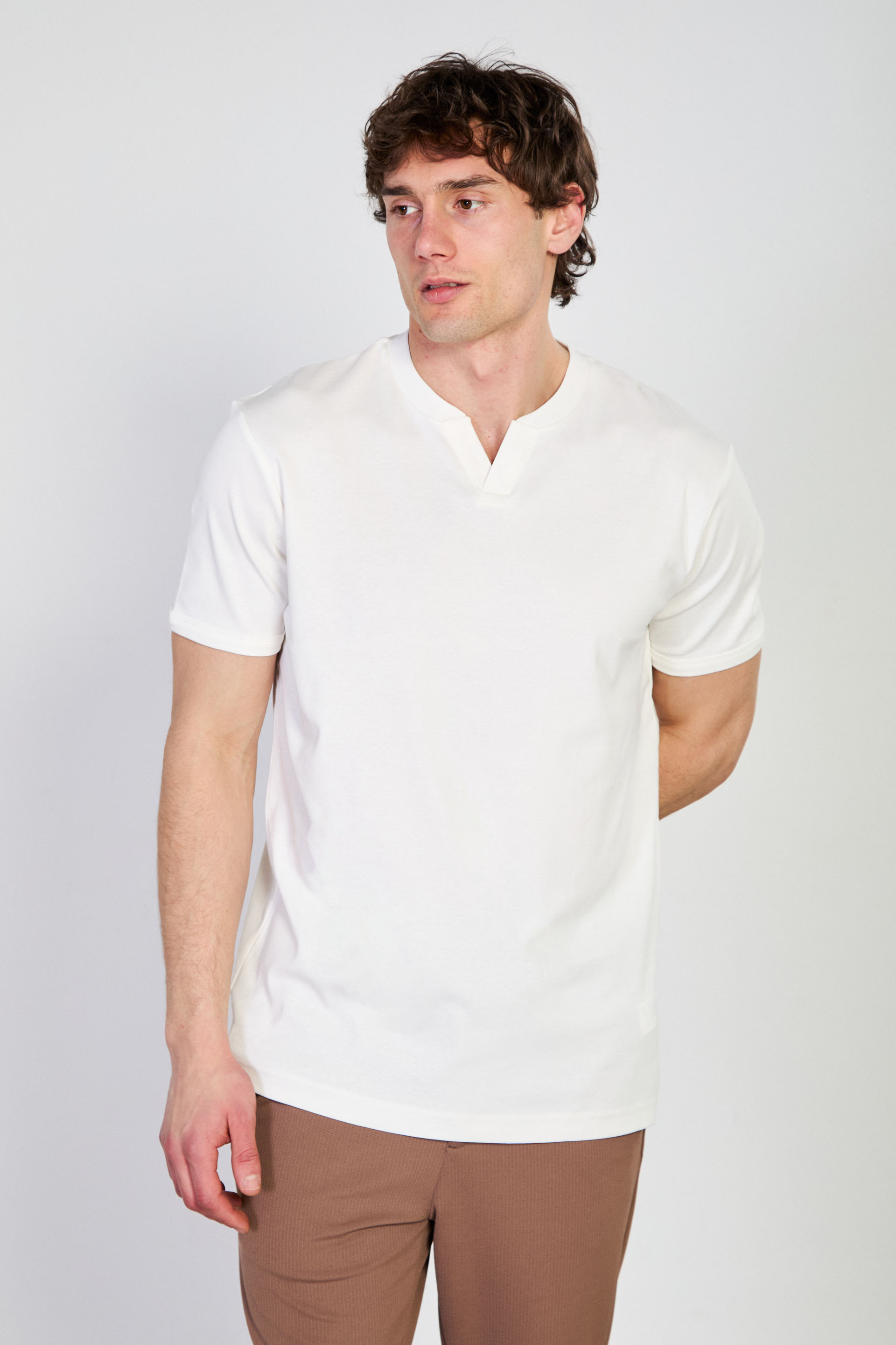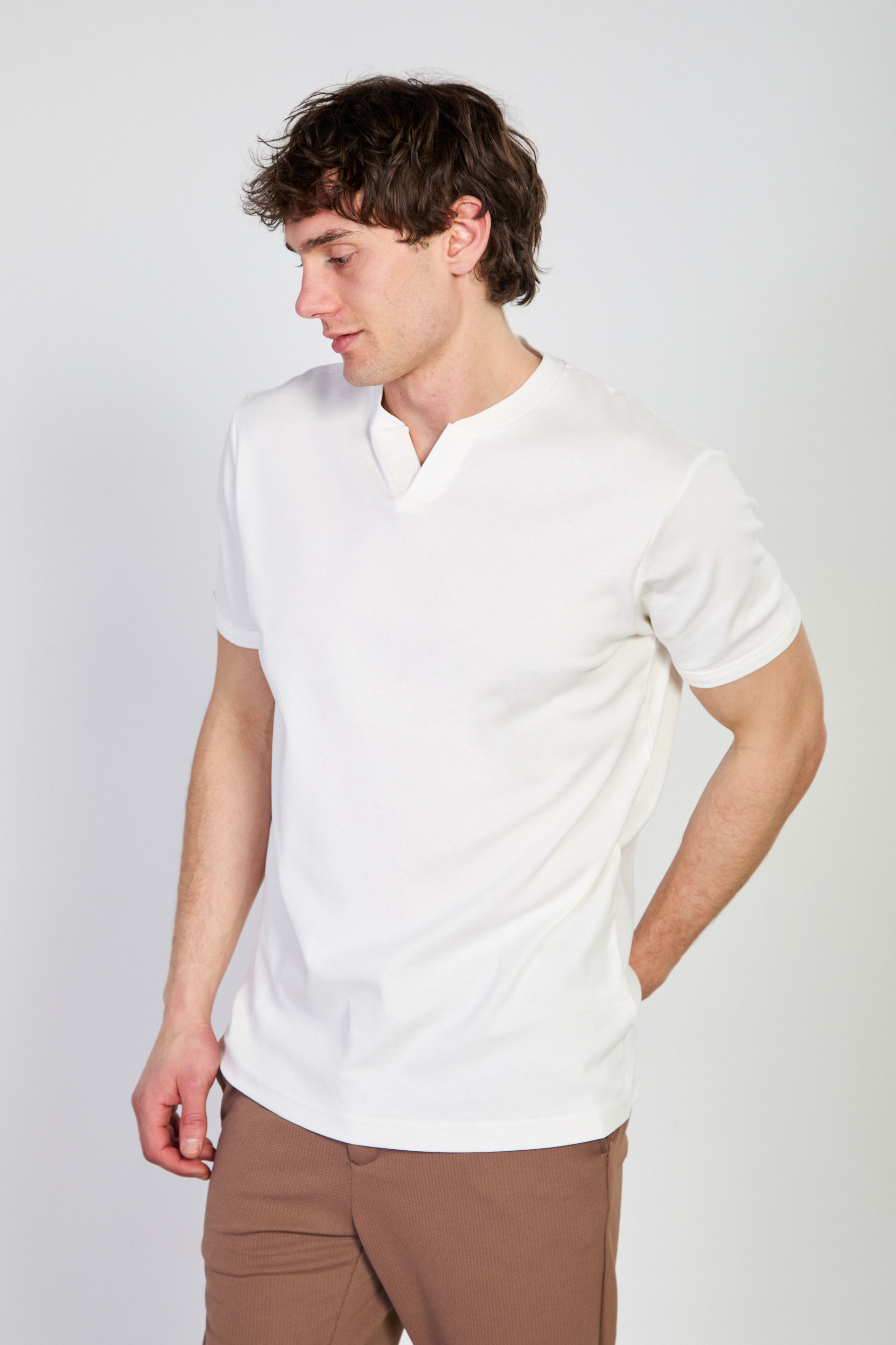 Erkek Yaka Detay Ribana T-Shirt - Beyaz