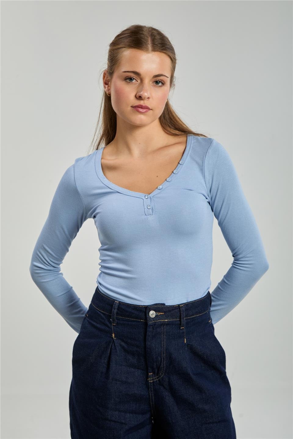Kadın Yaka Düğmeli Uzun Kol Body - Mavi