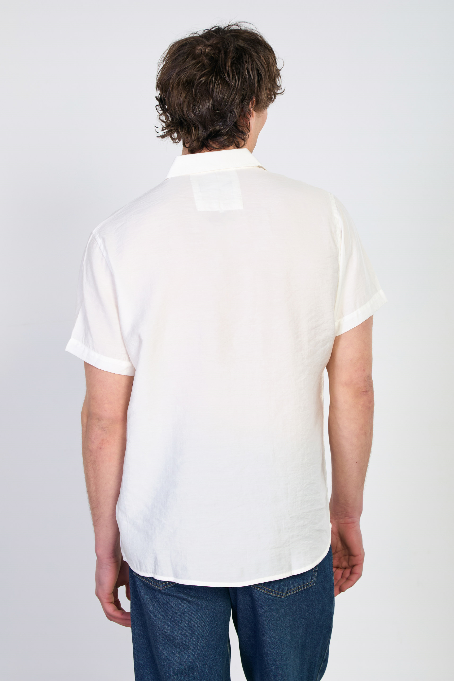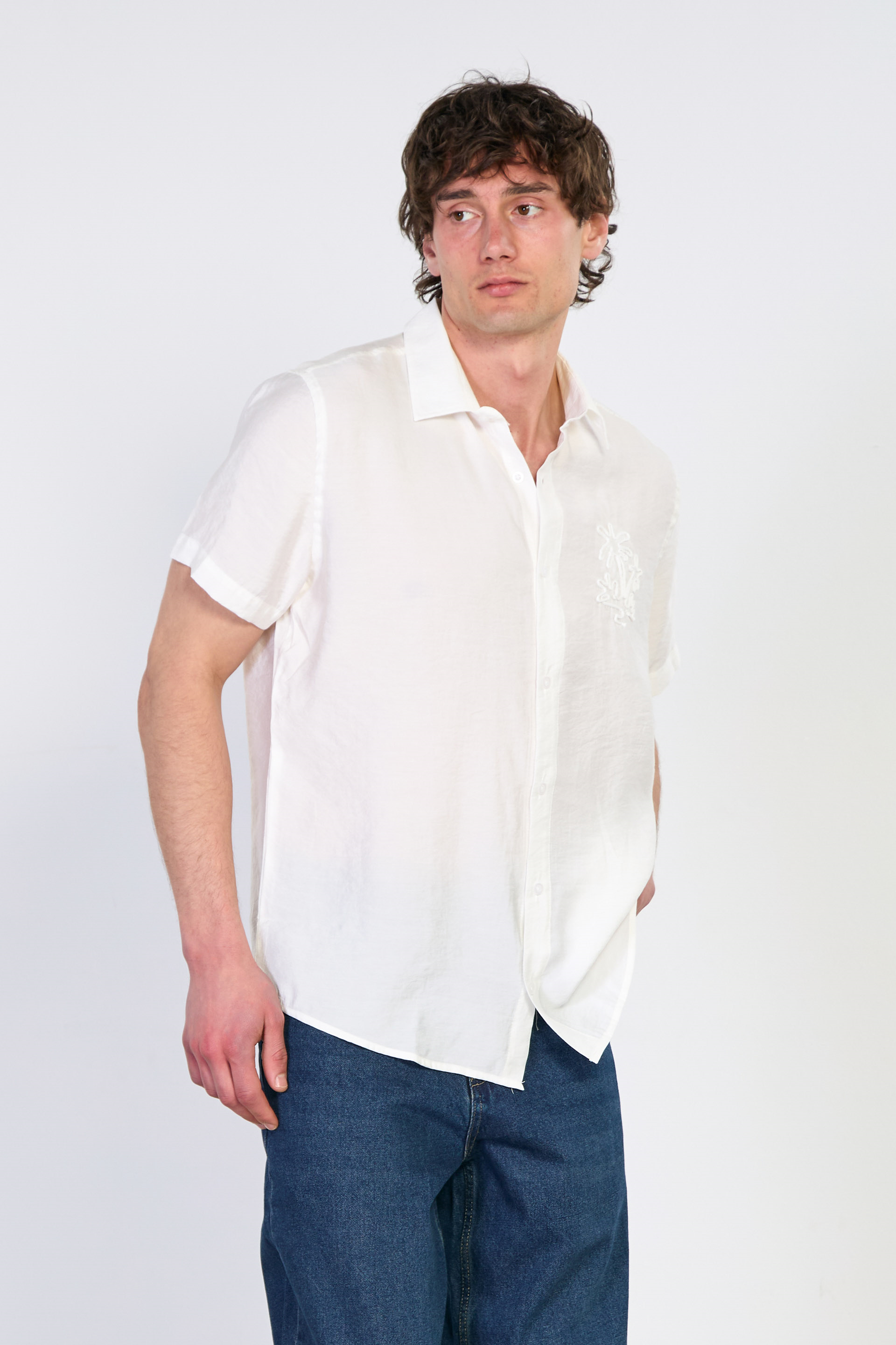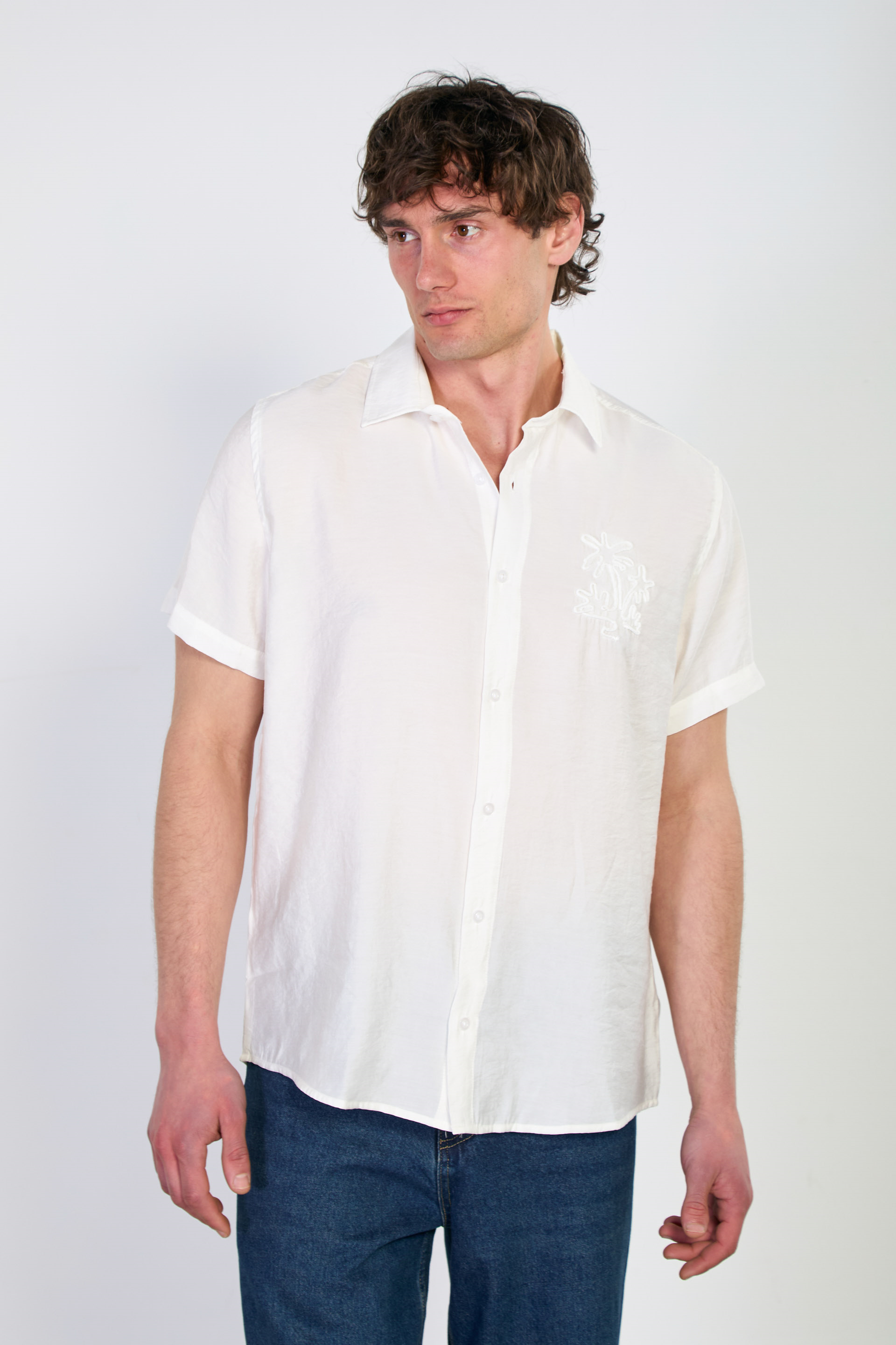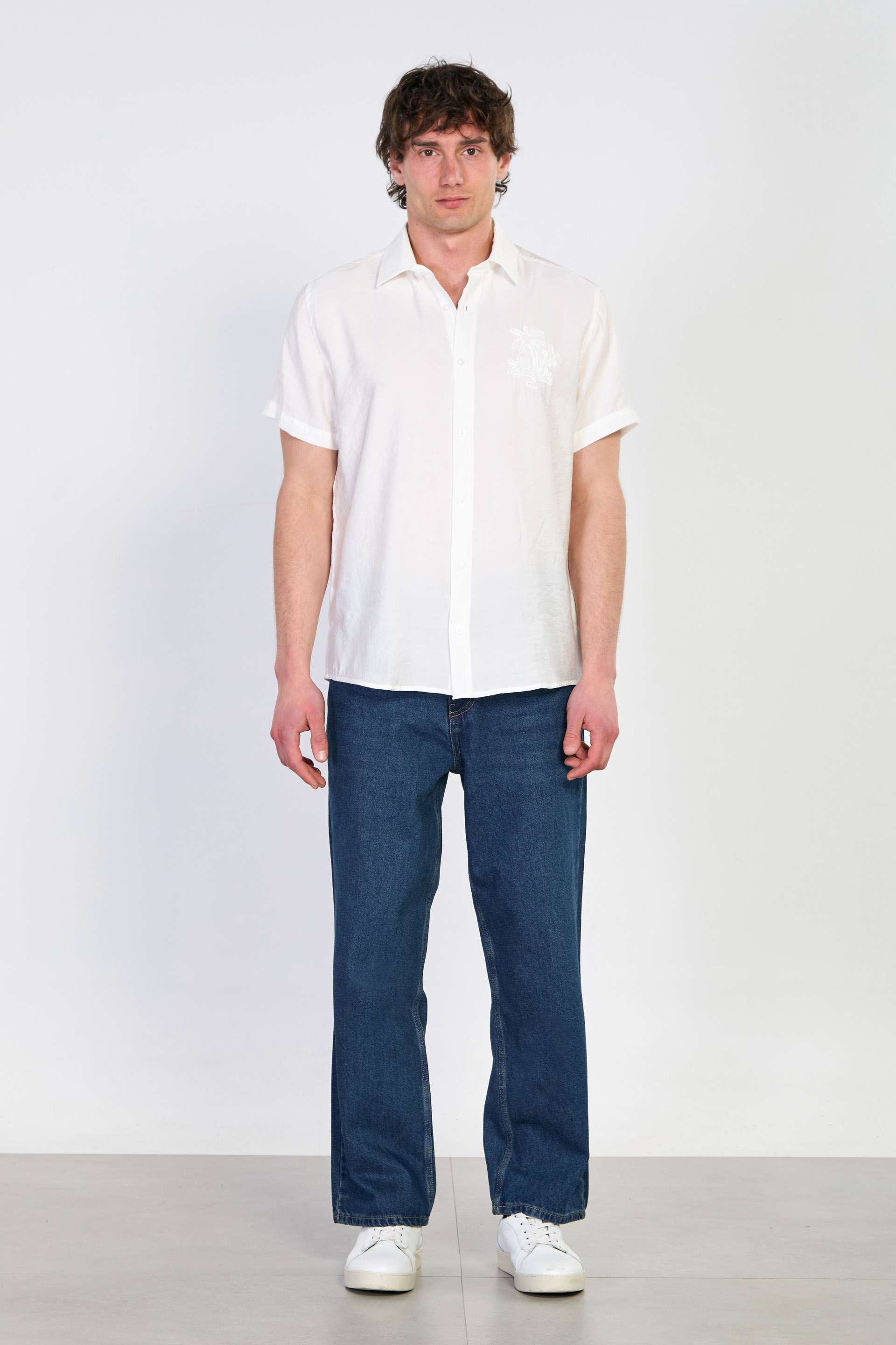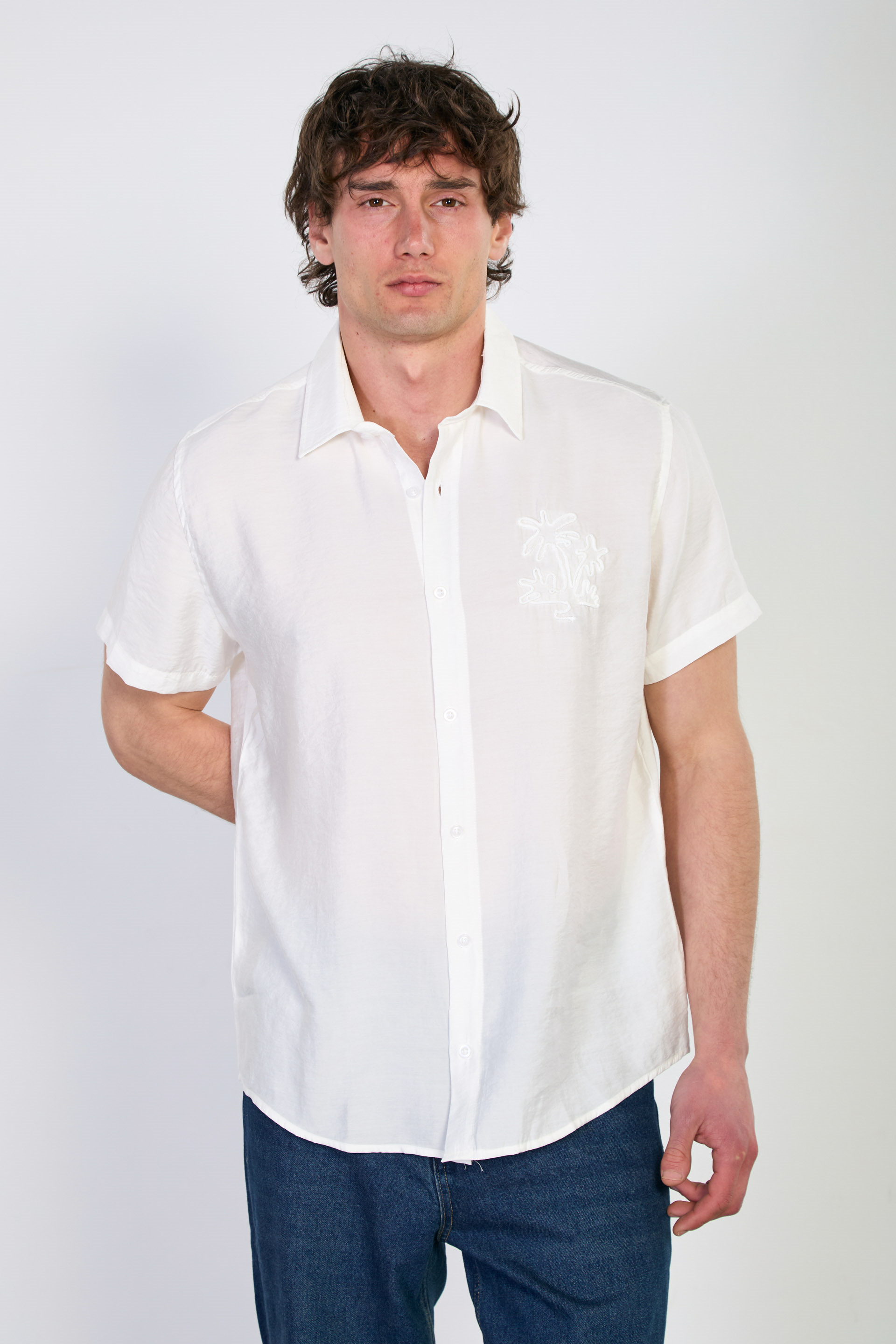 Erkek Yaka İşlemeli Kısa Kollu Gömlek - Beyaz