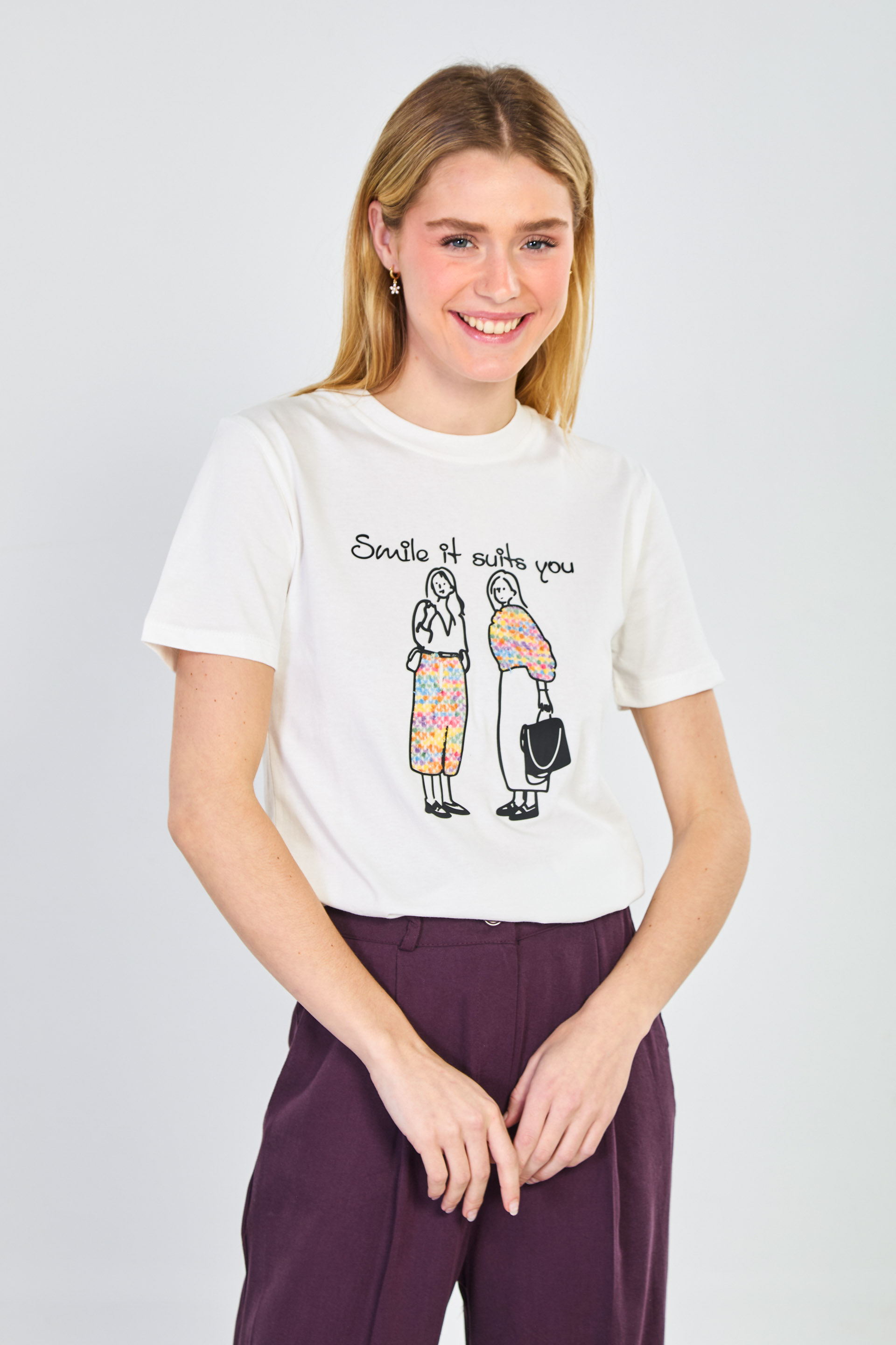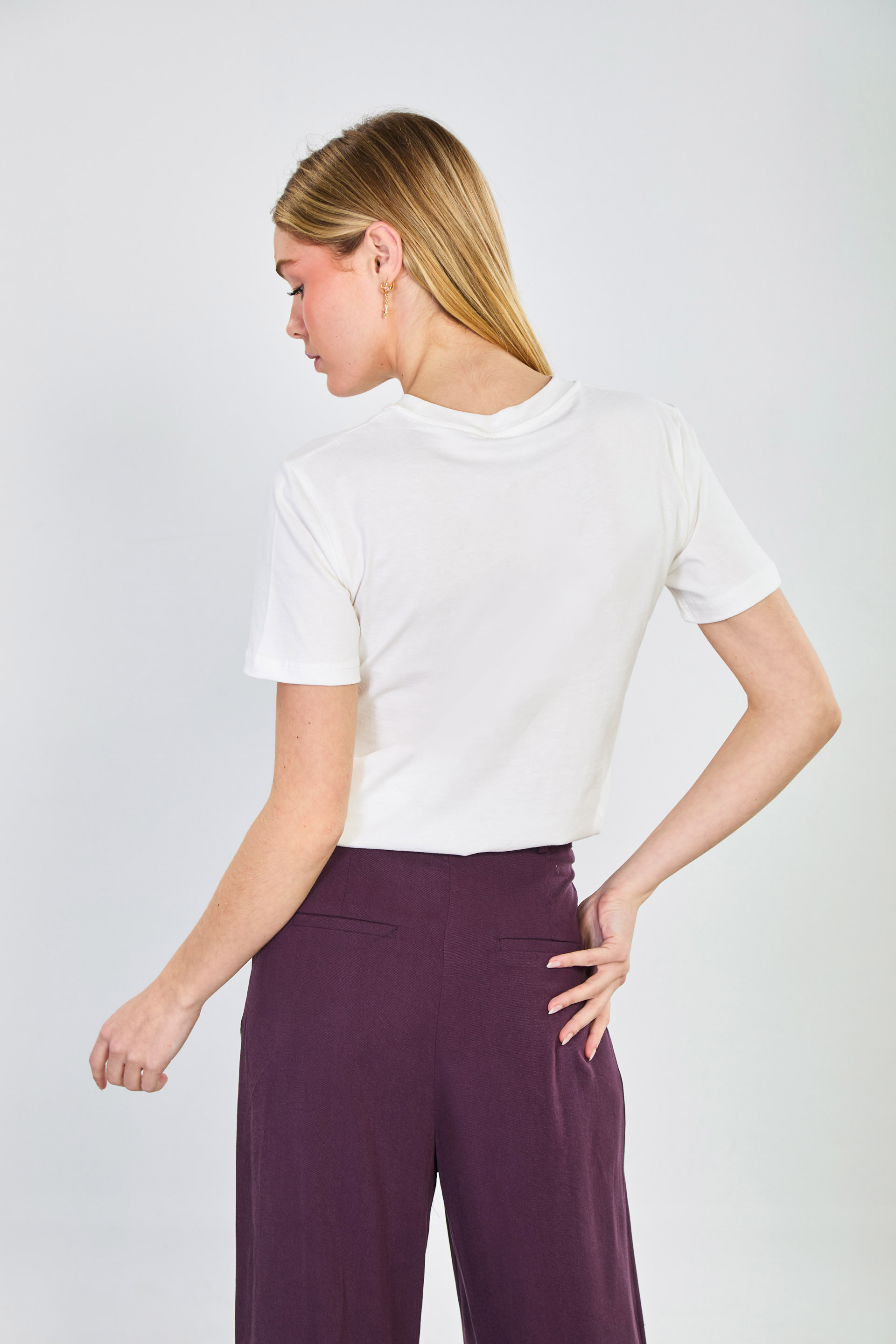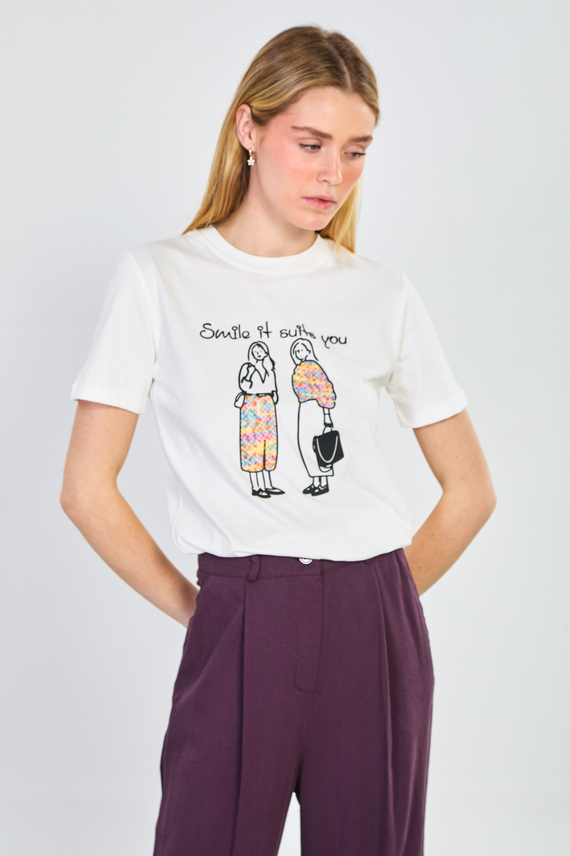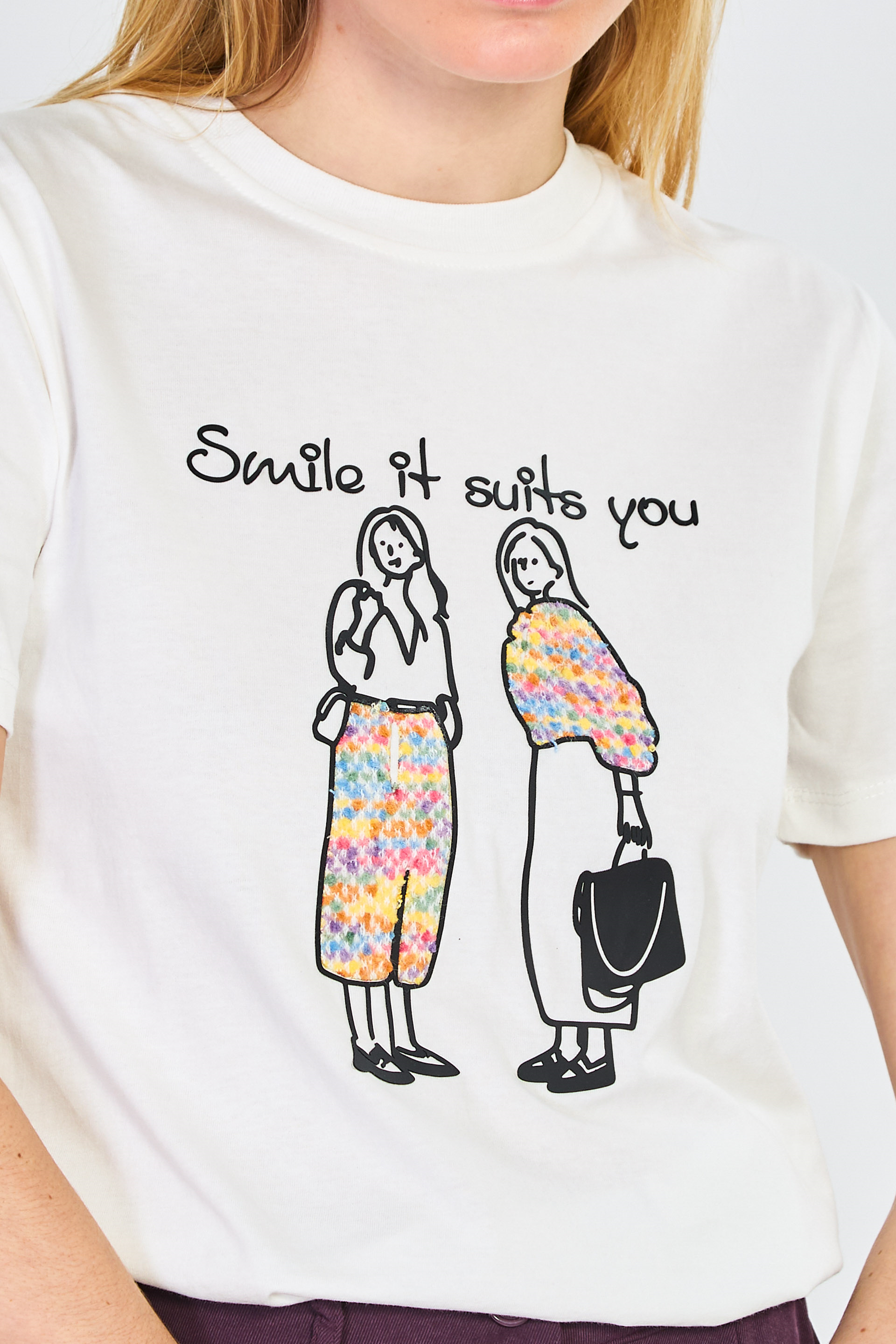 Kadın Yaka Kontrastlı Baskılı T-Shirt - Ekru