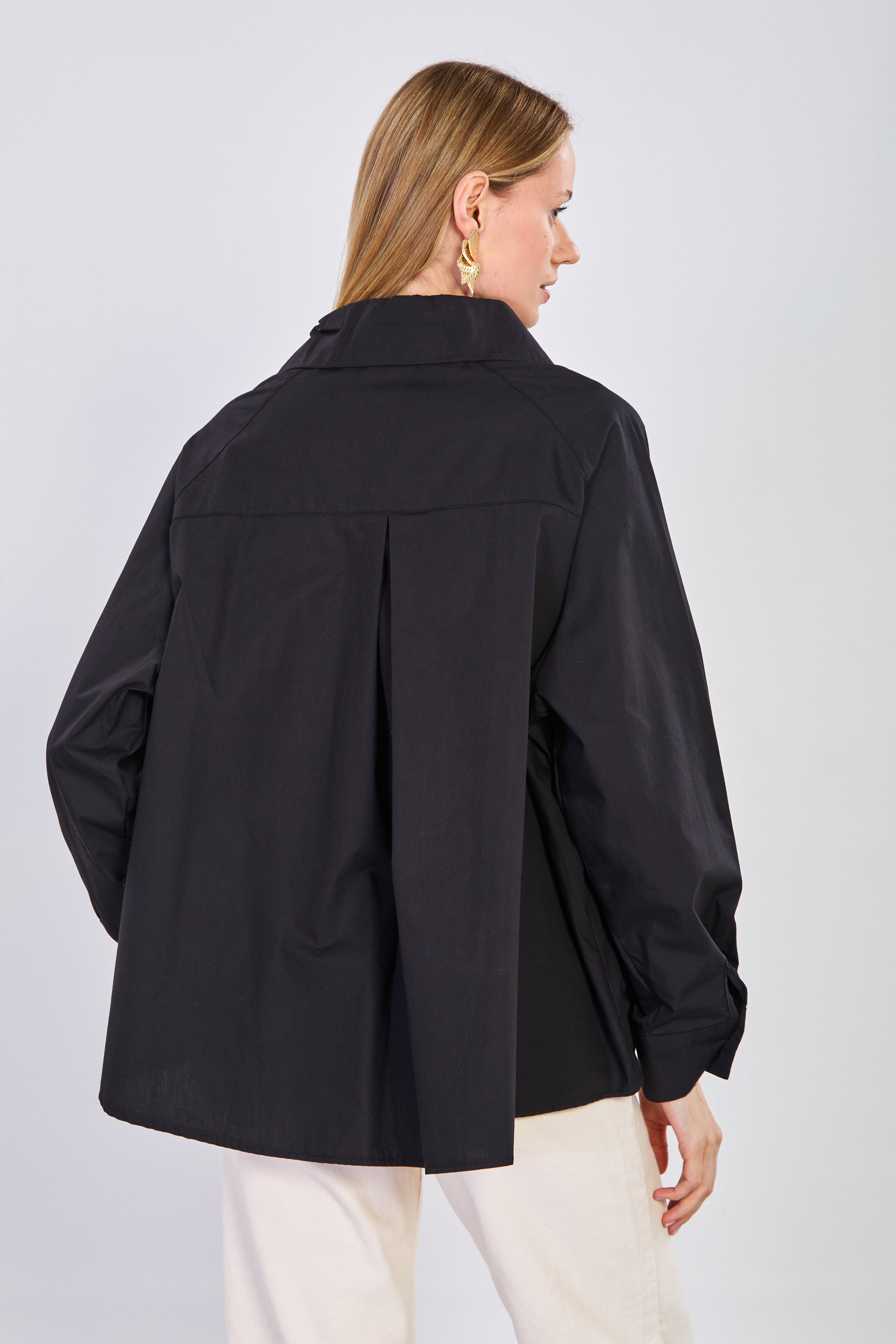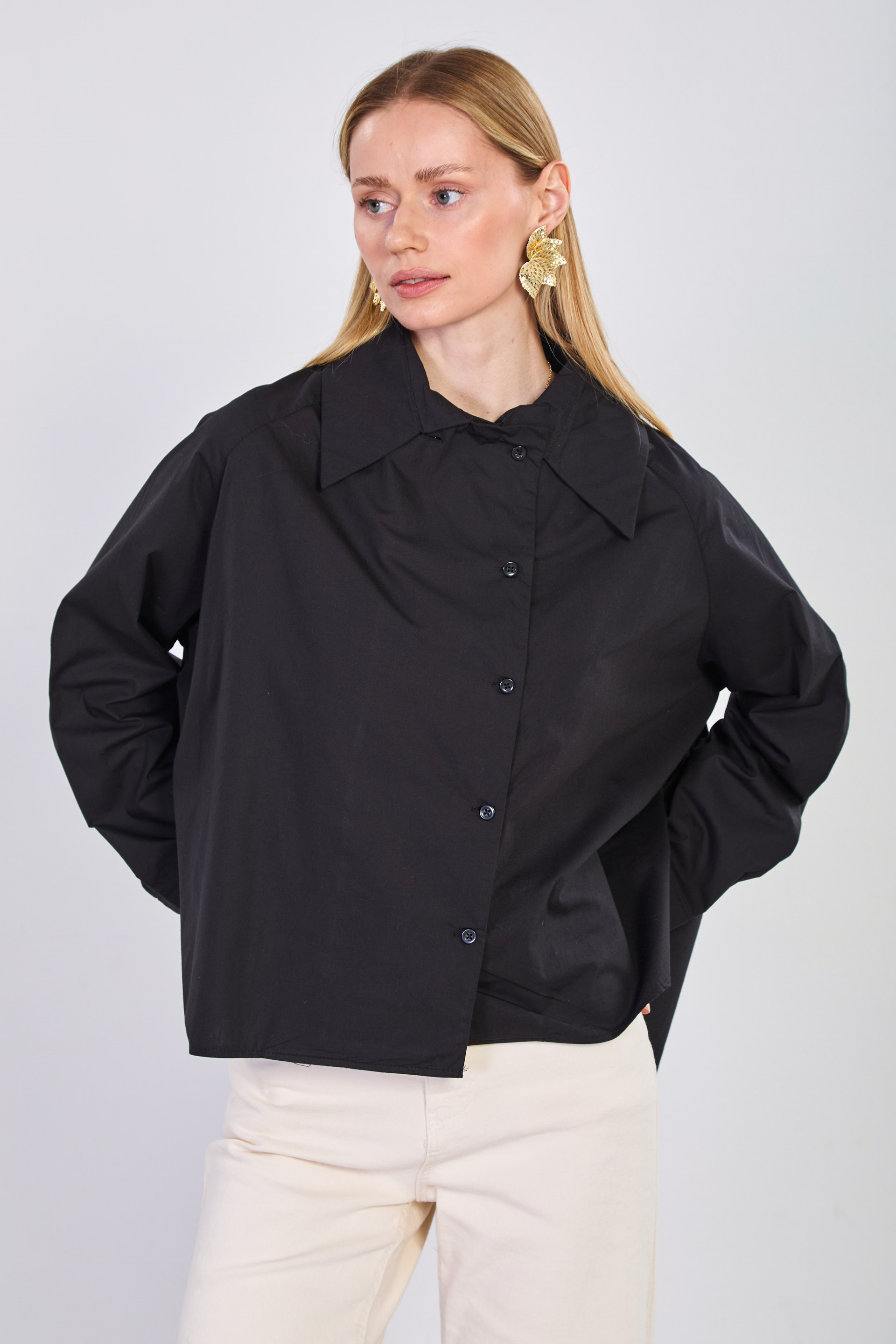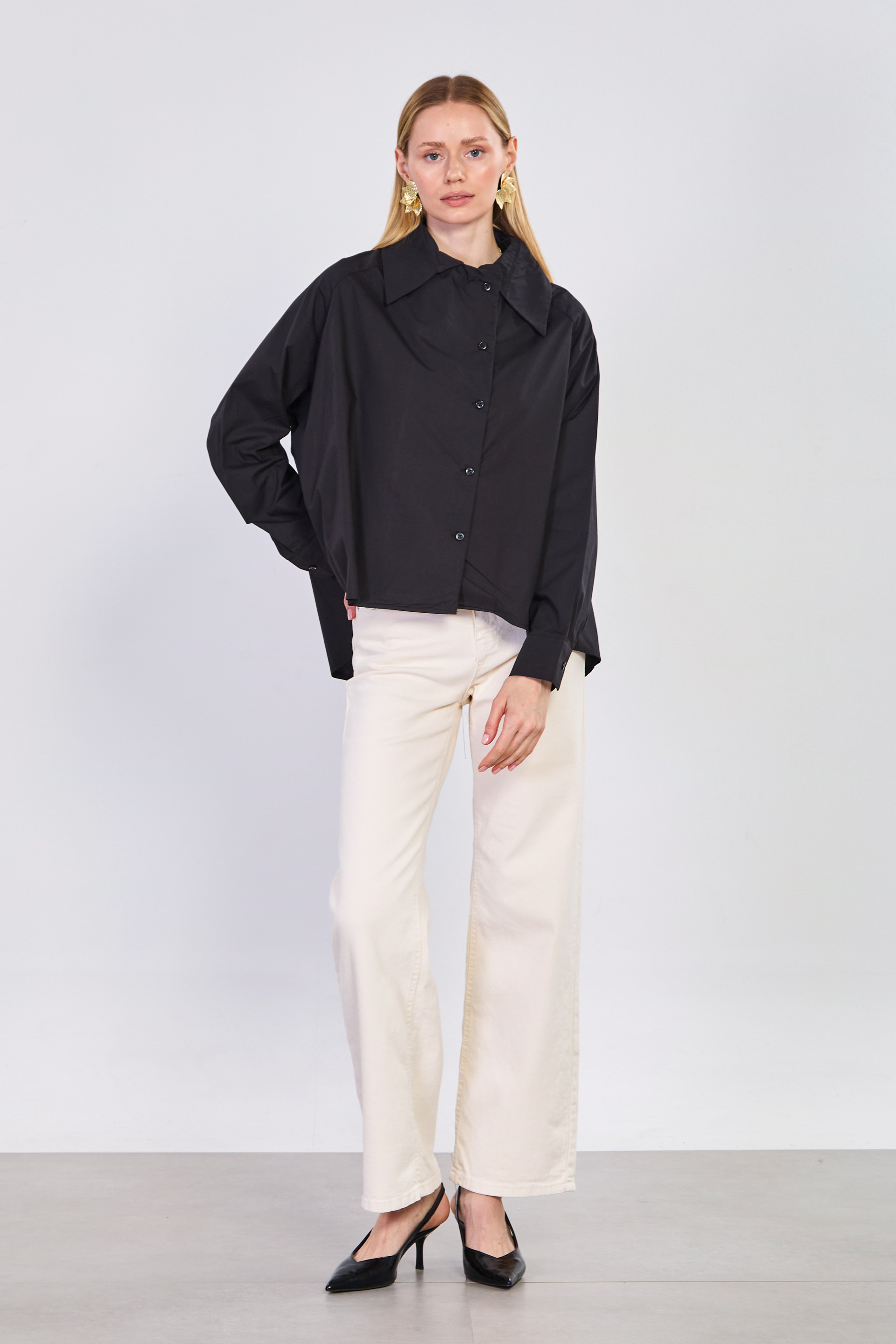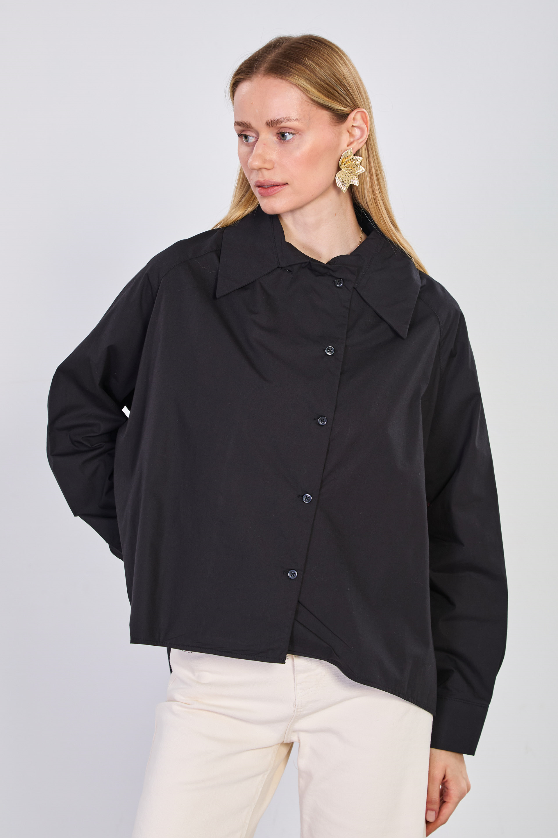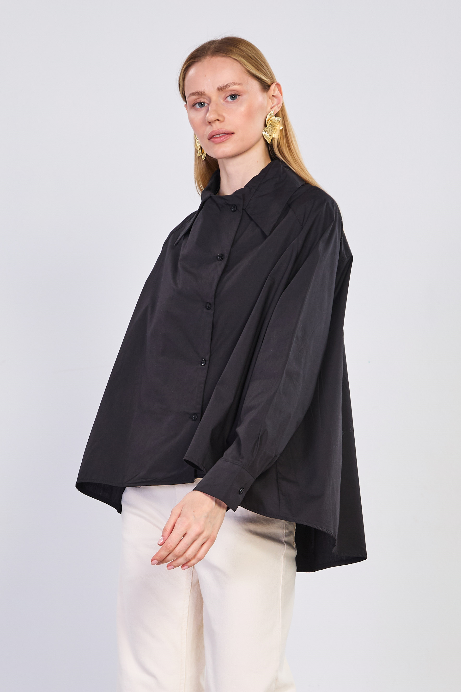 Yandan düğmeli sivri yaka oversize gömlek-8333 Siyah