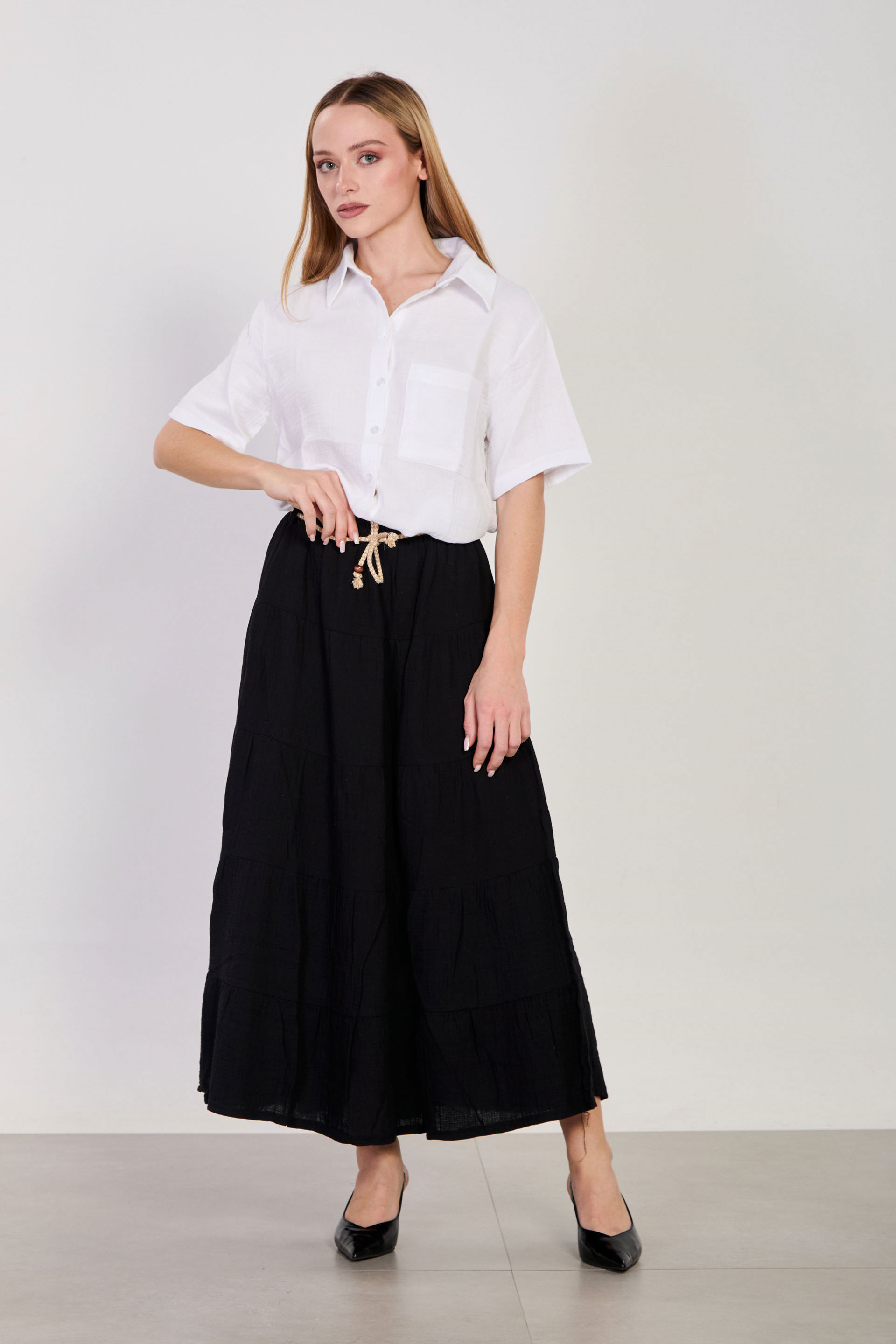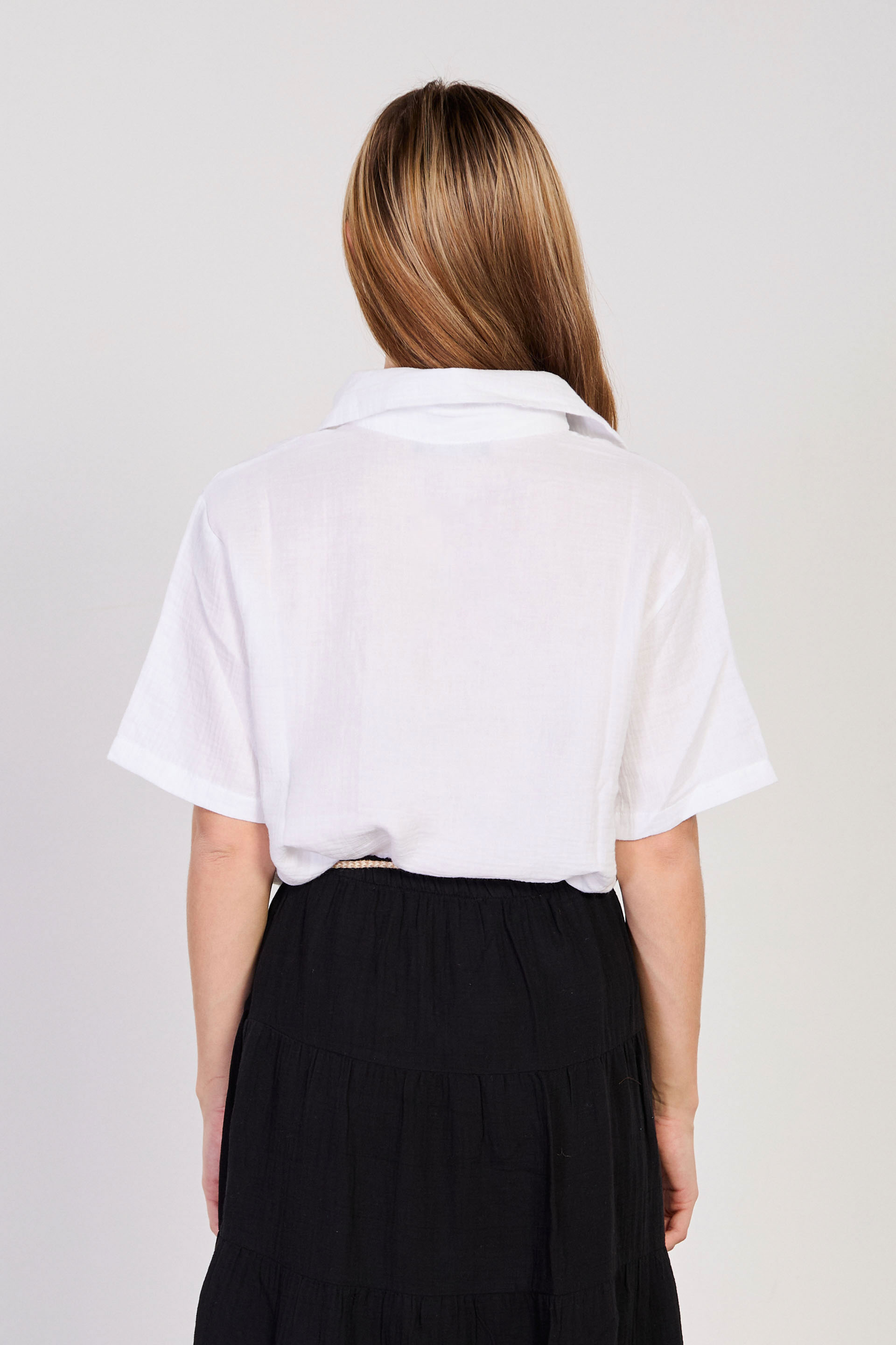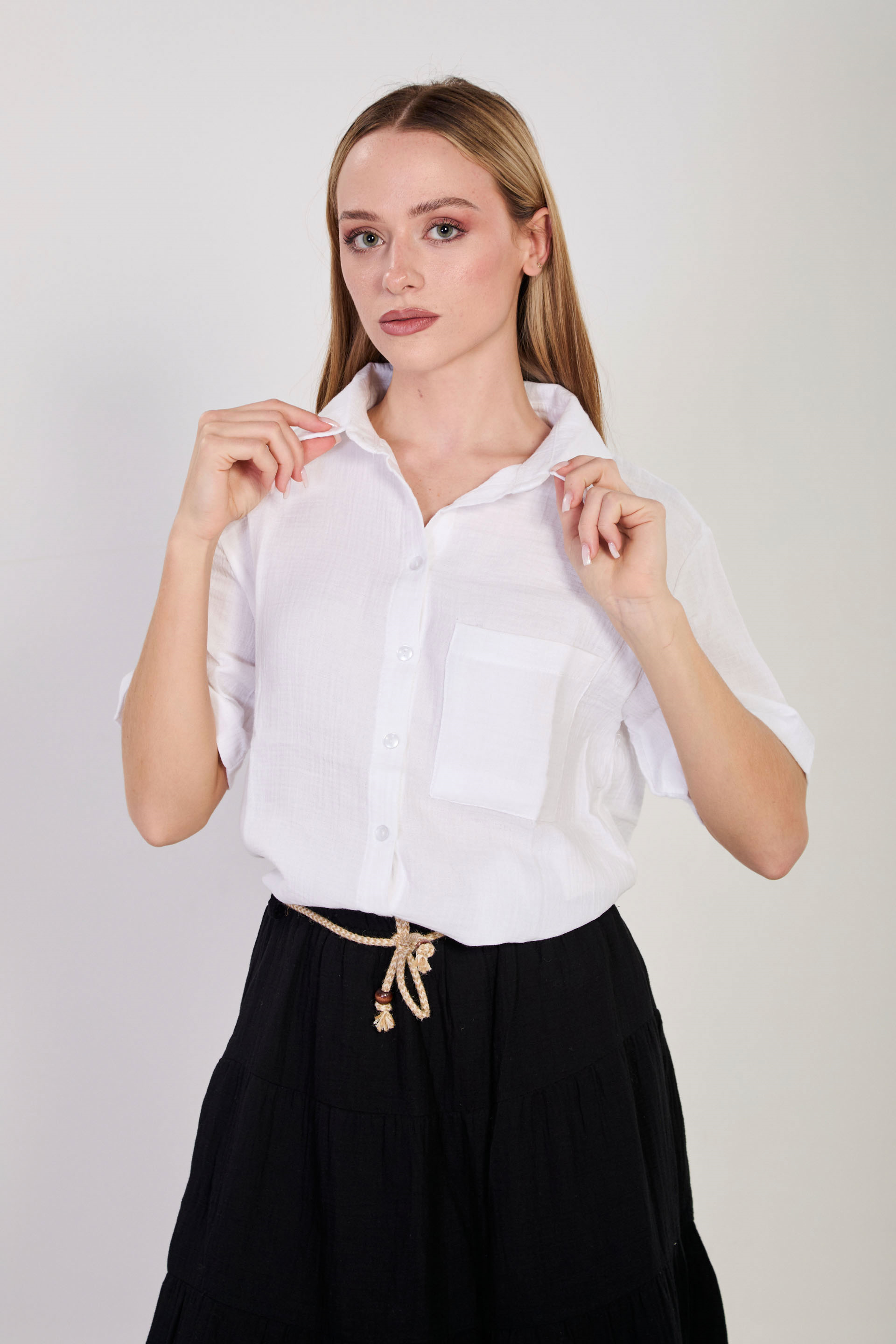Kadın Yanı Yırtmaçlı Tek Cep Kısa Kol Gömlek - Beyaz