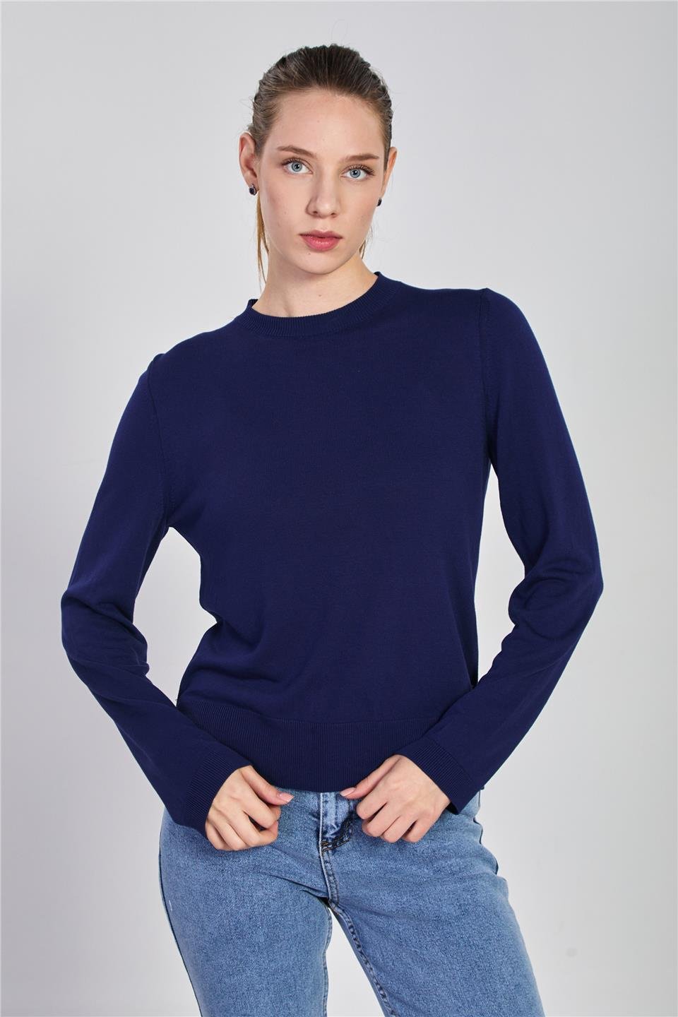 Kadın Yanları Yırtmaçlı İnce Triko Kazak - Lacivert