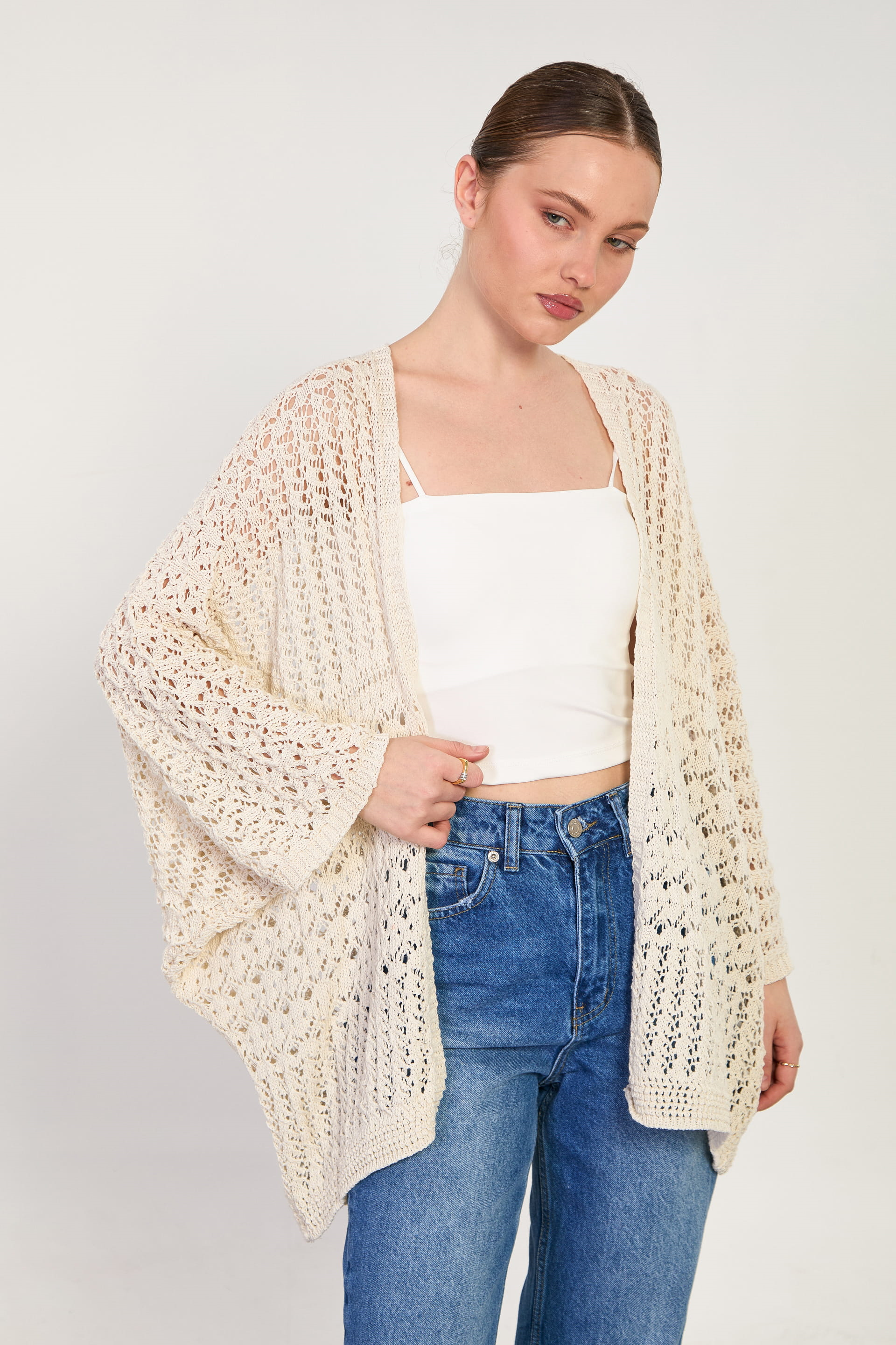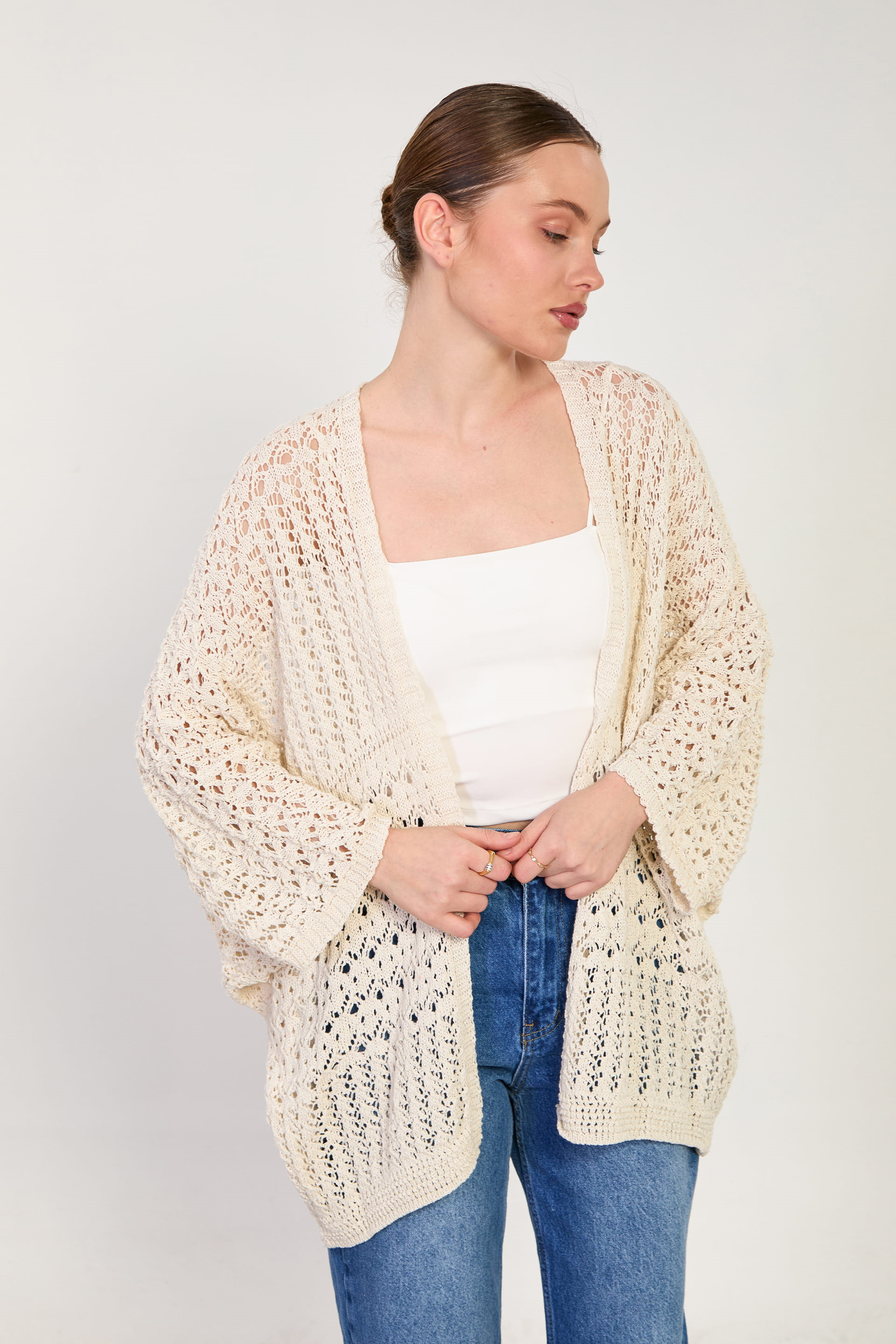 Kadın Yarasa Kol Ajurlu Hırka - Natural