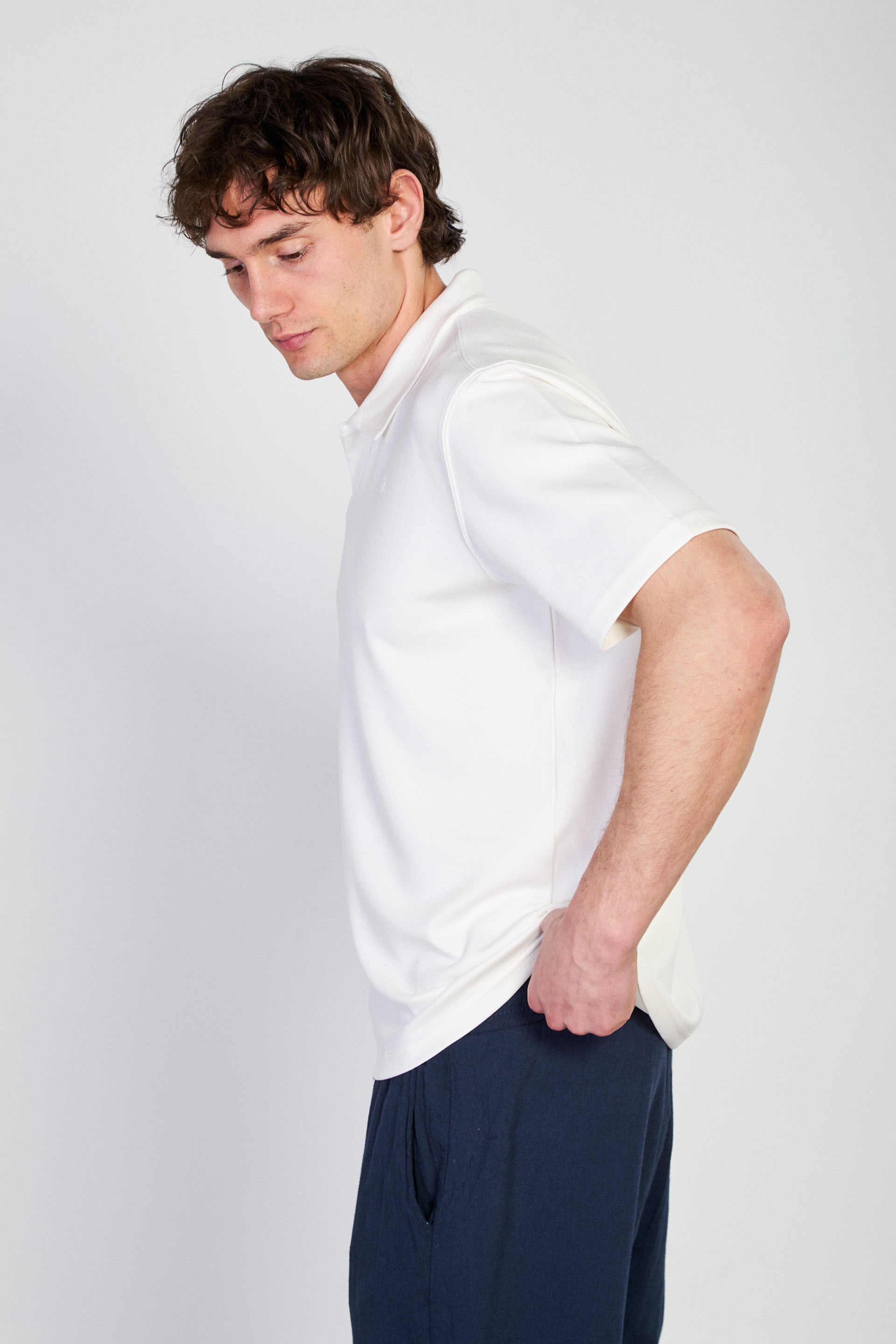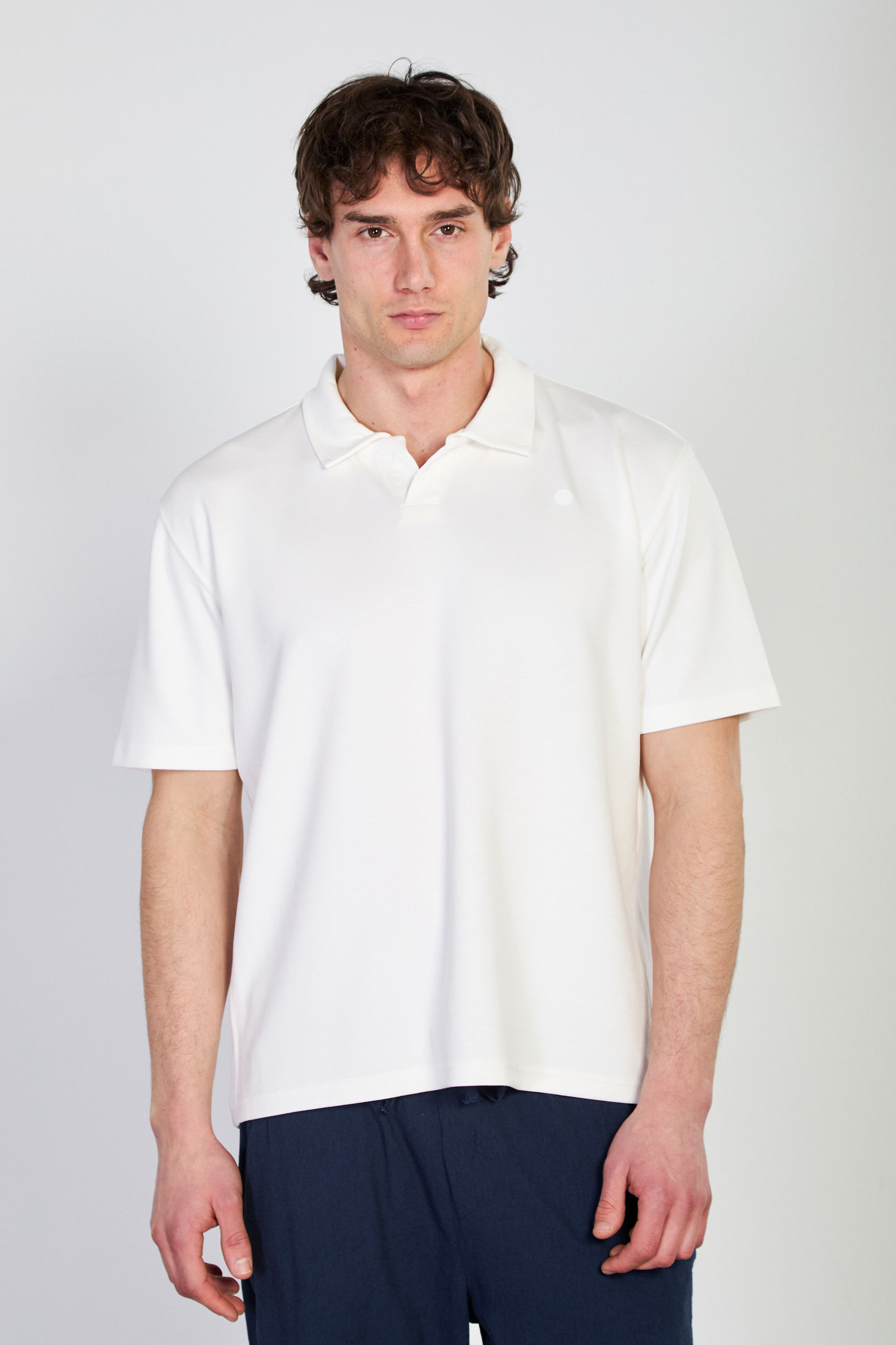 Erkek Yarım Patlı Polo Yaka T-Shirt - Ekru