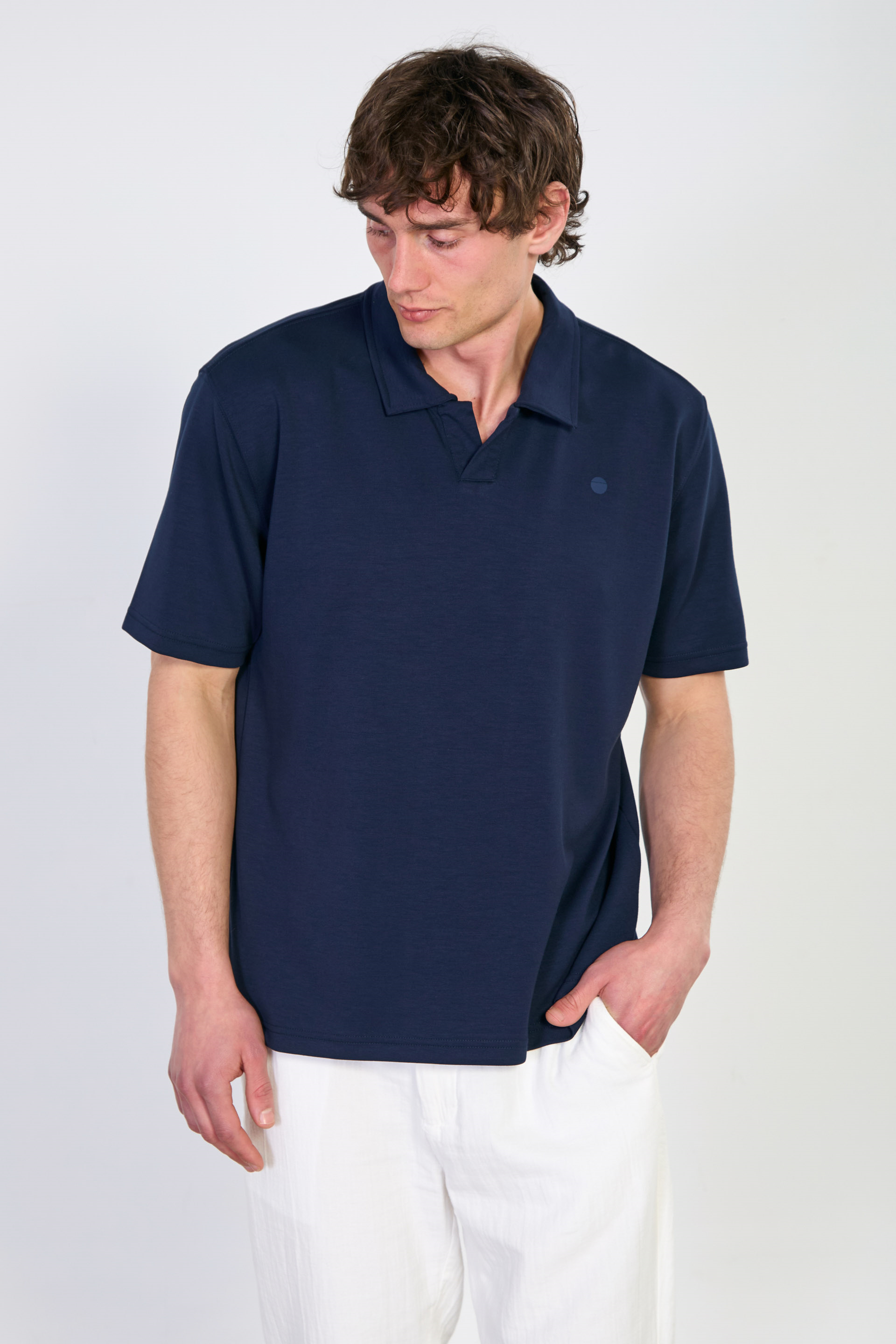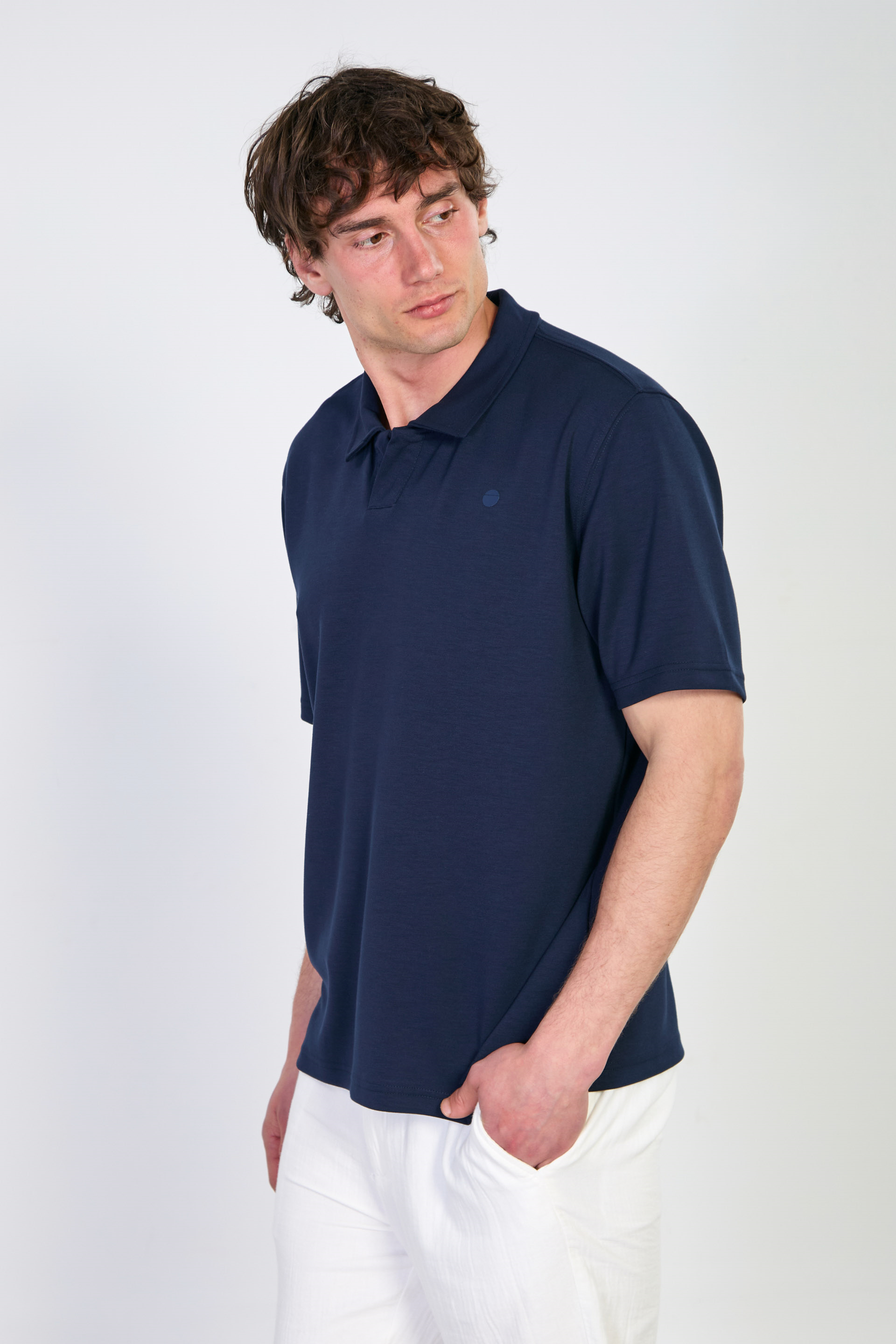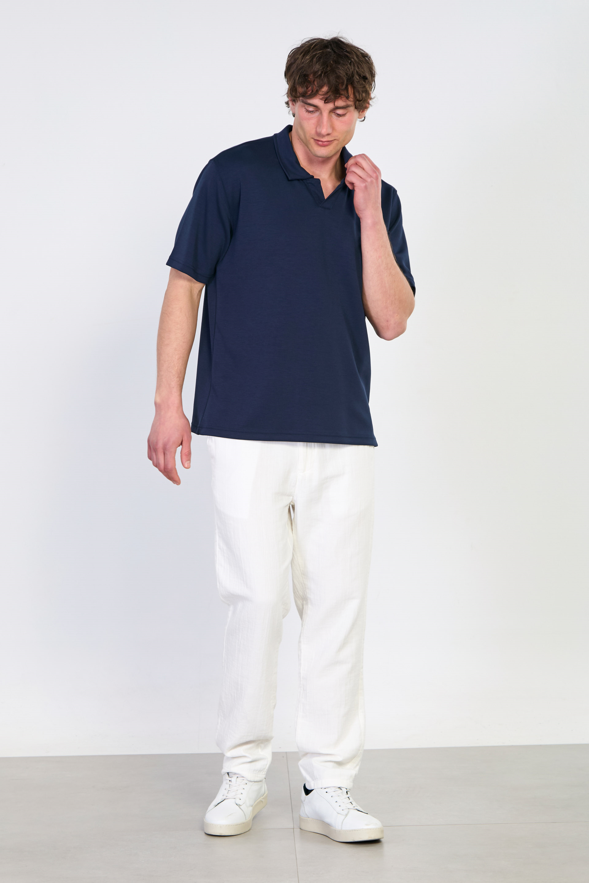Erkek Yarım Patlı Polo Yaka T-Shirt - Lacivert