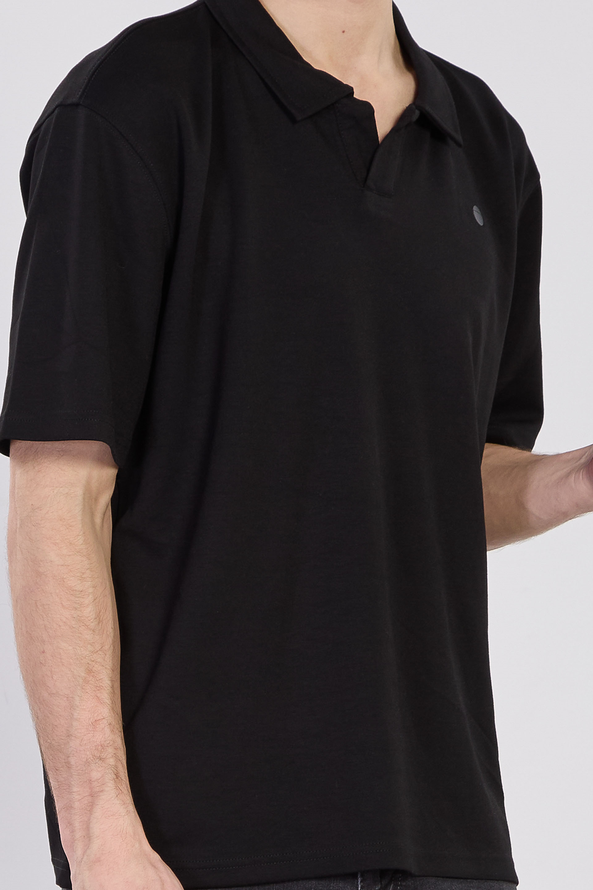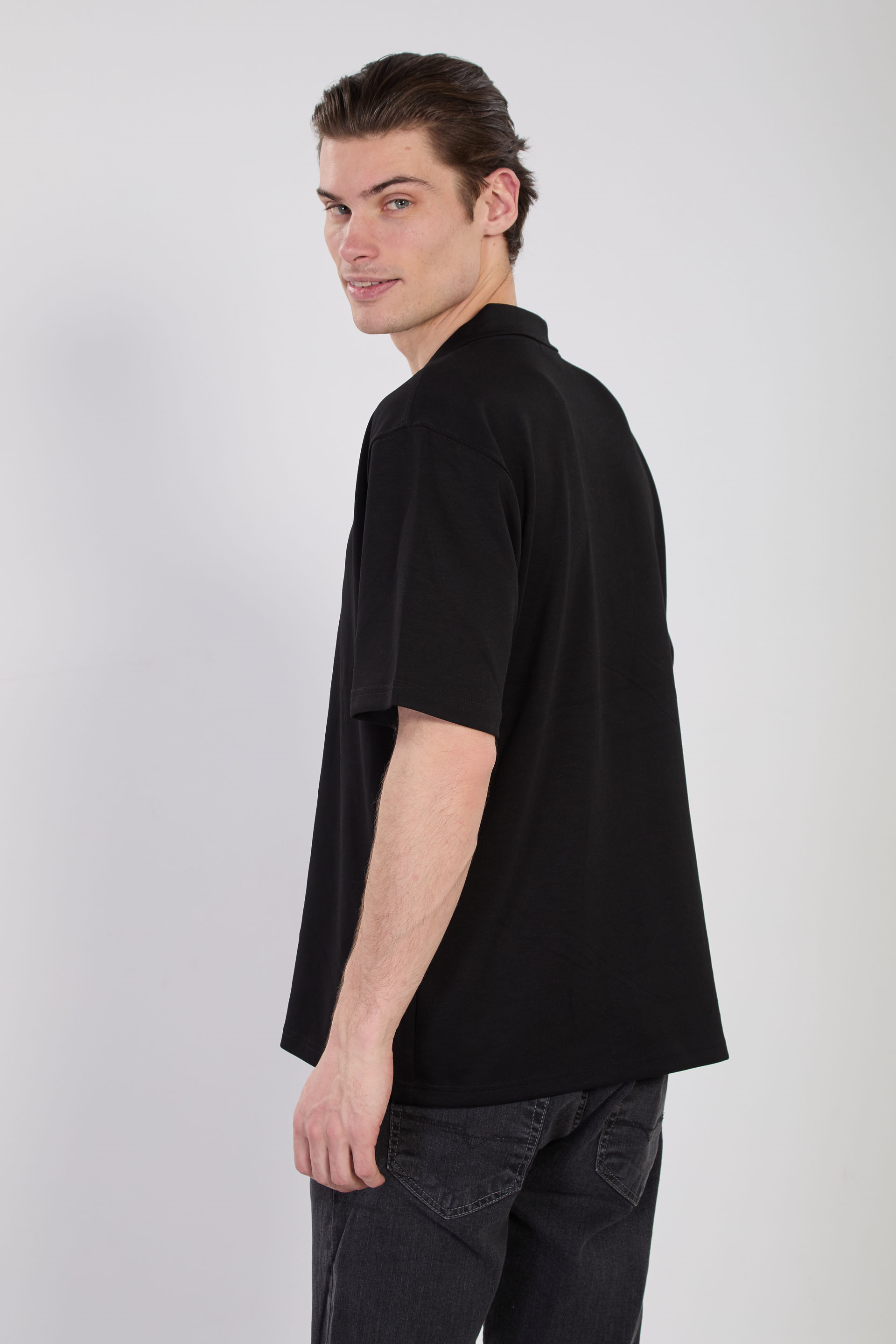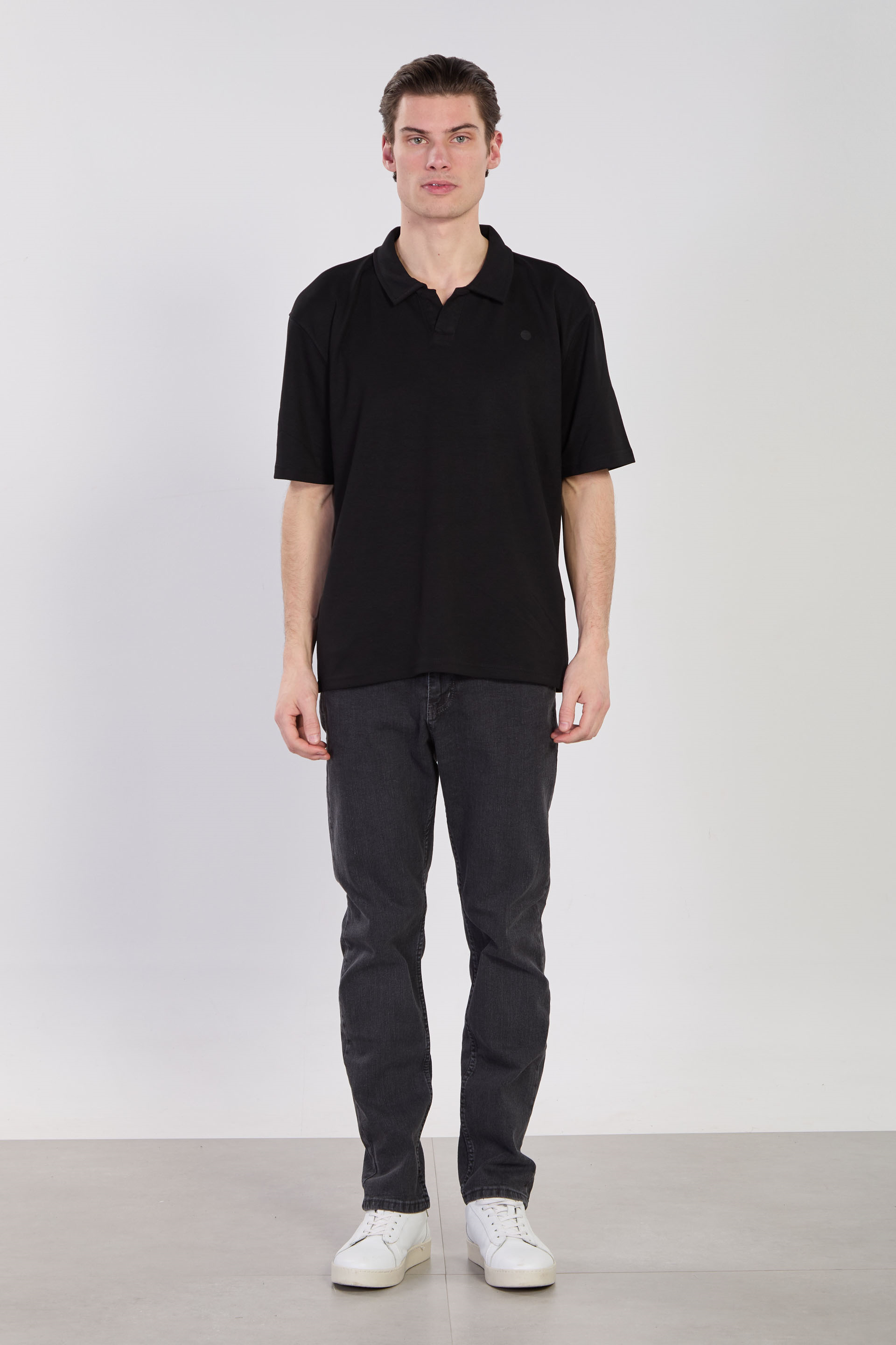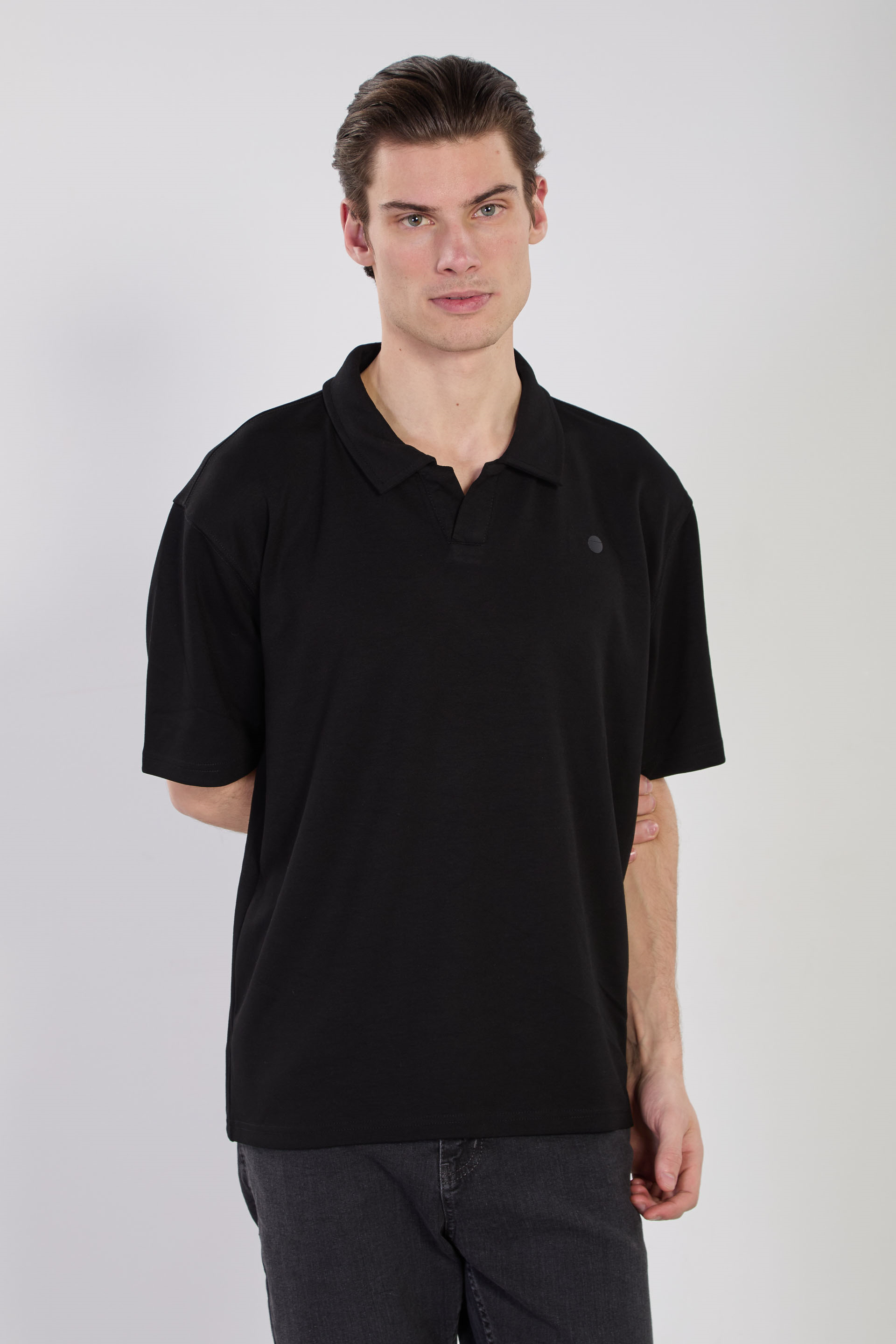 Erkek Yarım Patlı Polo Yaka T-Shirt - Siyah