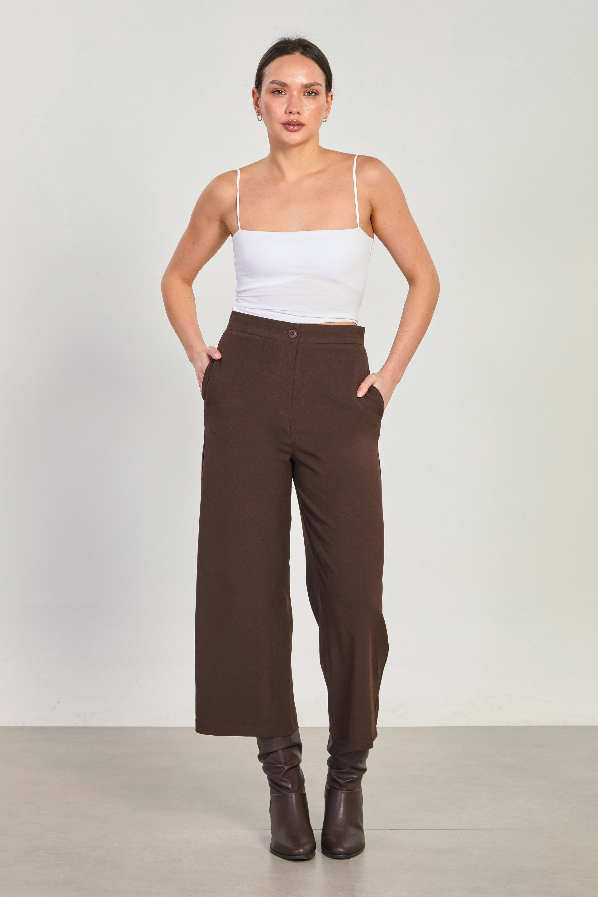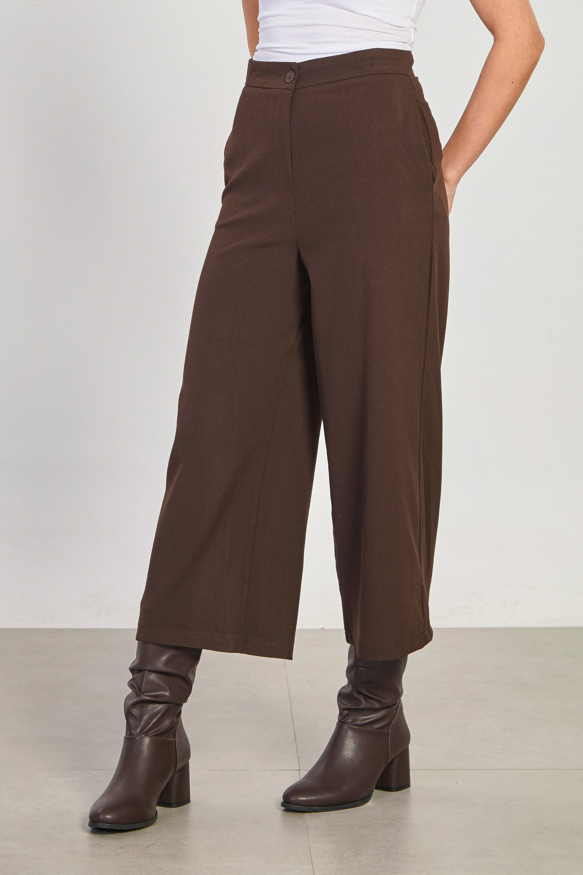Kadın Yüksek Bel Bol Paça Culotte Pantolon - Acı Kahve