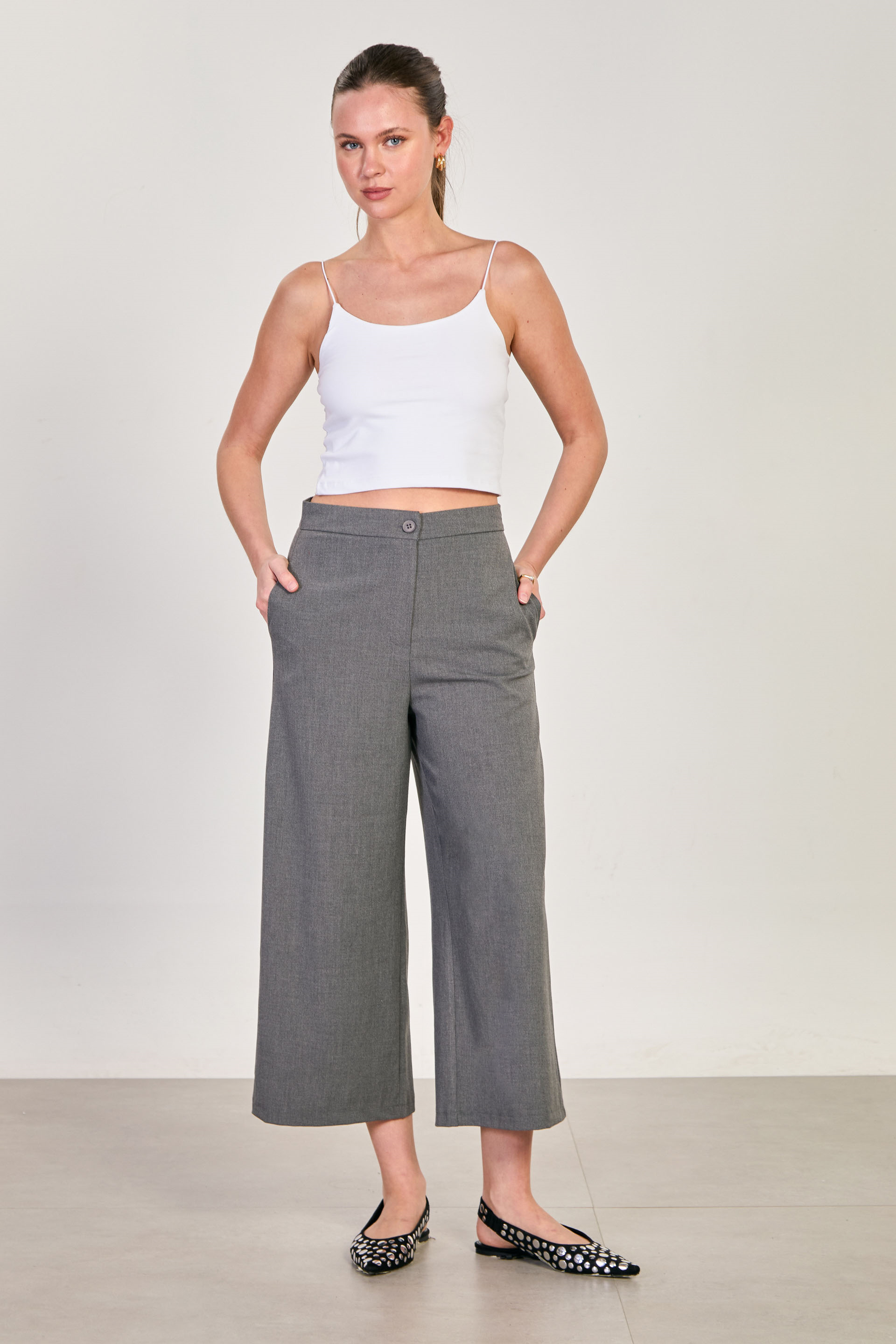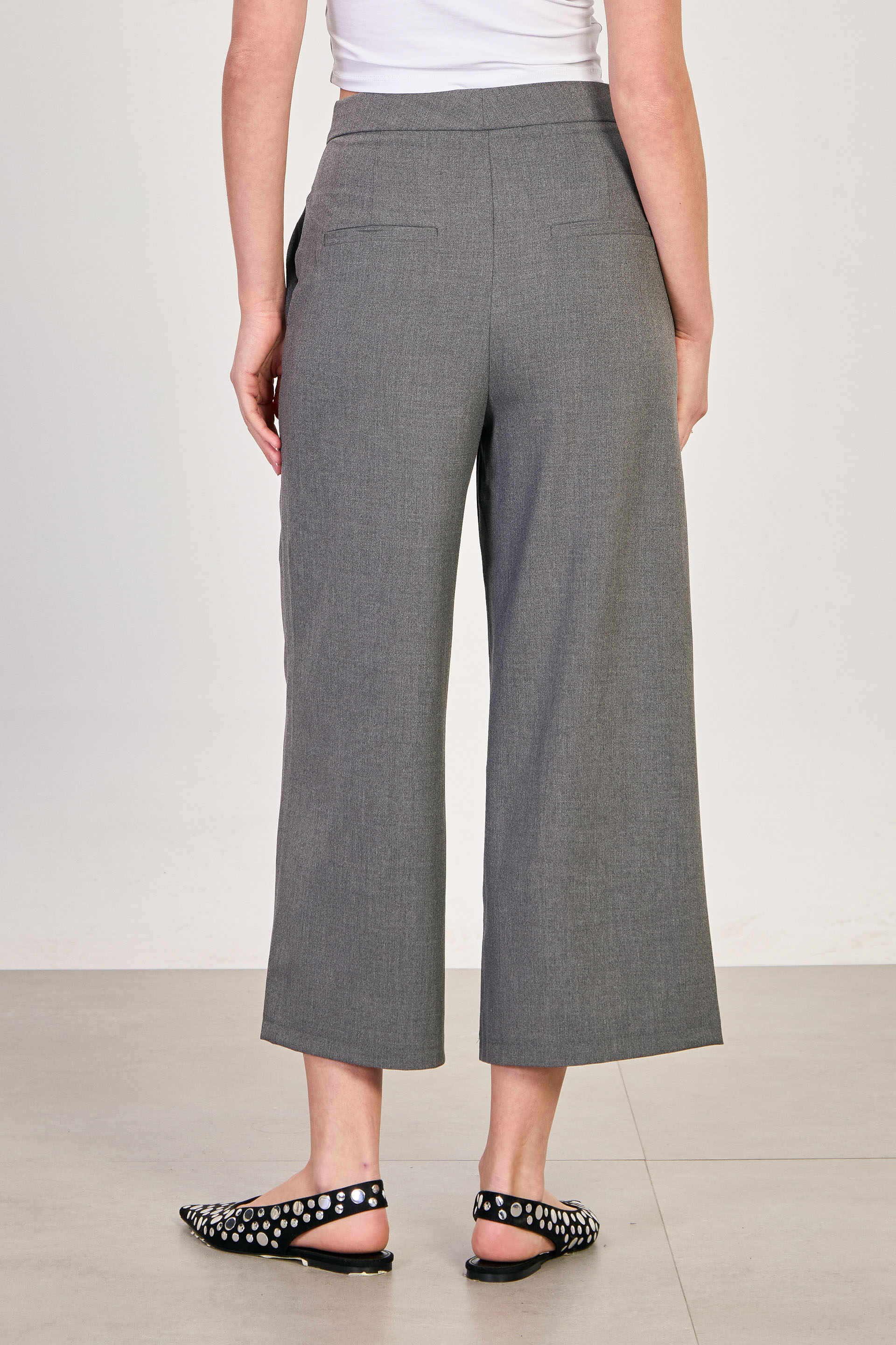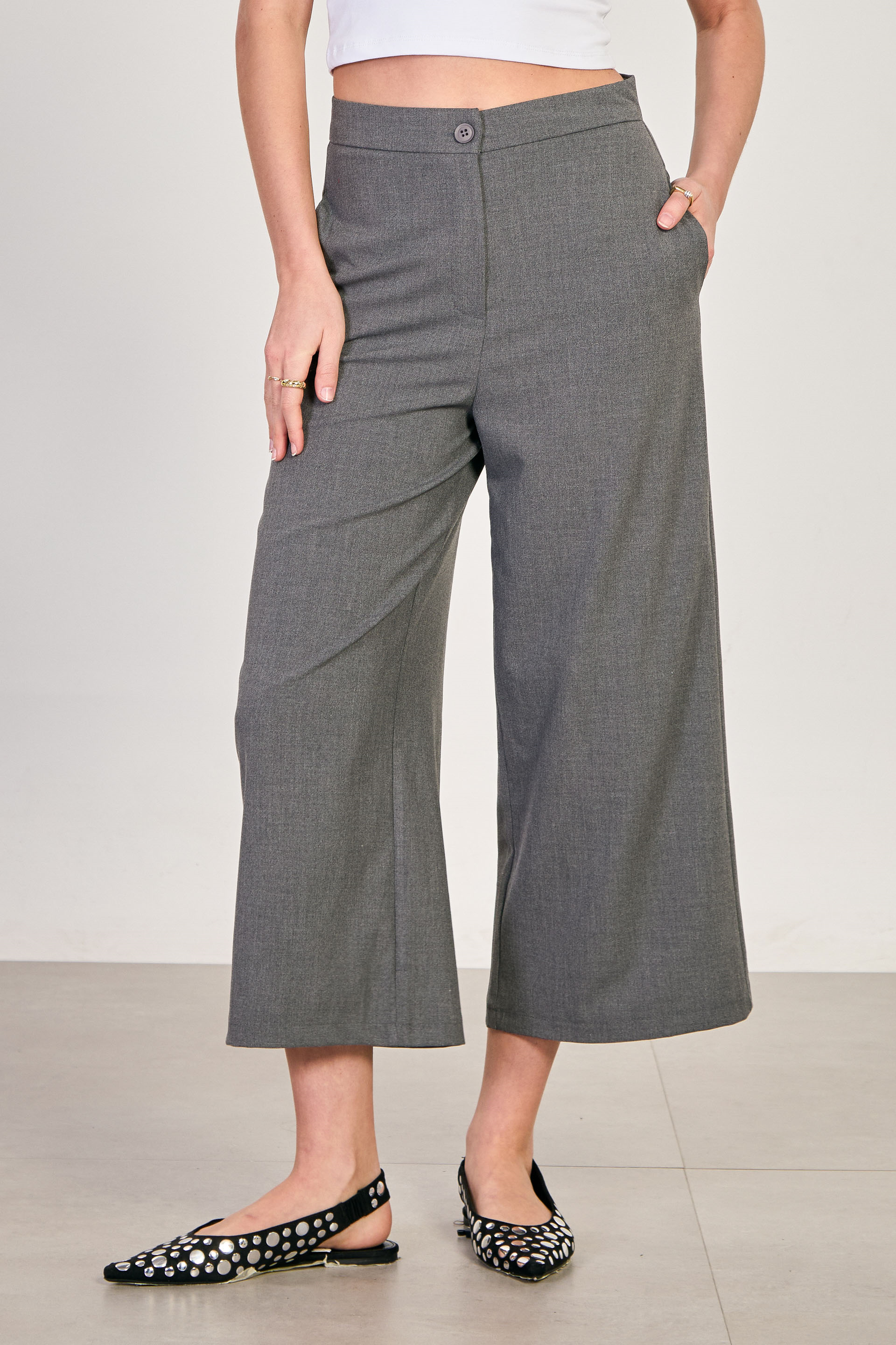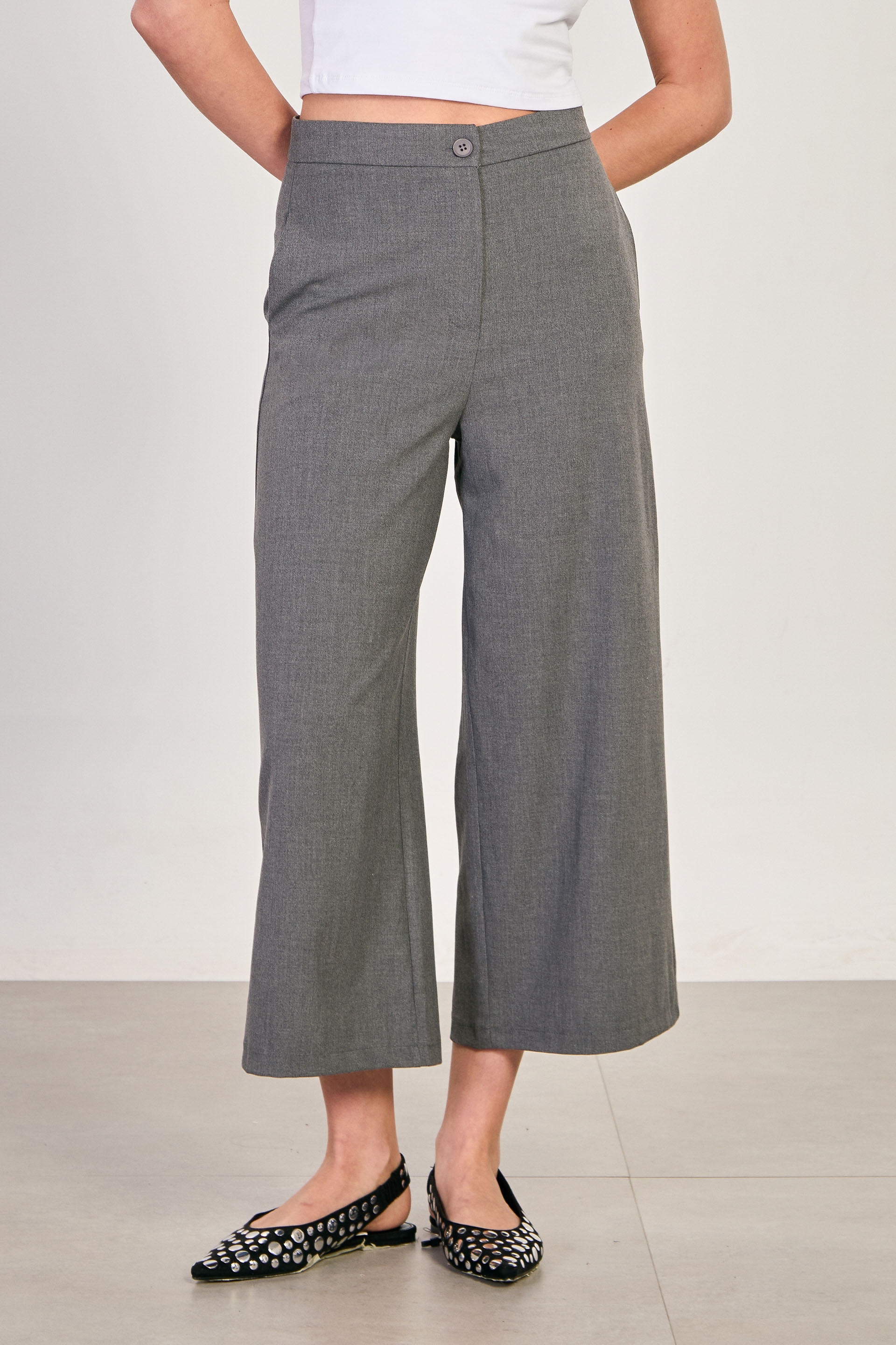 Kadın Yüksek Bel Bol Paça Culotte Pantolon - Okul Gri