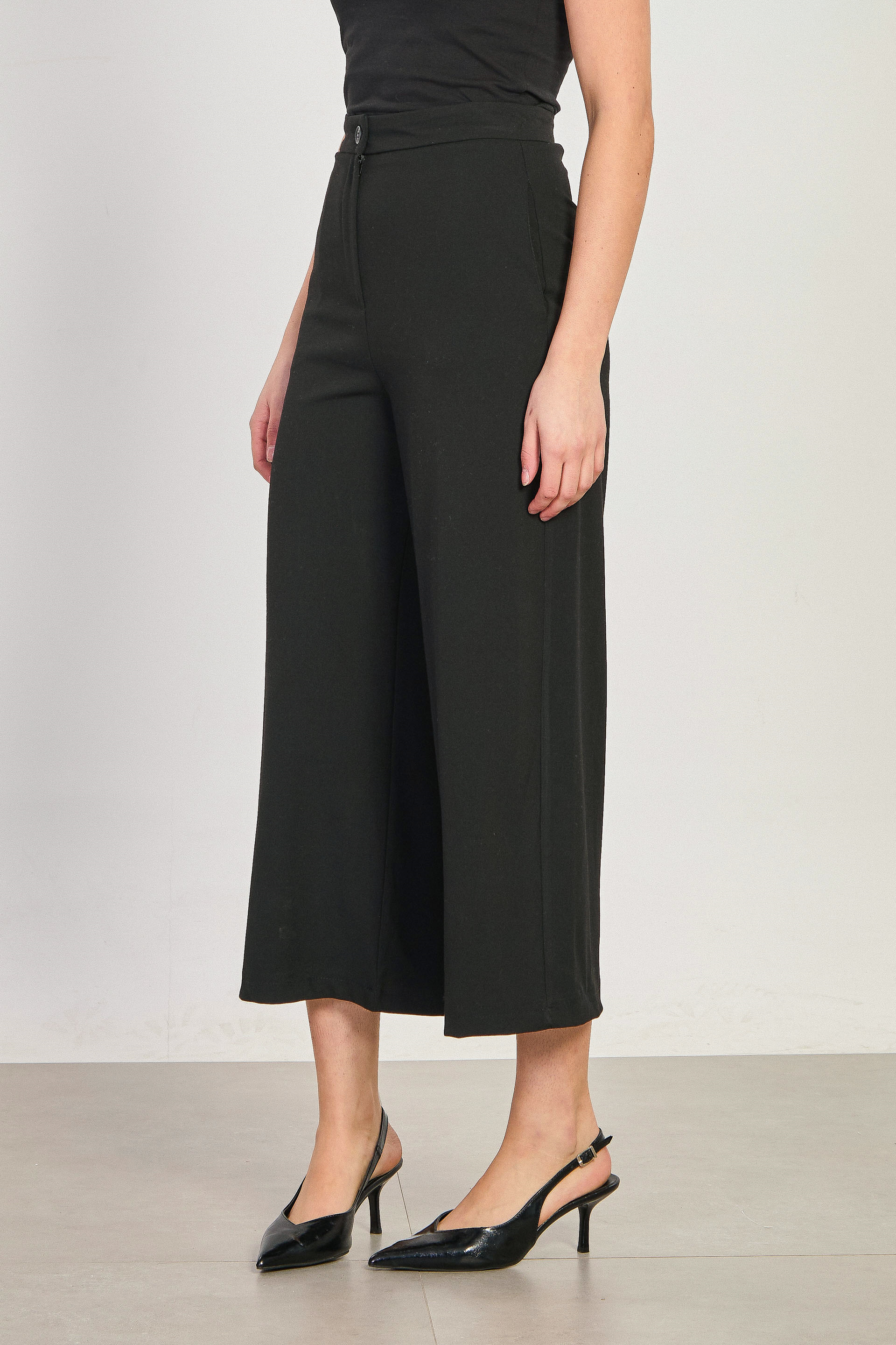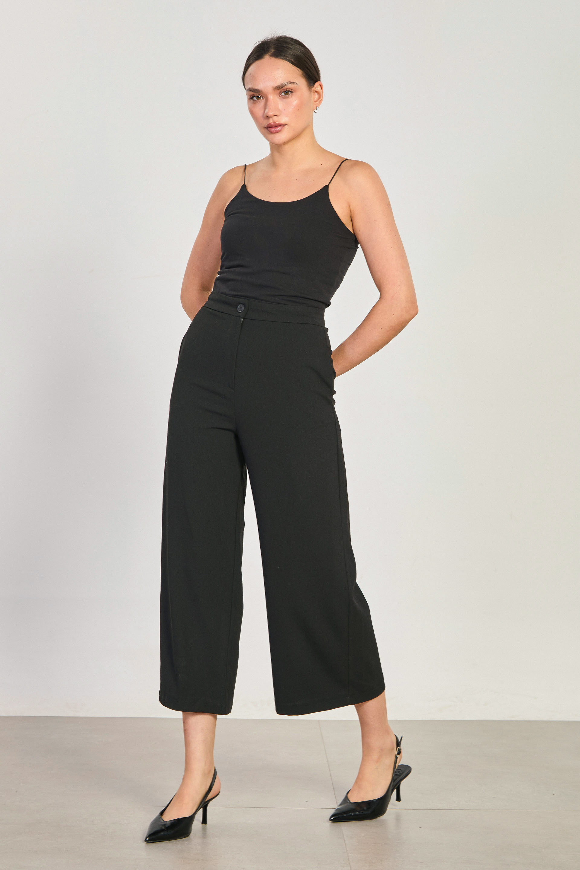 Kadın Yüksek Bel Bol Paça Culotte Pantolon - Siyah