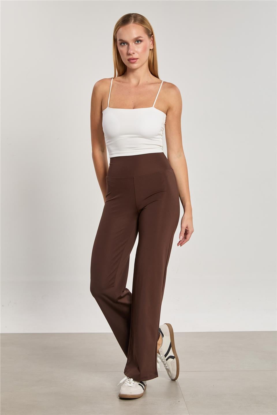 Kadın Yüksek Bel Palazzo Tayt - Acı Kahve